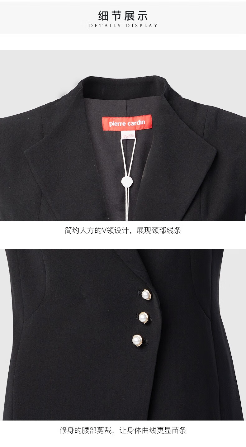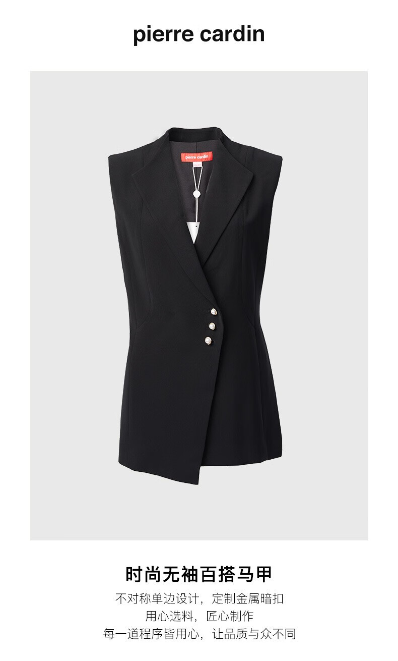皮尔卡丹女装秋季新款简约通勤干练百搭黑色马甲P84JV62B0