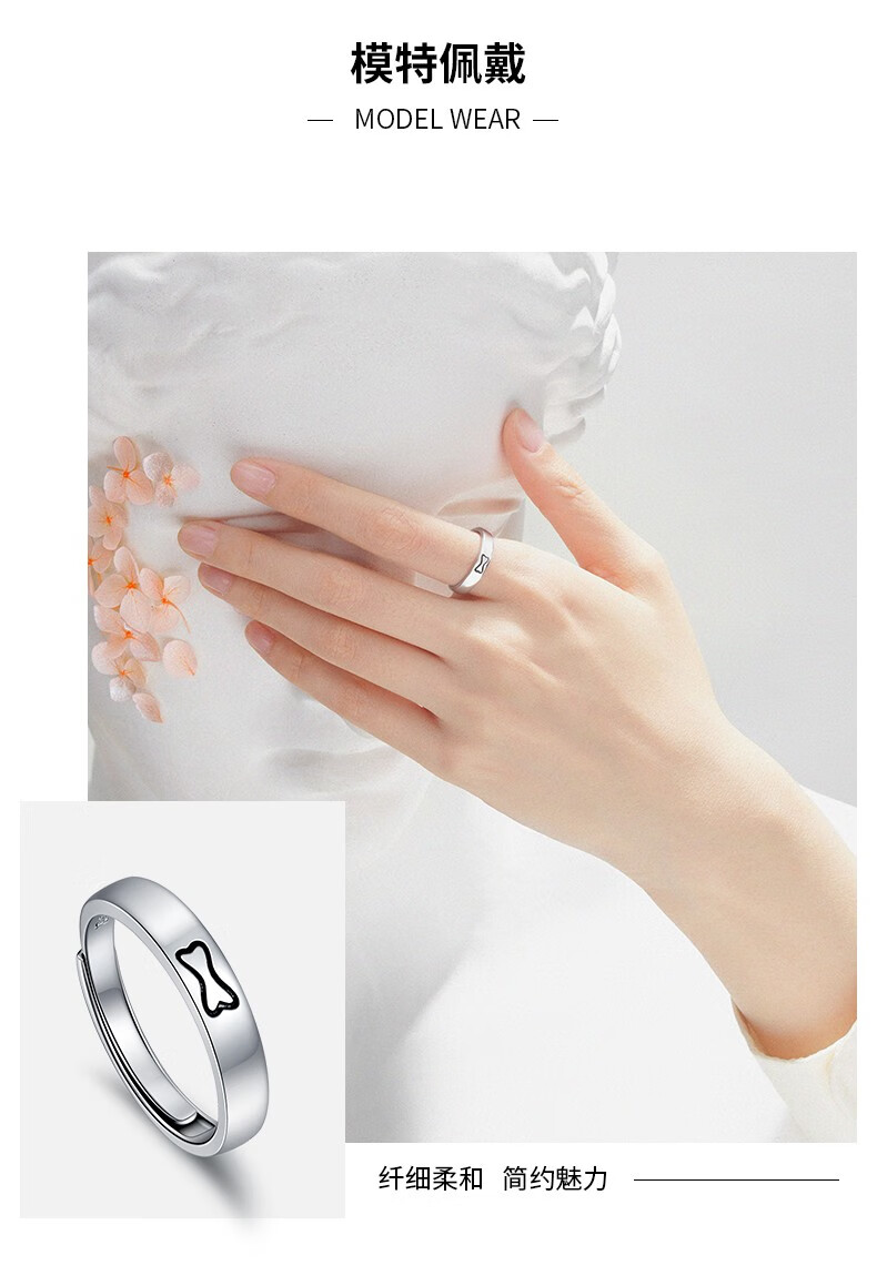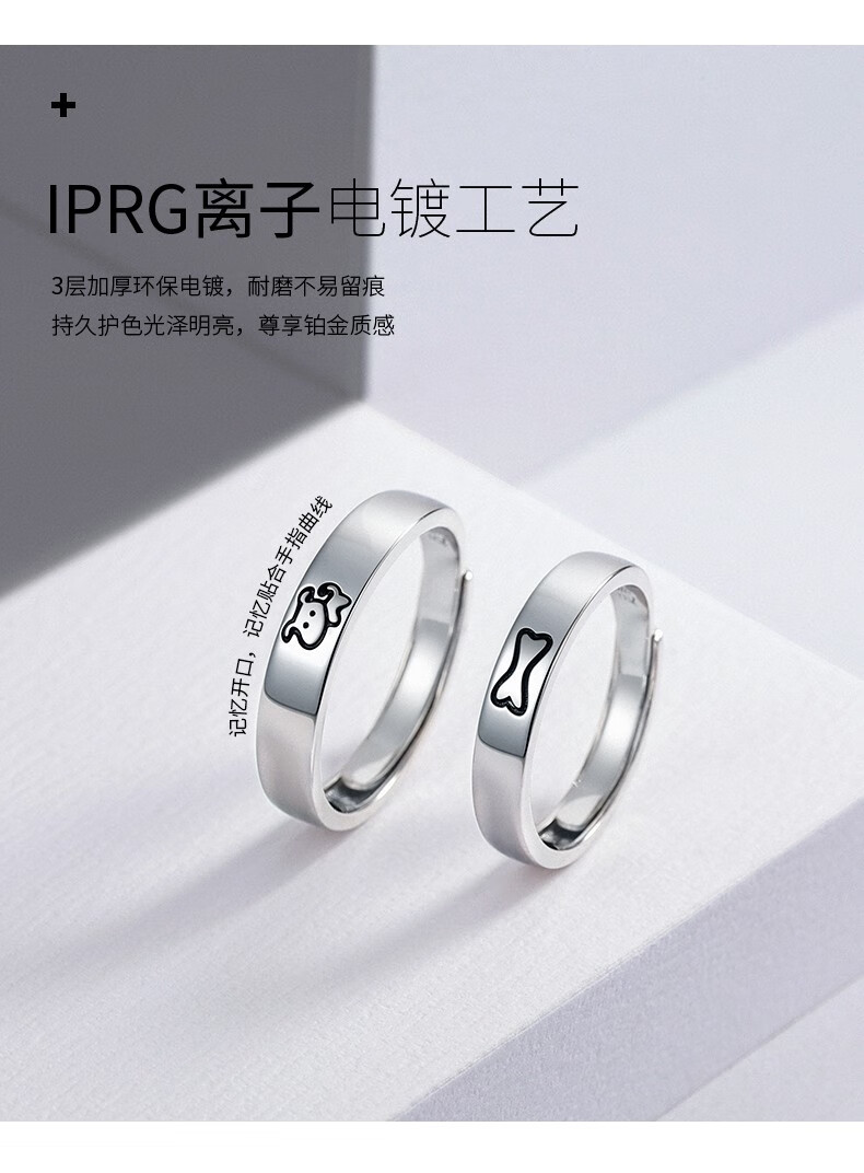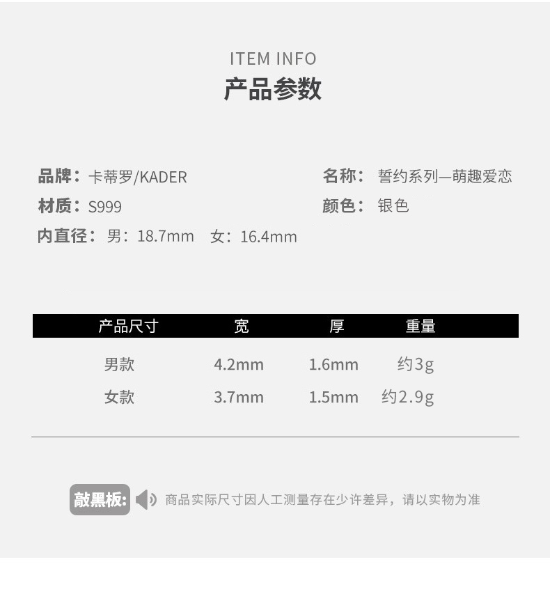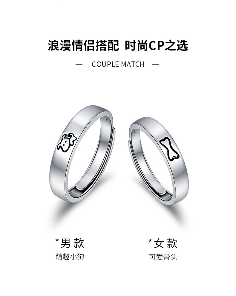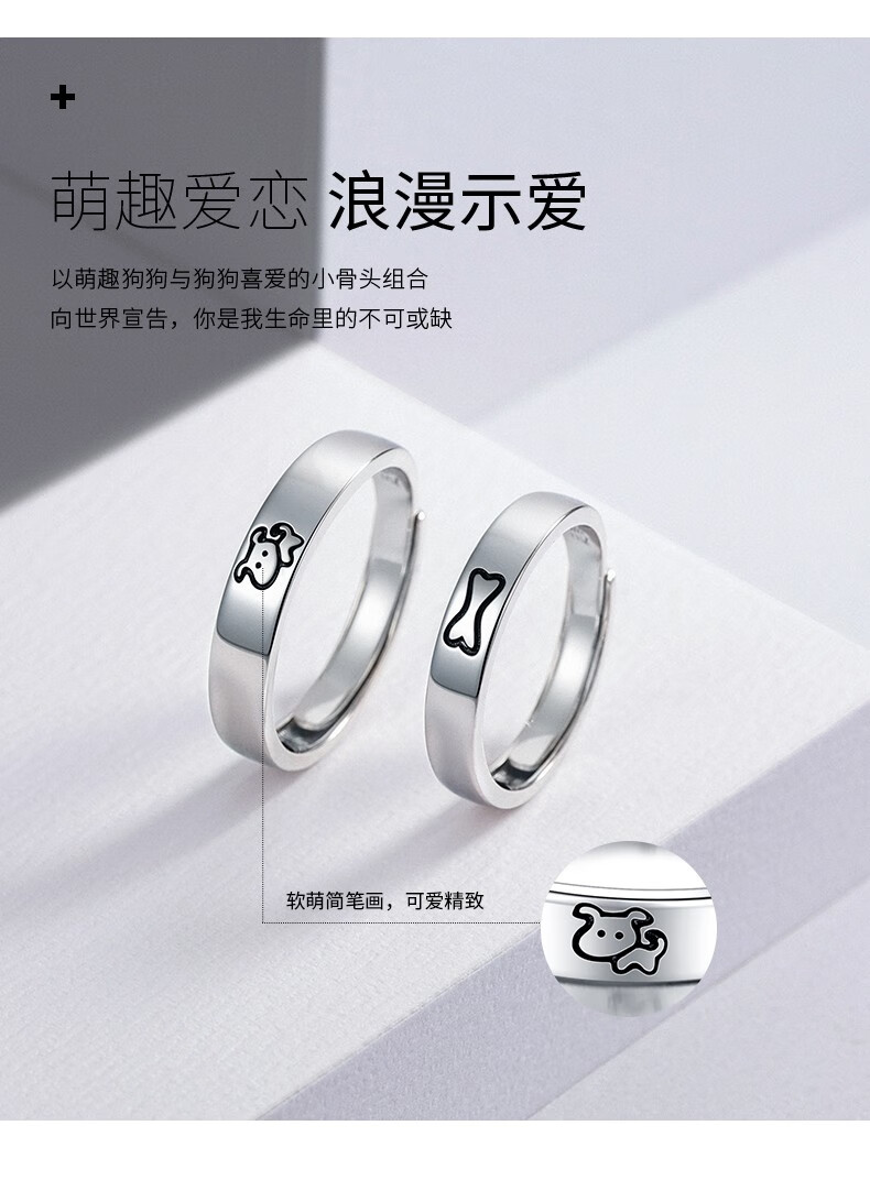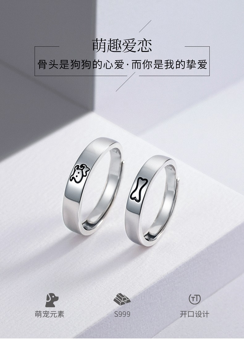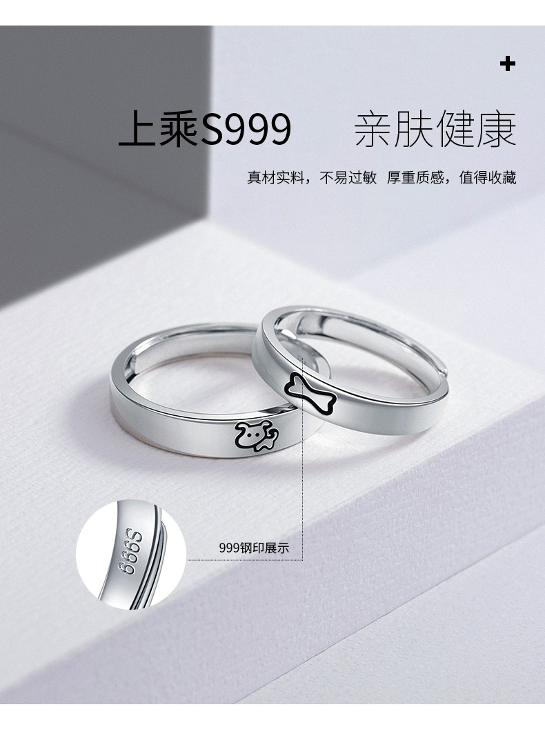 KADER萌趣爱恋 情侣对戒 s999 足银 情侣戒指纯银小众设计生日礼物送男女友