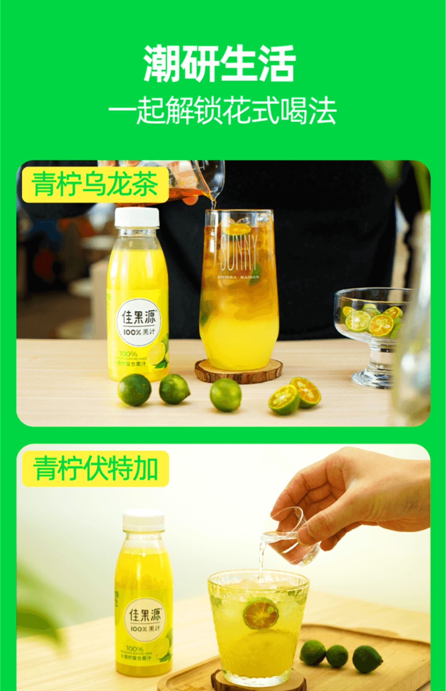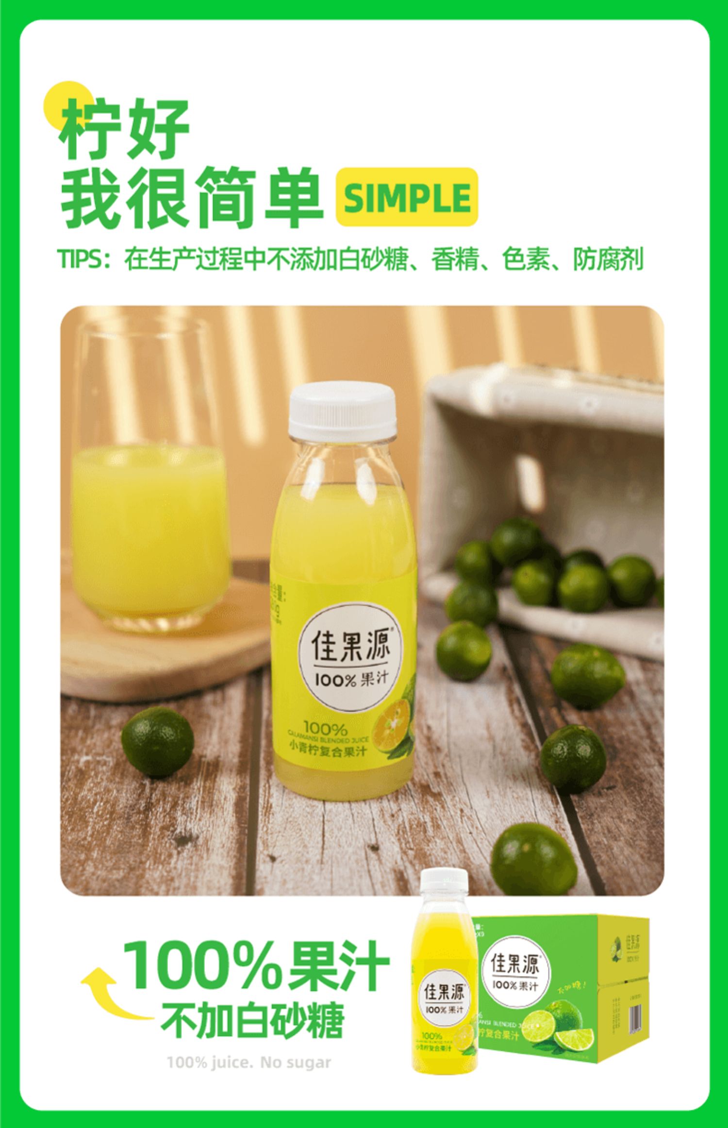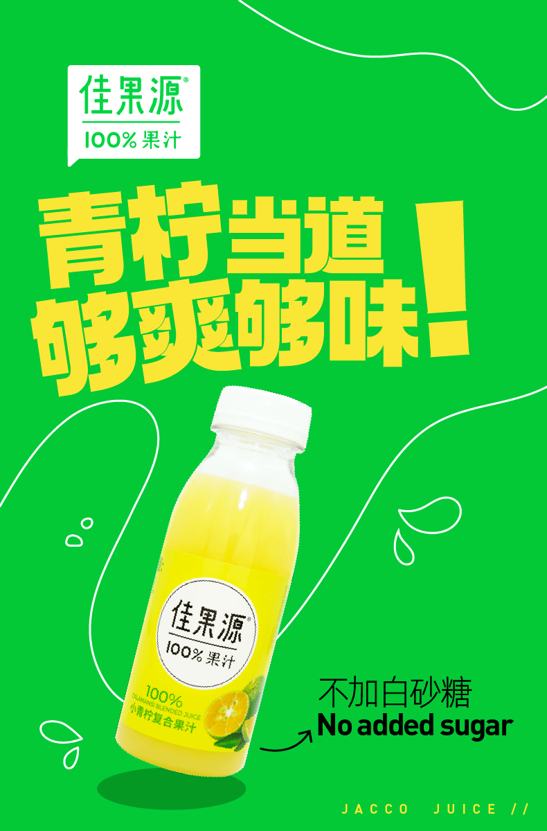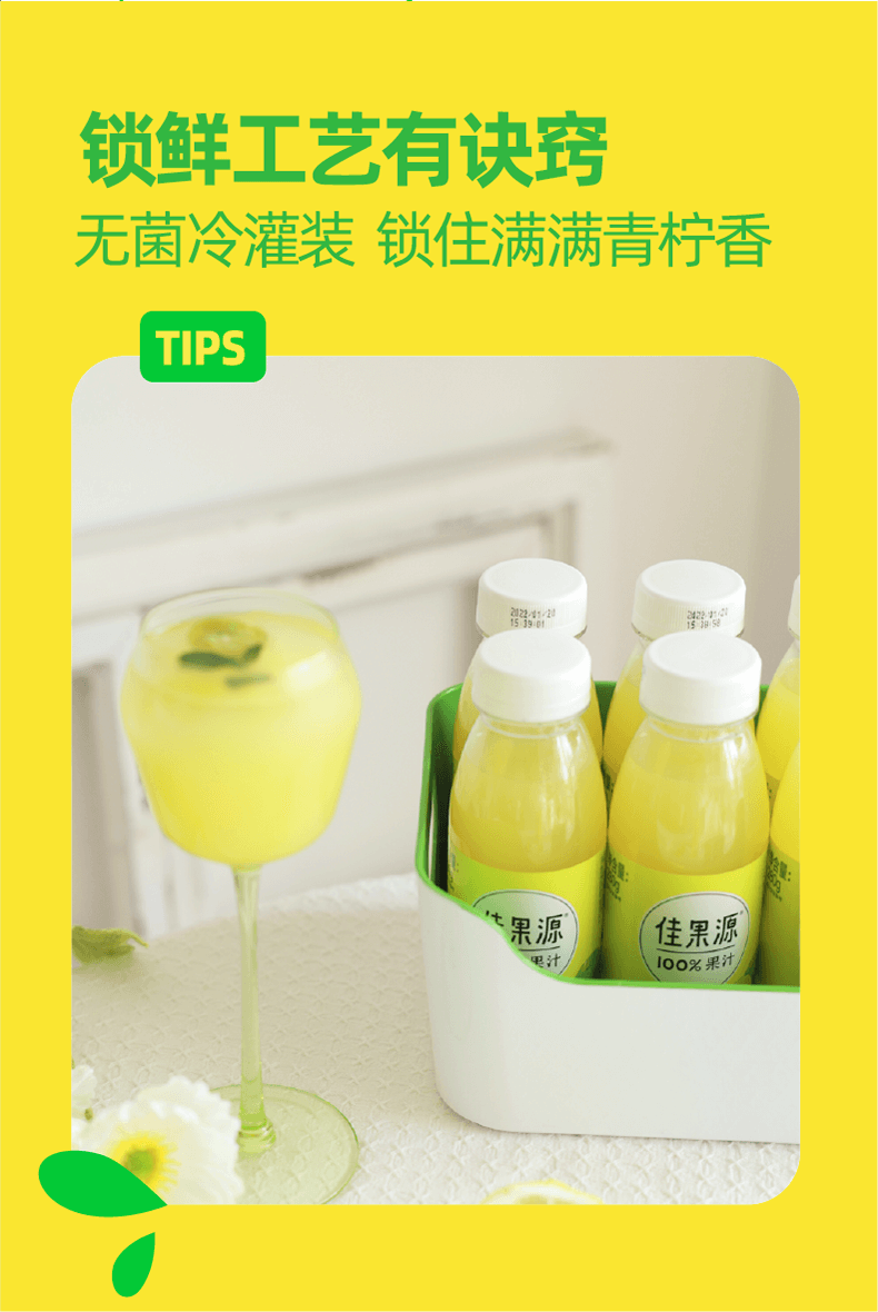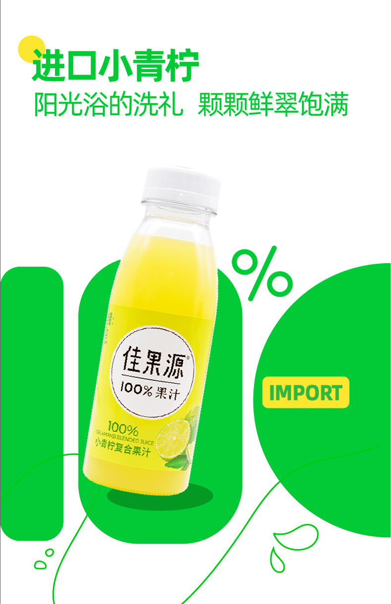 佳果源100%小青柠汁0脂复合果汁高端饮料整箱小瓶装280g*9瓶