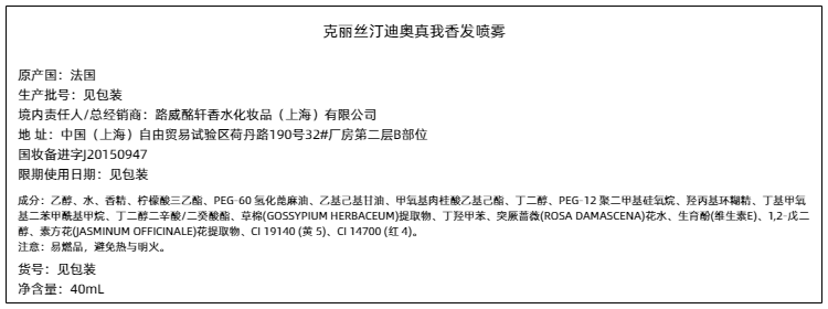 【中欧班列精选】 Dior迪奥真我香发喷雾 发香喷雾 清爽护发1LPY