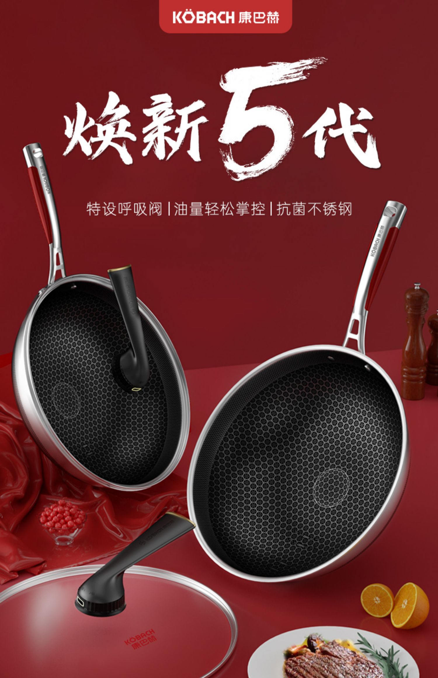 【视频号福利】中餐厅康巴赫第五代不粘锅蜂窝炒锅家用炒菜锅