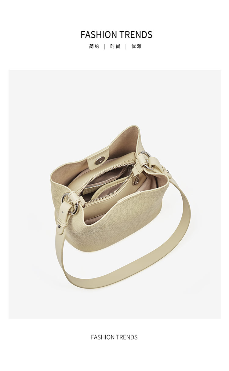 Safiya/索菲娅二层牛皮包包2022新款手提包水桶包单肩包女斜挎包SF900023Y