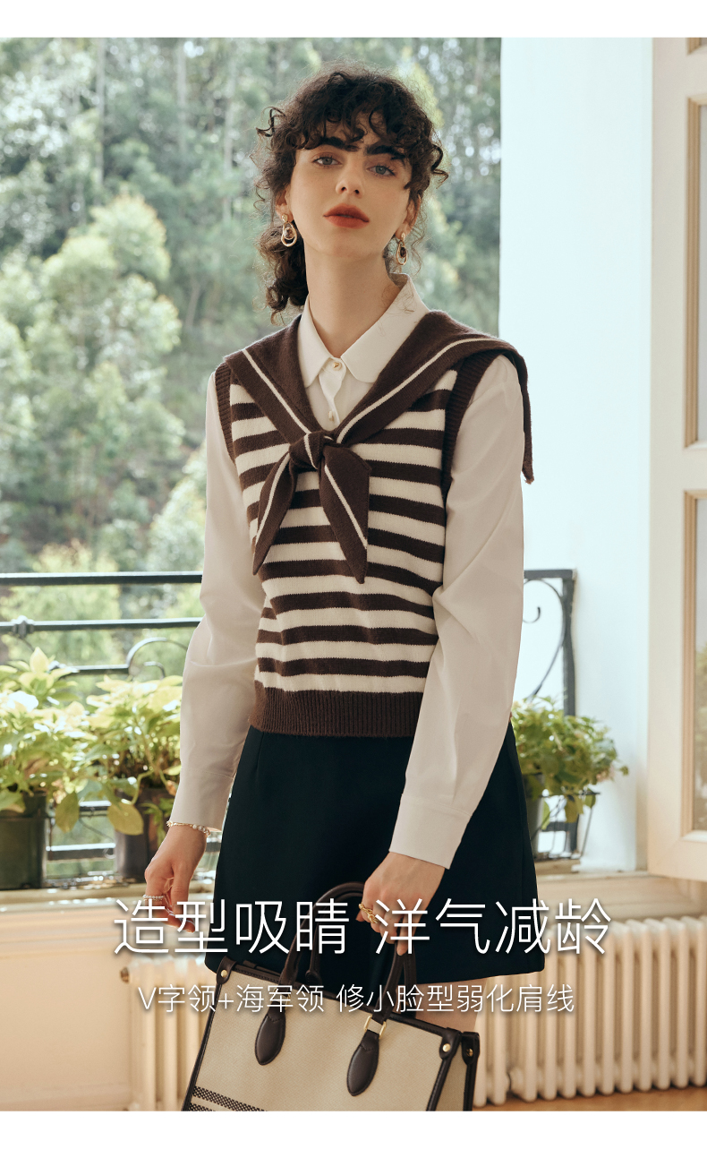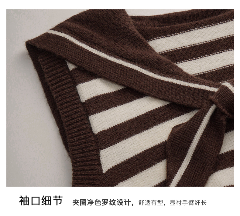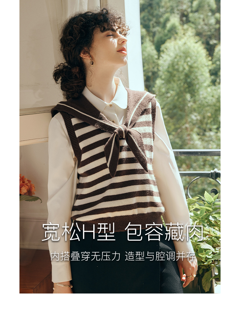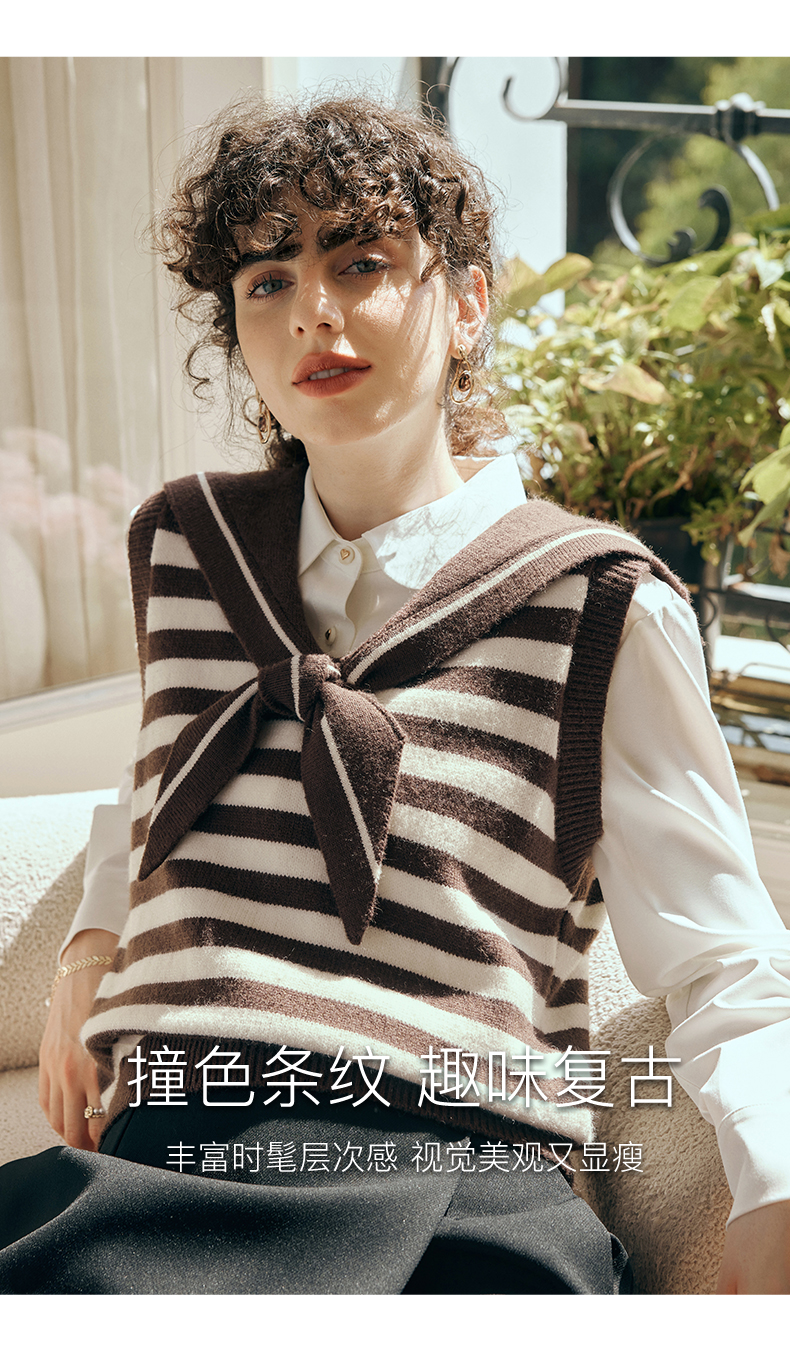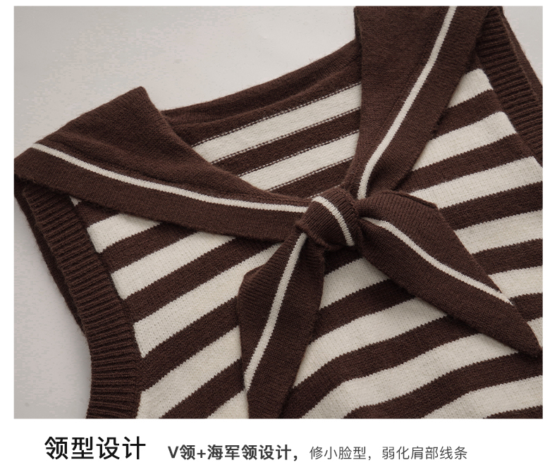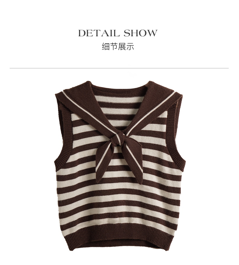 OLrain欧芮儿条纹针织背心女初秋2023新款复古美式海军领内搭马甲