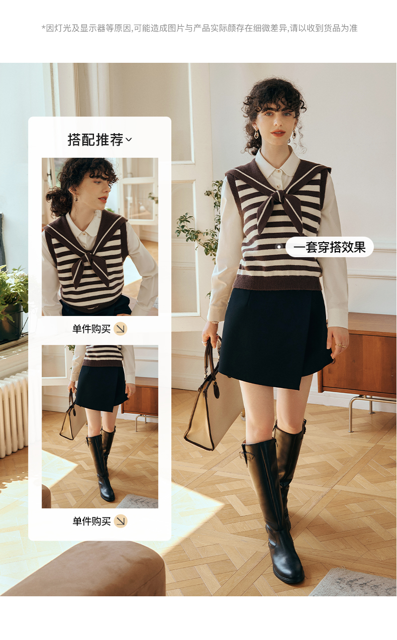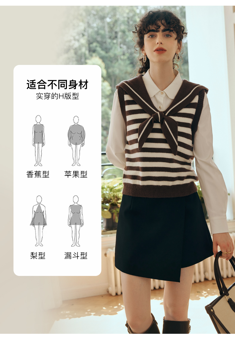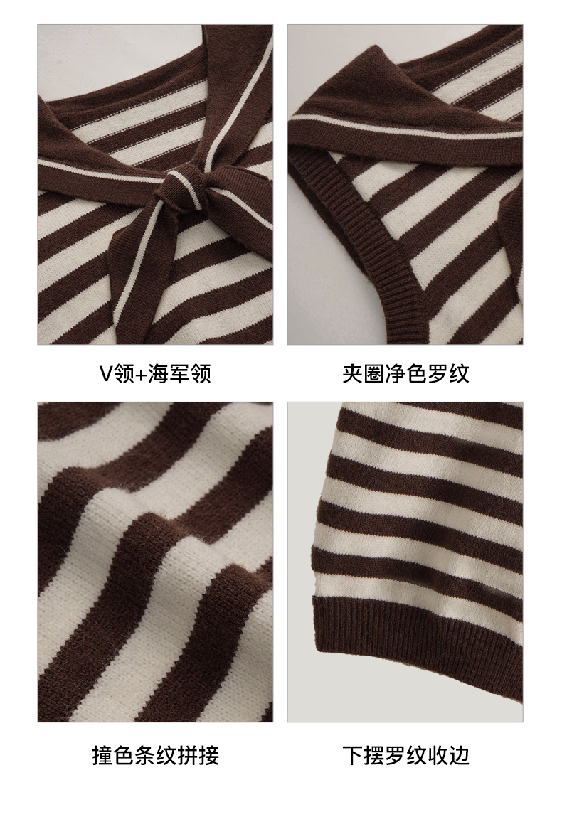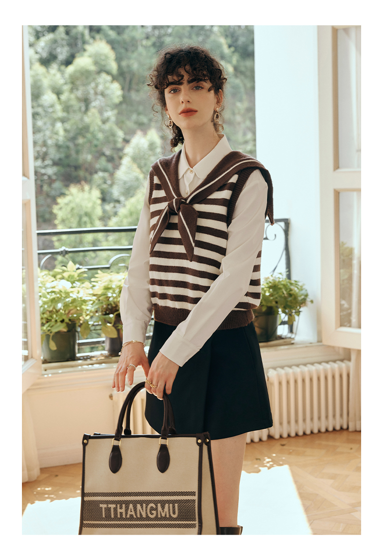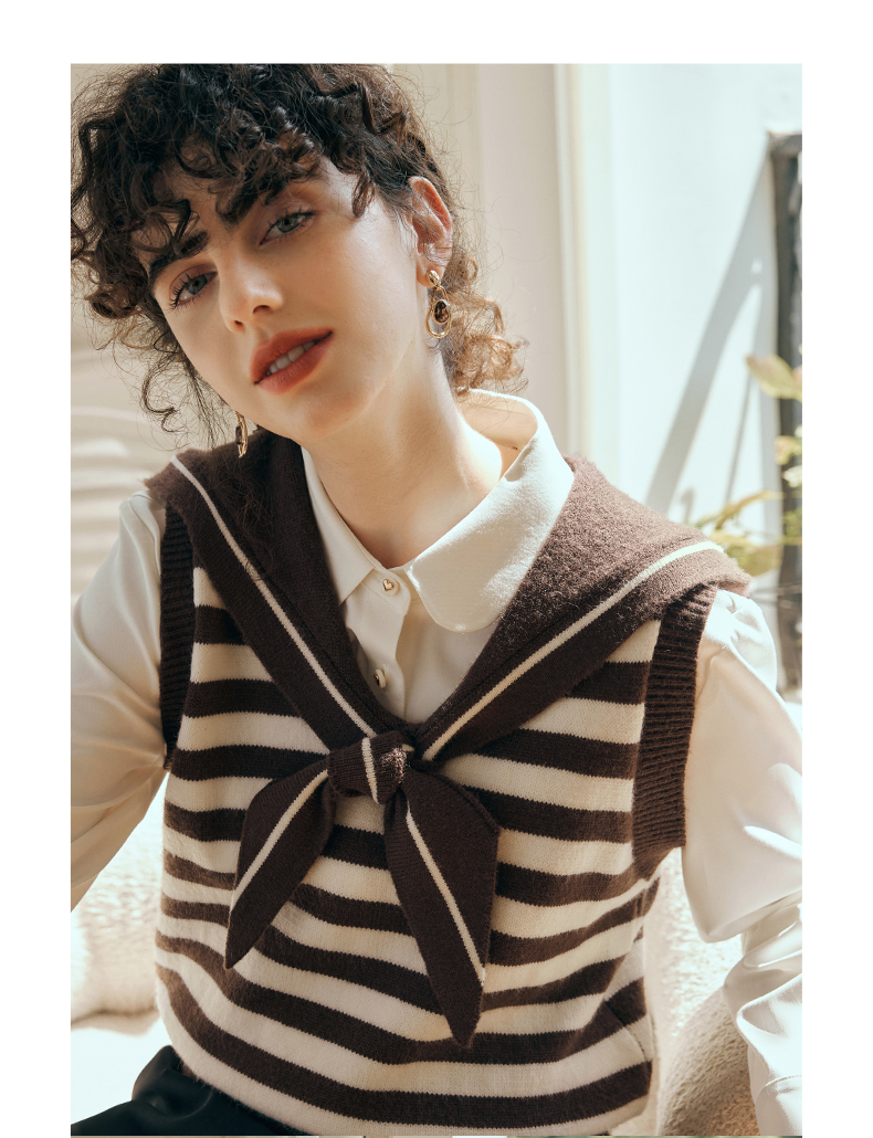 OLrain欧芮儿条纹针织背心女初秋2023新款复古美式海军领内搭马甲