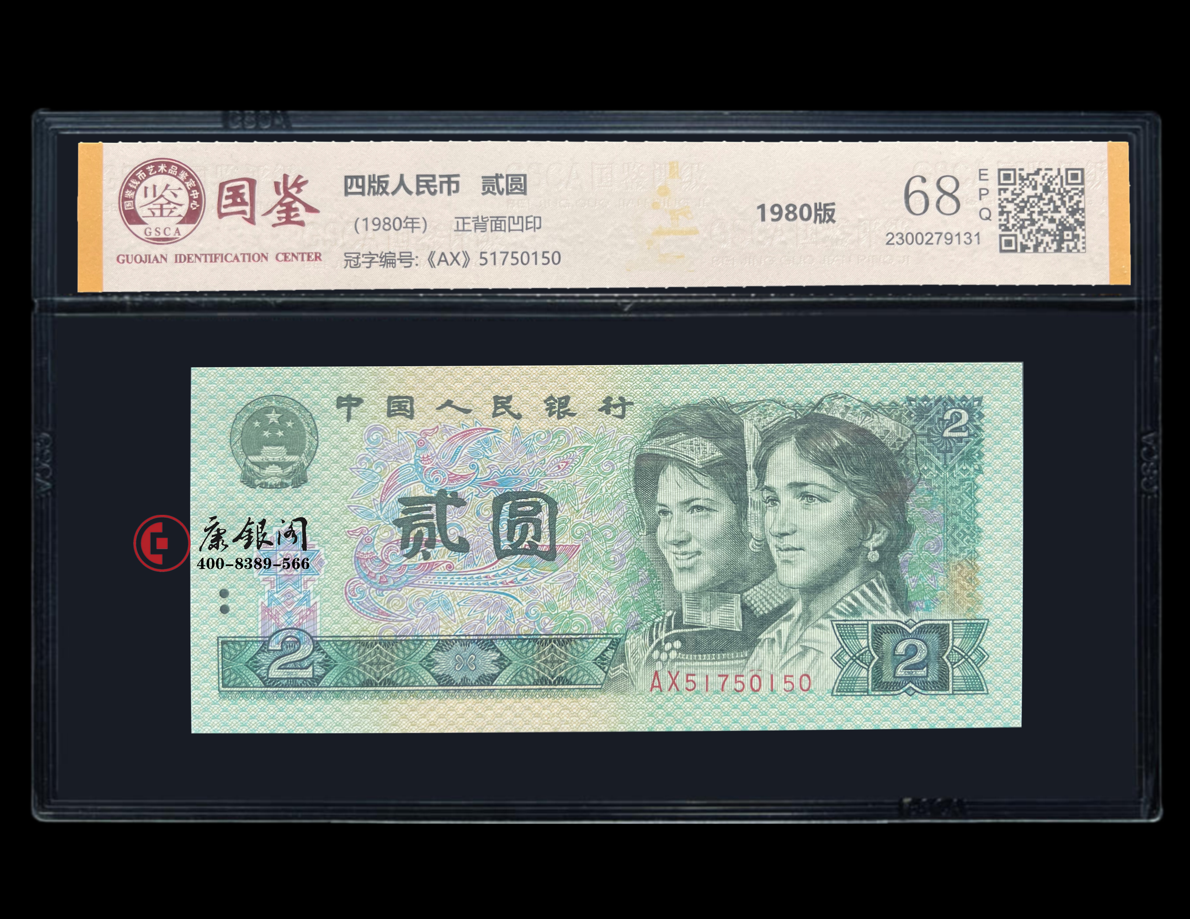 ② 80版2元——四版币黑马。自第五套起,2元面额人民币和辅币不再发行,全球性取缔“贰”面值,“贰元”成为继第二套“叁元”人民币后的又一绝版关门币。