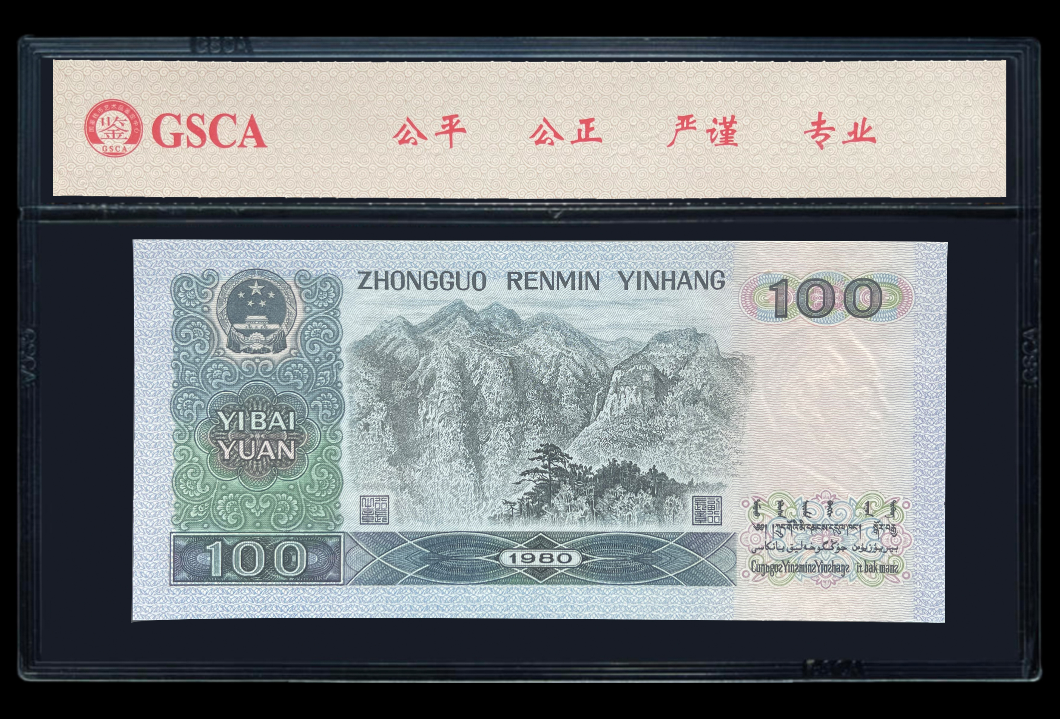 ③80版100元——四版币潜力股。80100发行量在四版币里面是Z少的,流通耗损率高,银行回收销毁较多的券别。目前的市场价值却相对低廉,绝对的物美价廉。