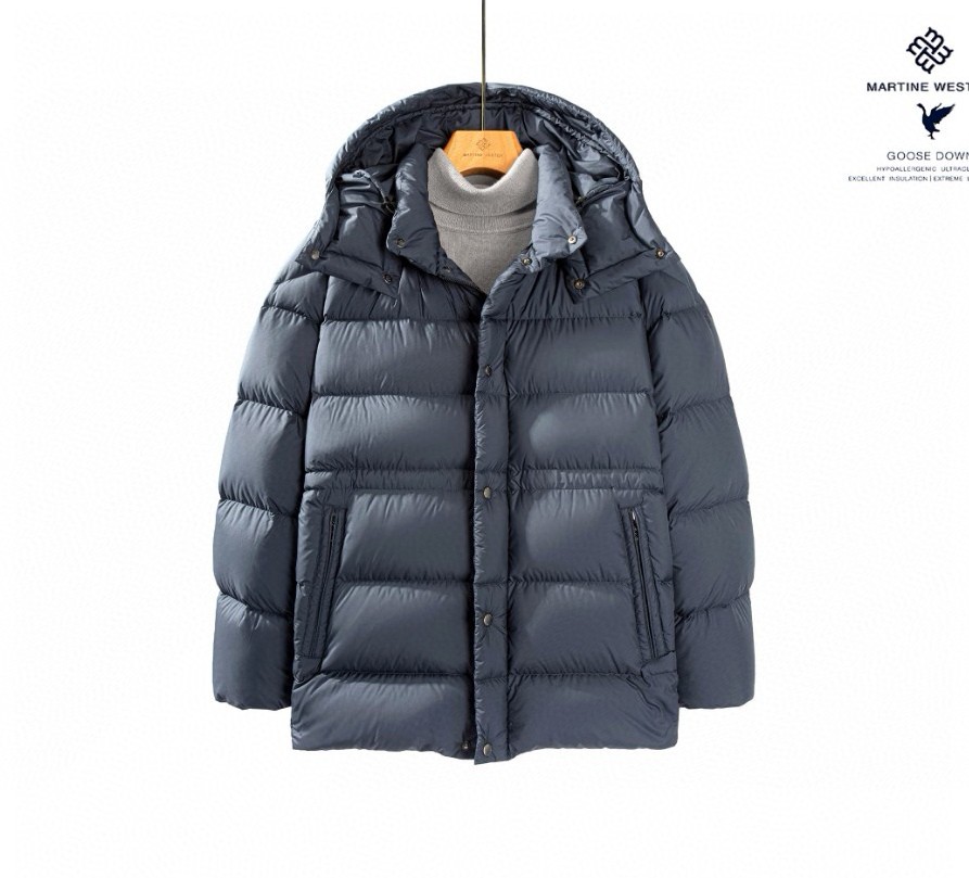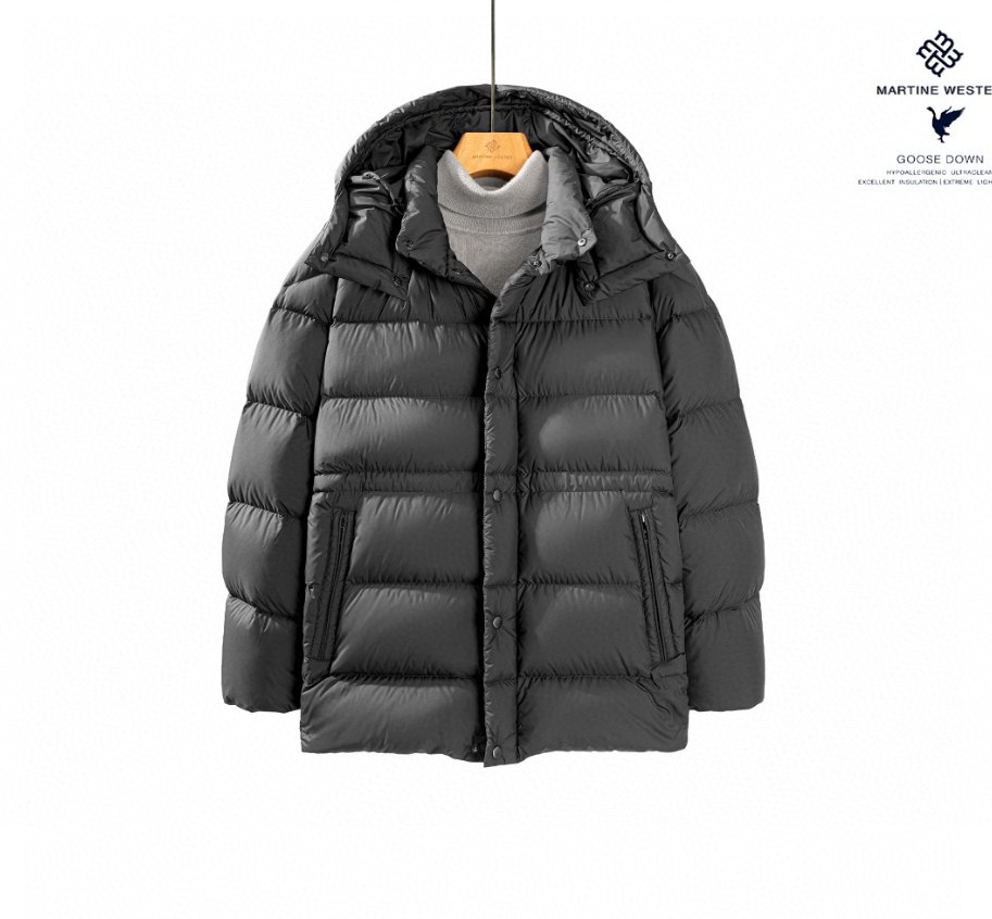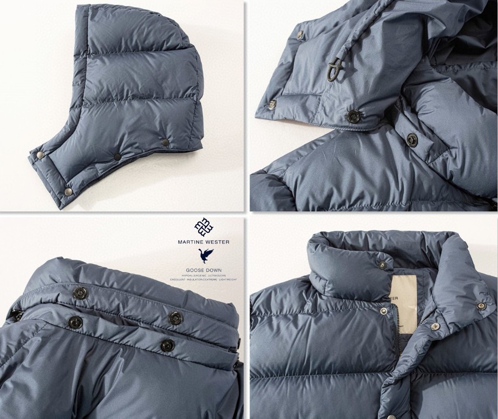 Martine Wester 男式 一手长 拉链连帽可拆卸鹅绒服; 精选日本帝人10D超薄羽绒面料,可溯源新国标95绒子含量鹅绒一件一二维码电子身份证YKK品牌定制拉链