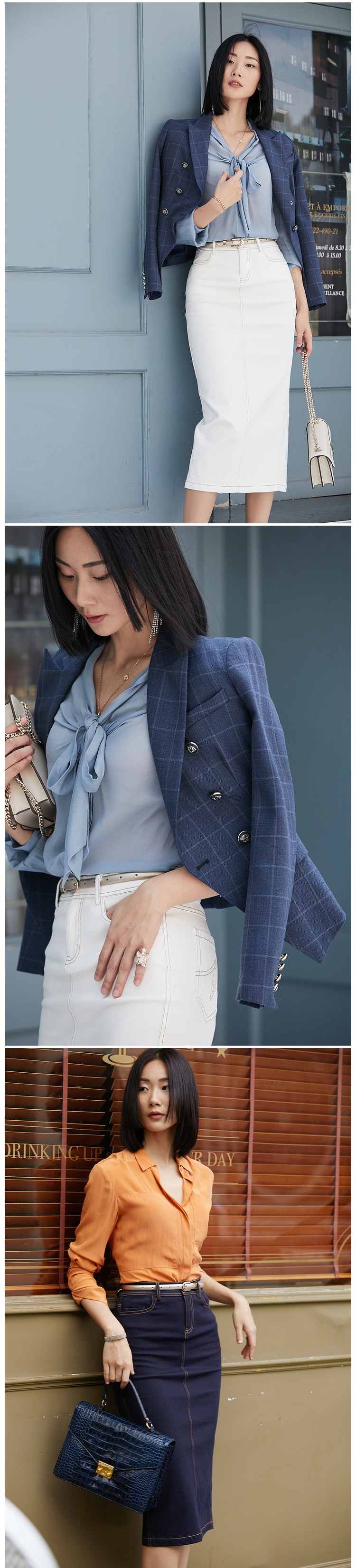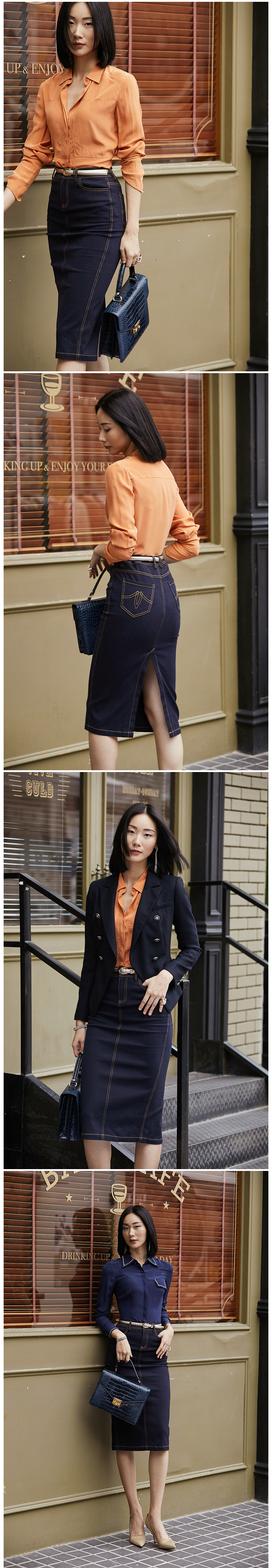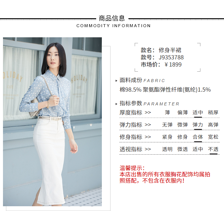 不费力的时尚”牛仔半裙 搭配单品 建议两色入手J9353788颈袖添香