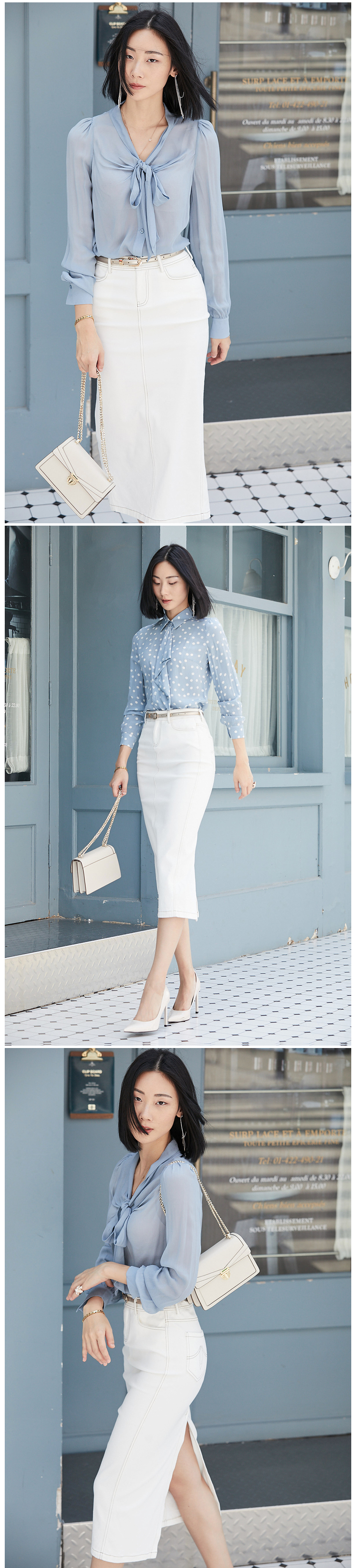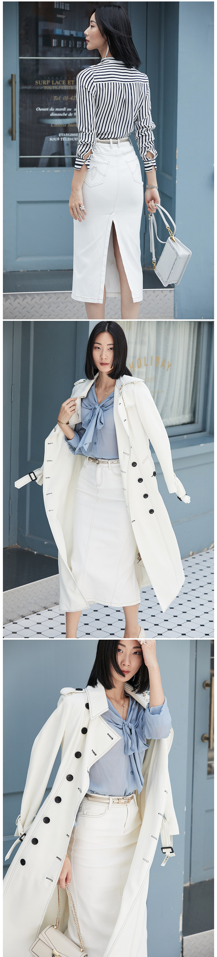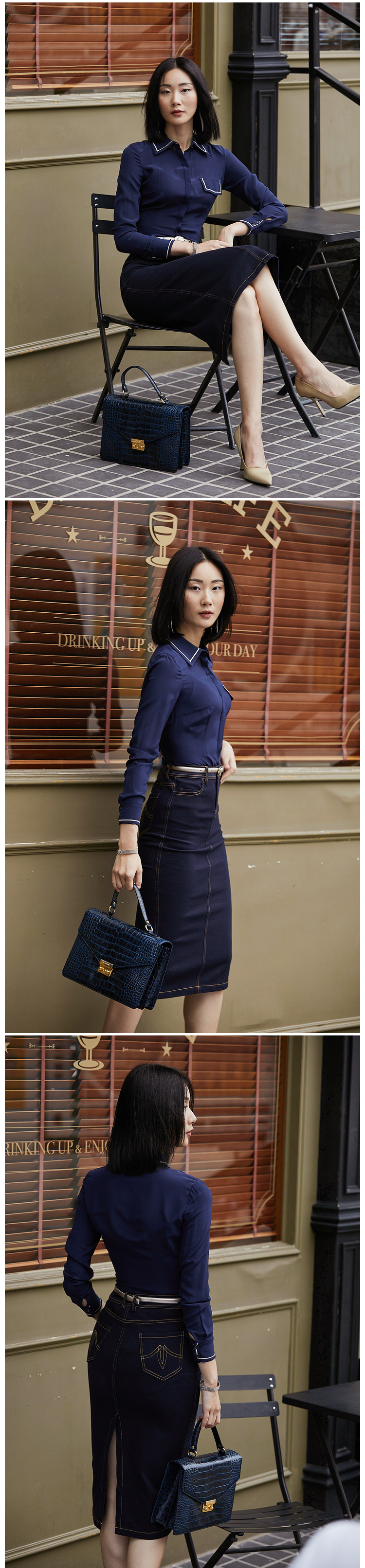 不费力的时尚”牛仔半裙 搭配单品 建议两色入手J9353788颈袖添香