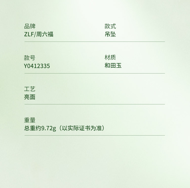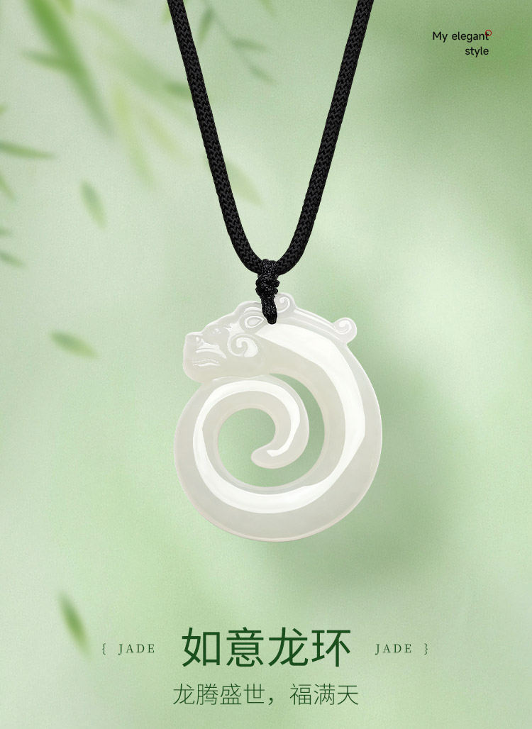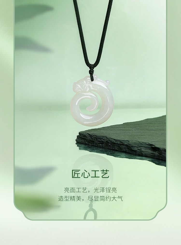 周六福和田玉吊坠男女如意龙环玉坠白玉石挂件官方正品节日礼物