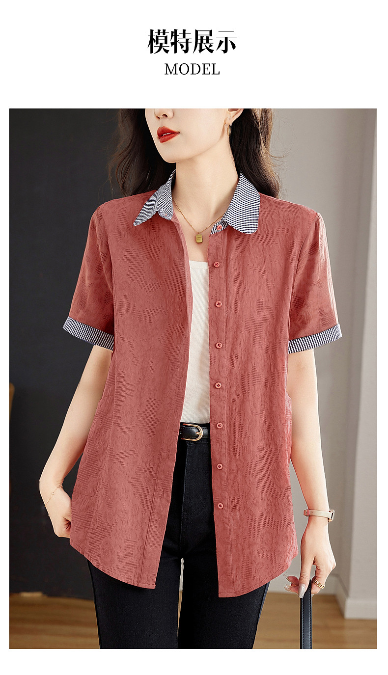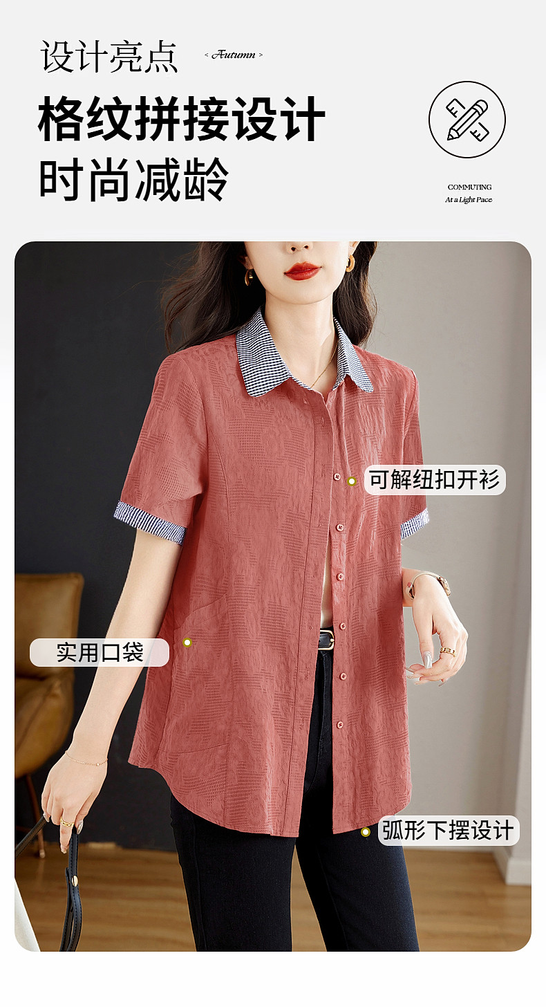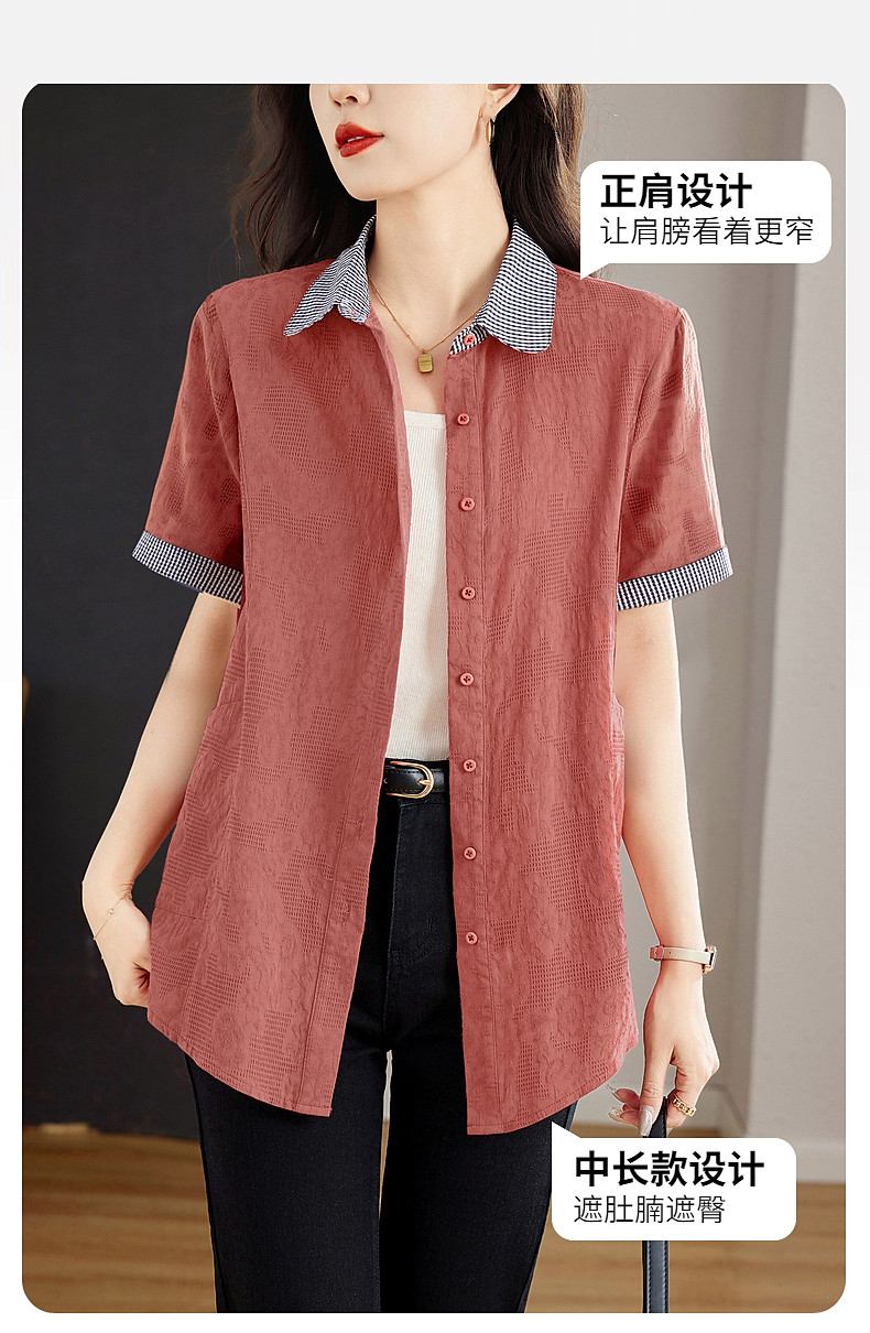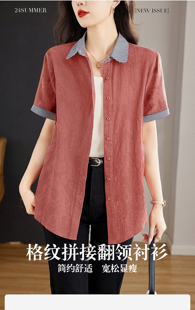 大码棉麻女士短袖衬衫2026新款夏季宽松全棉t恤衫中长款纯棉上衣