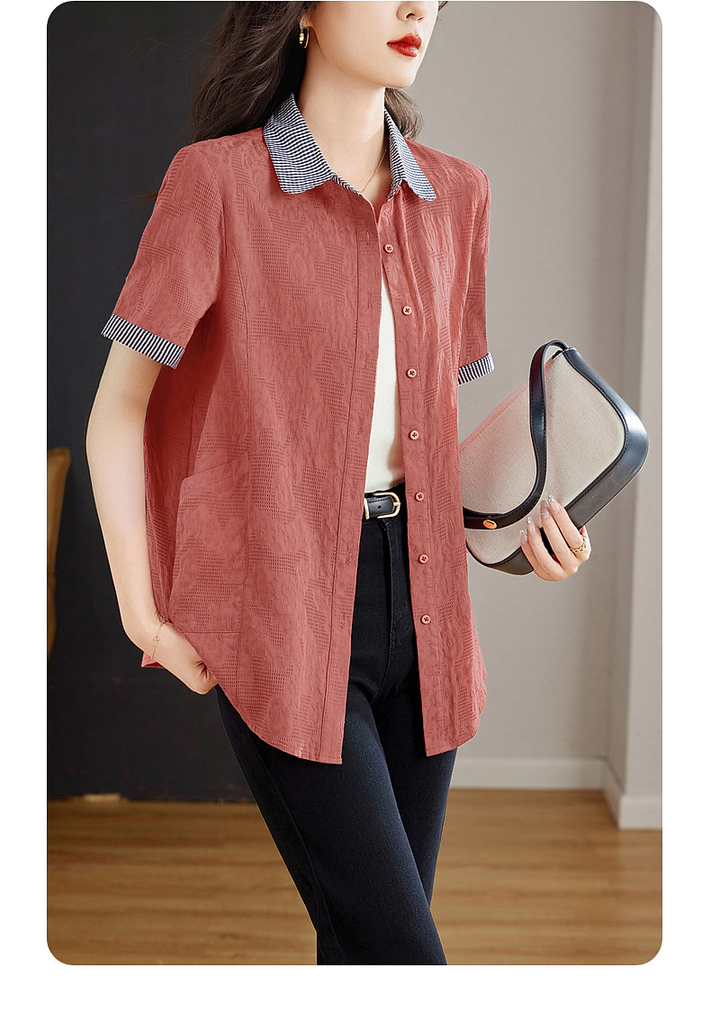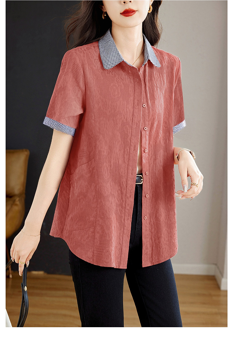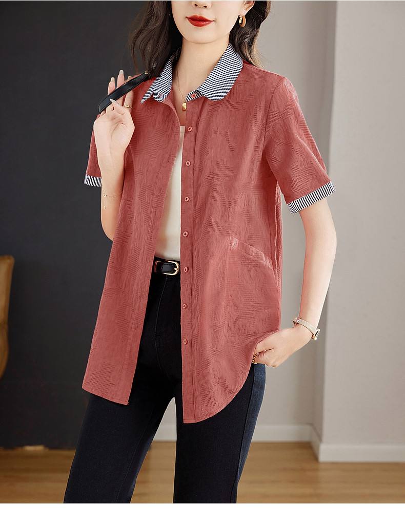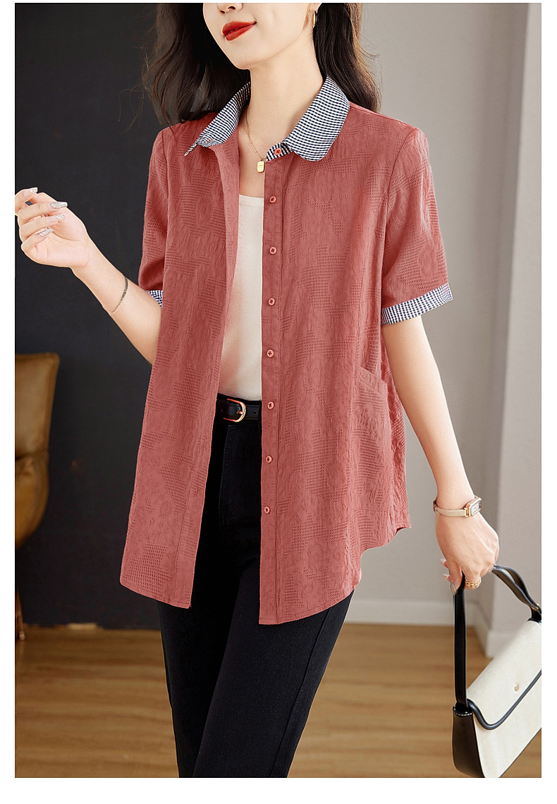 大码棉麻女士短袖衬衫2026新款夏季宽松全棉t恤衫中长款纯棉上衣
