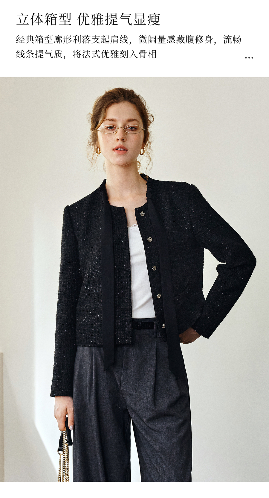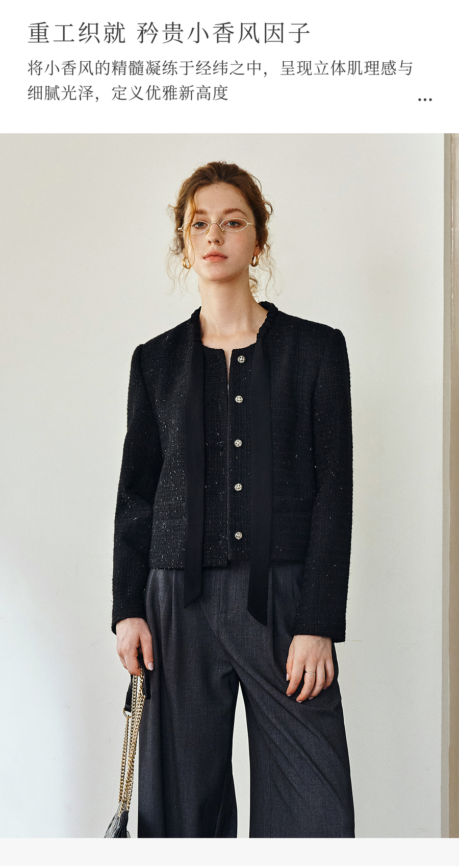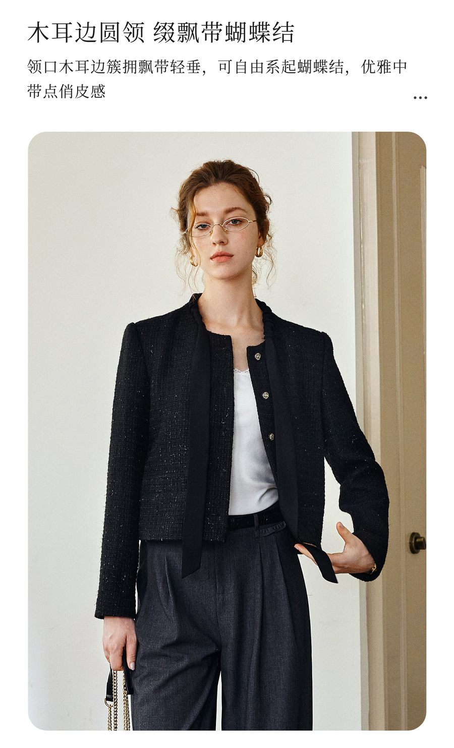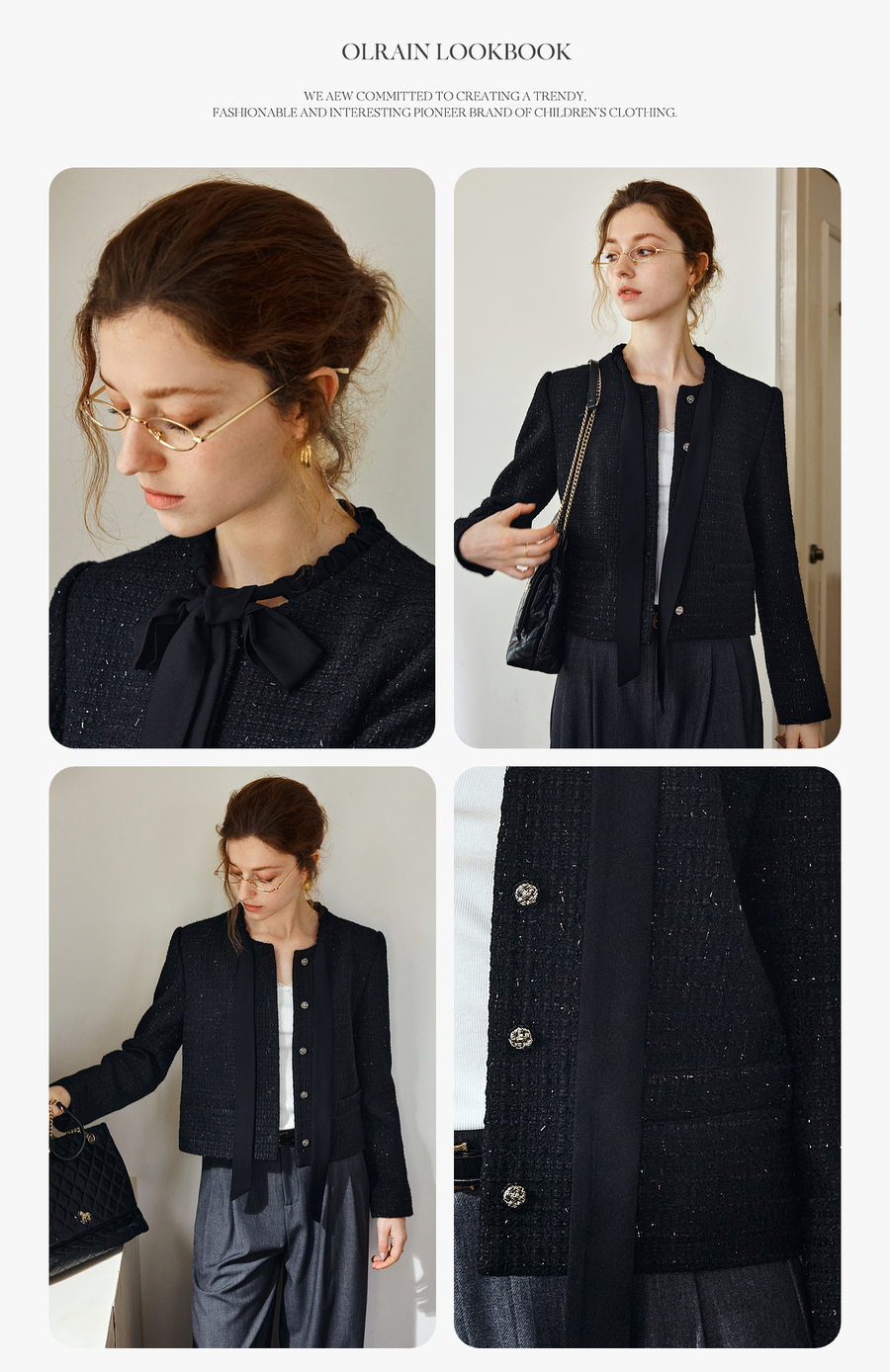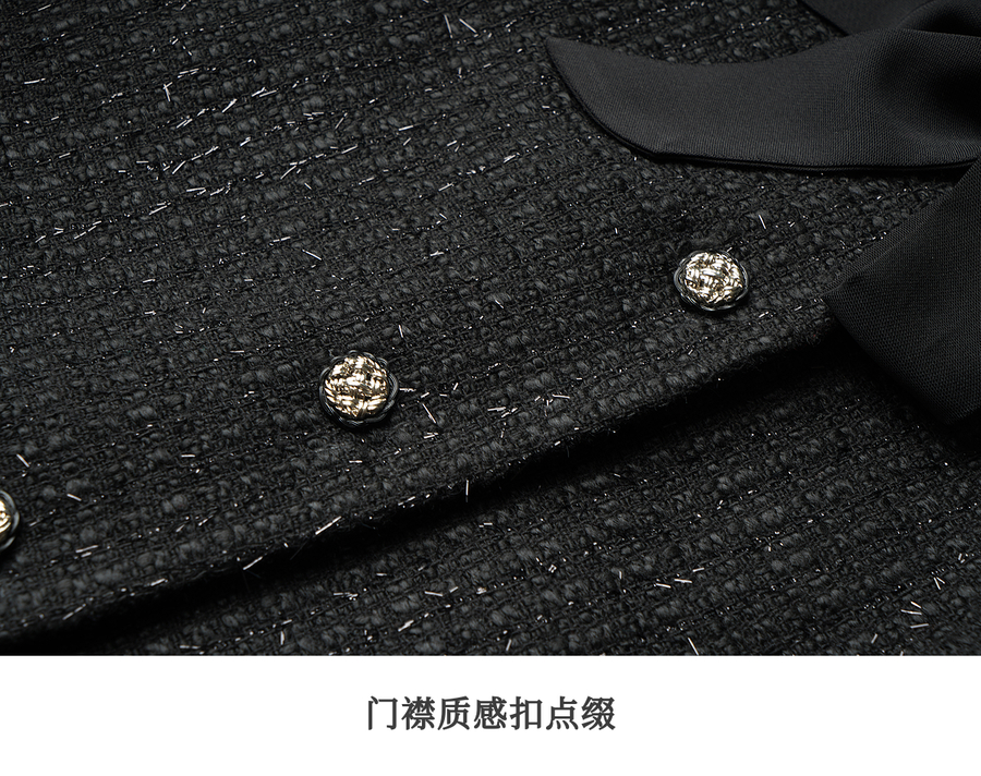 OLrain欧芮儿法式黑色显瘦飘带小香风2025秋季新款时尚百搭短外套