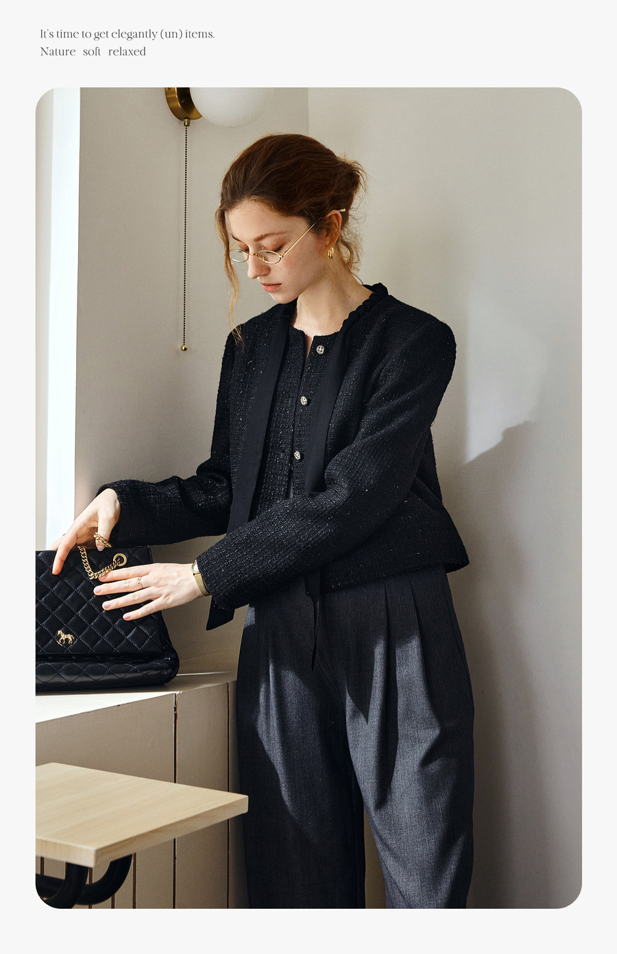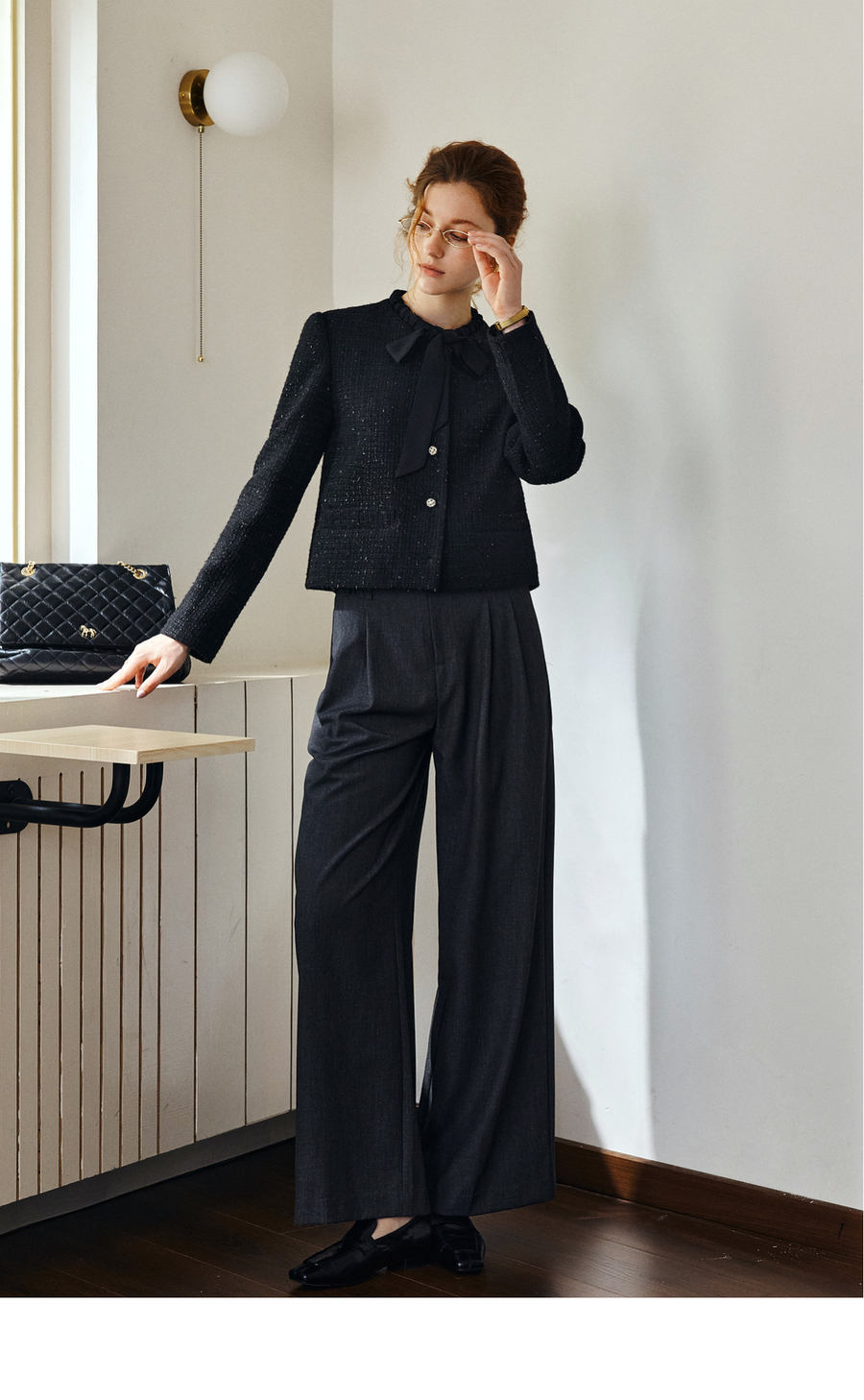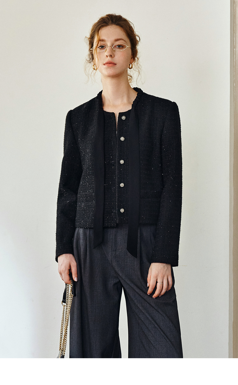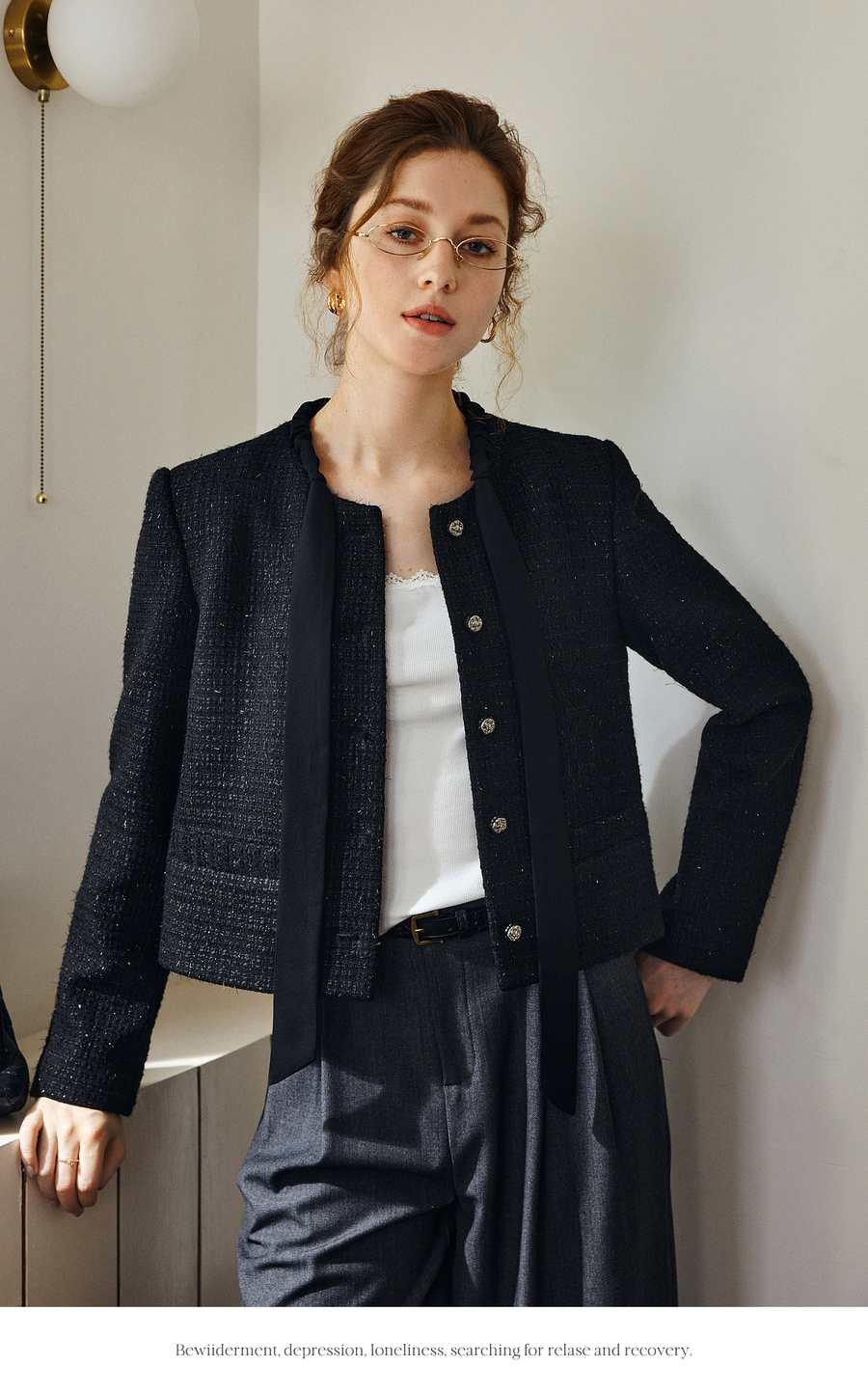 OLrain欧芮儿法式黑色显瘦飘带小香风2025秋季新款时尚百搭短外套