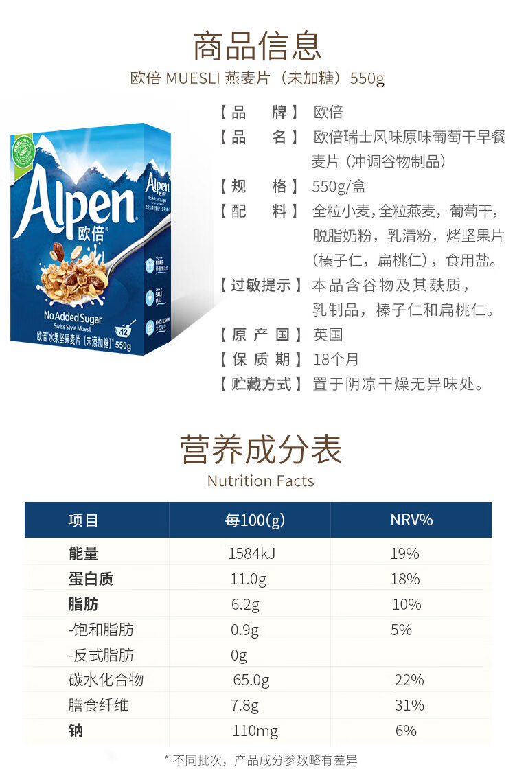 维多麦 欧倍水果坚果麦片(未添加糖)英国进口 550g