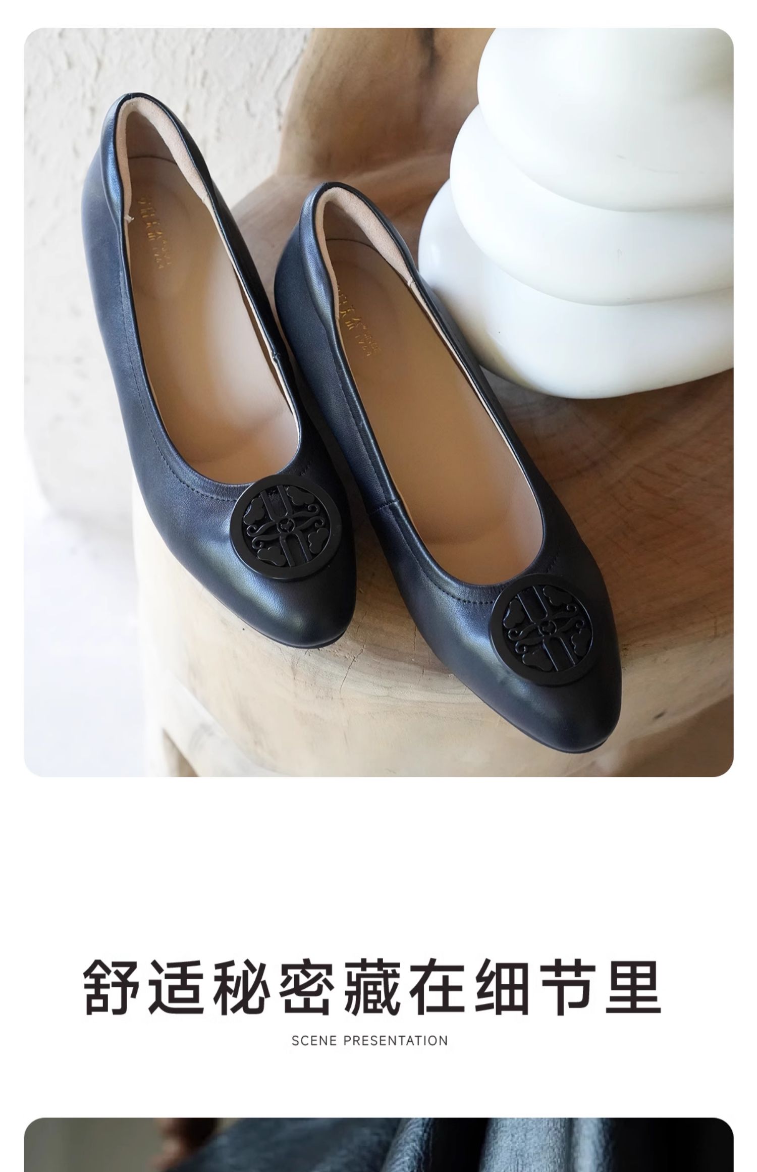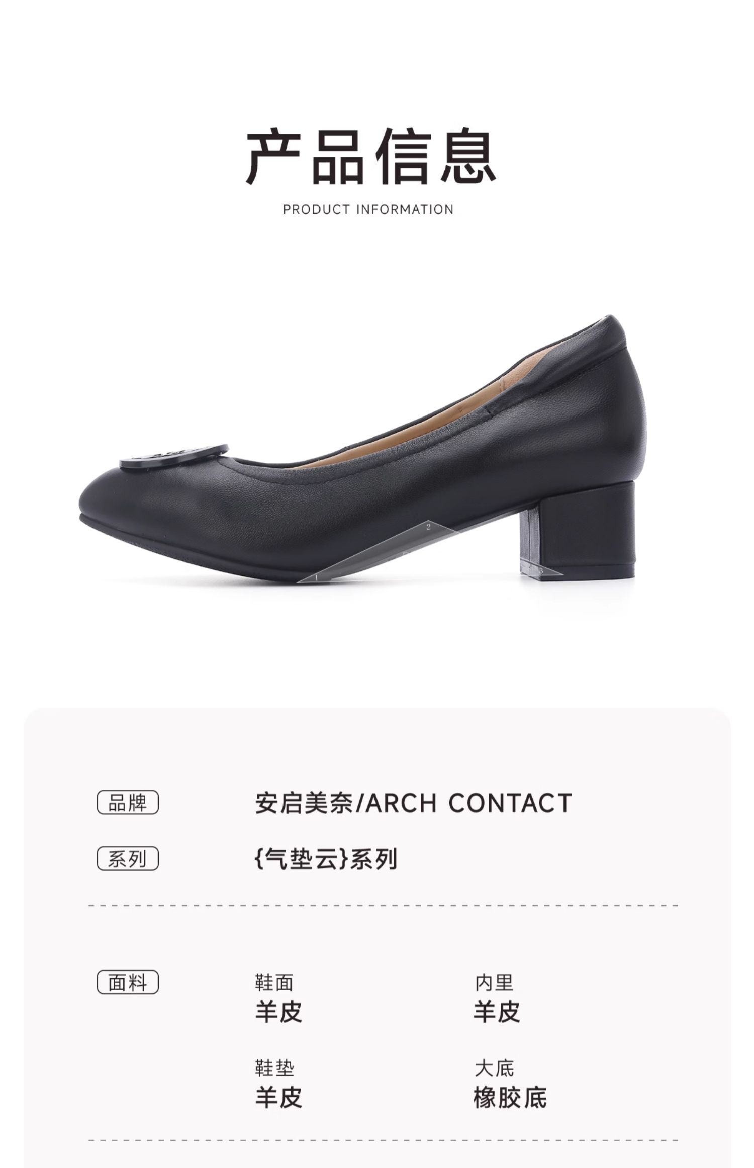 ARCHCONTACT安启美奈气垫云百搭十字花圆头方跟低跟羊皮鞋52954