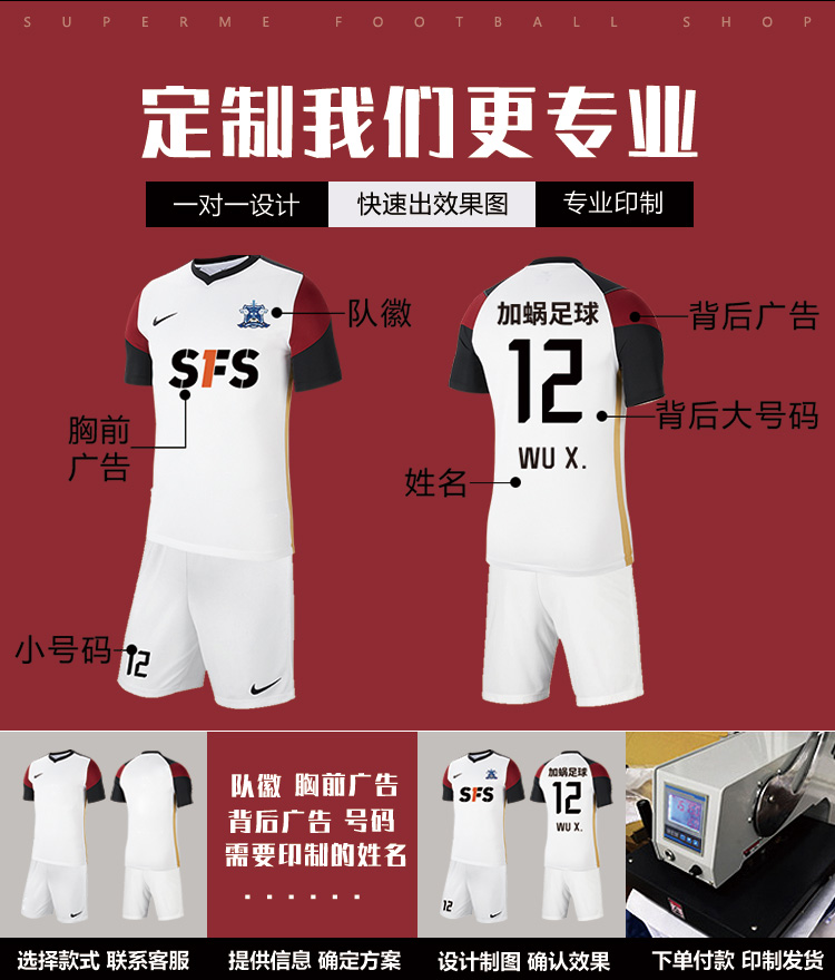 SFS耐克正品比赛运动T恤短裤定制组队透气足球服CW3826 BV6855