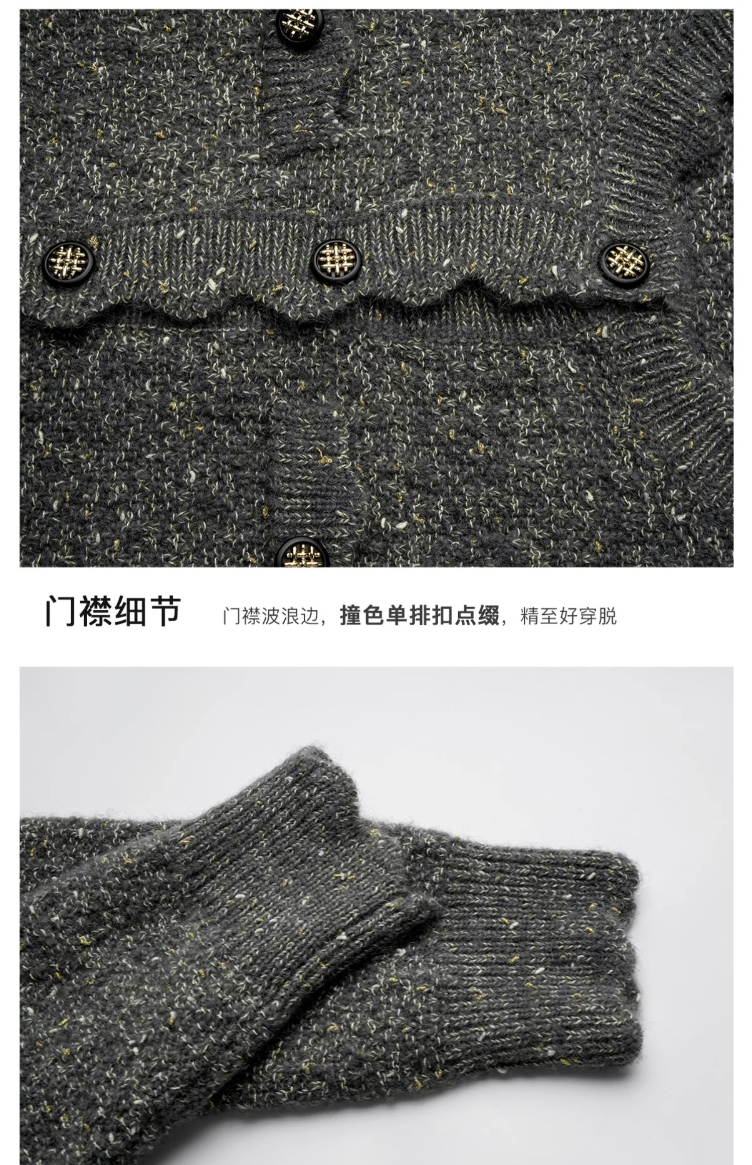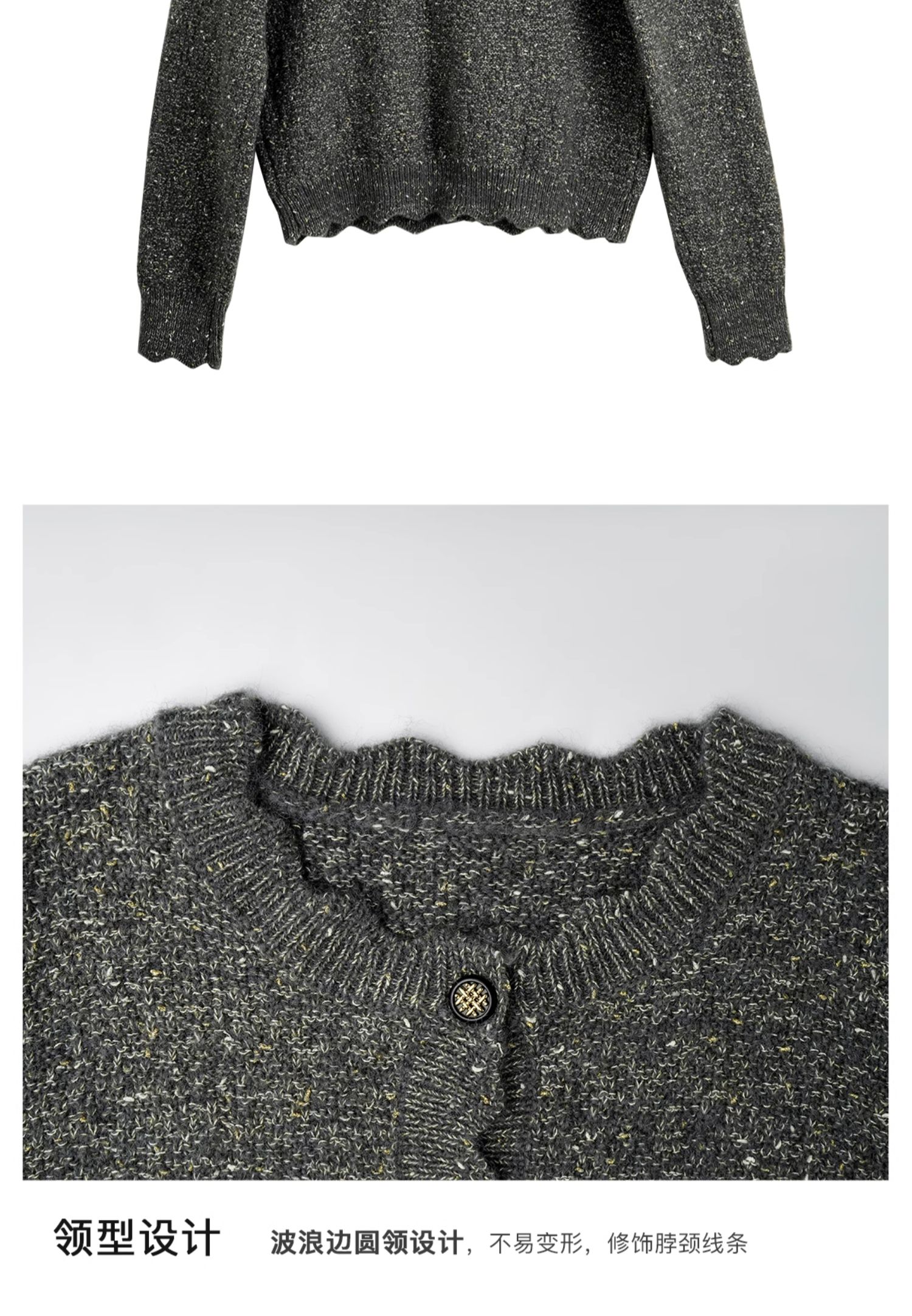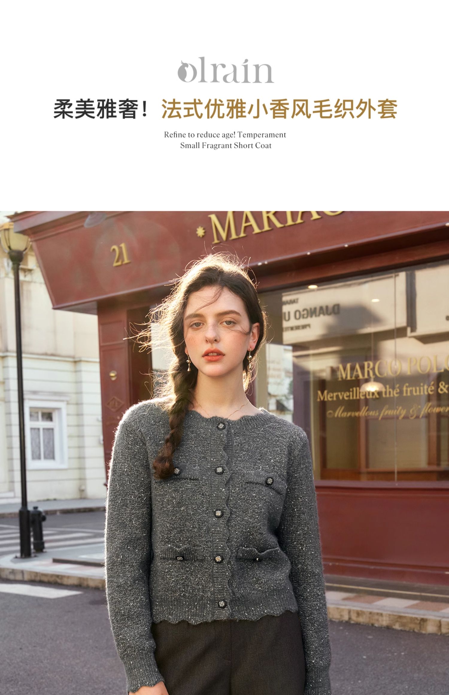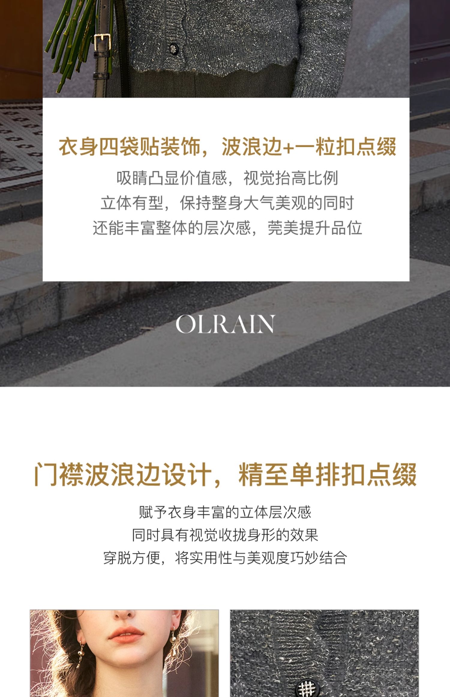 OLrain欧芮儿深灰色毛衣女秋季2024年新款优雅显瘦小香风针织外套