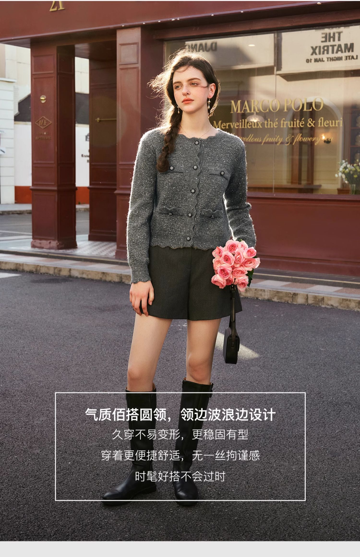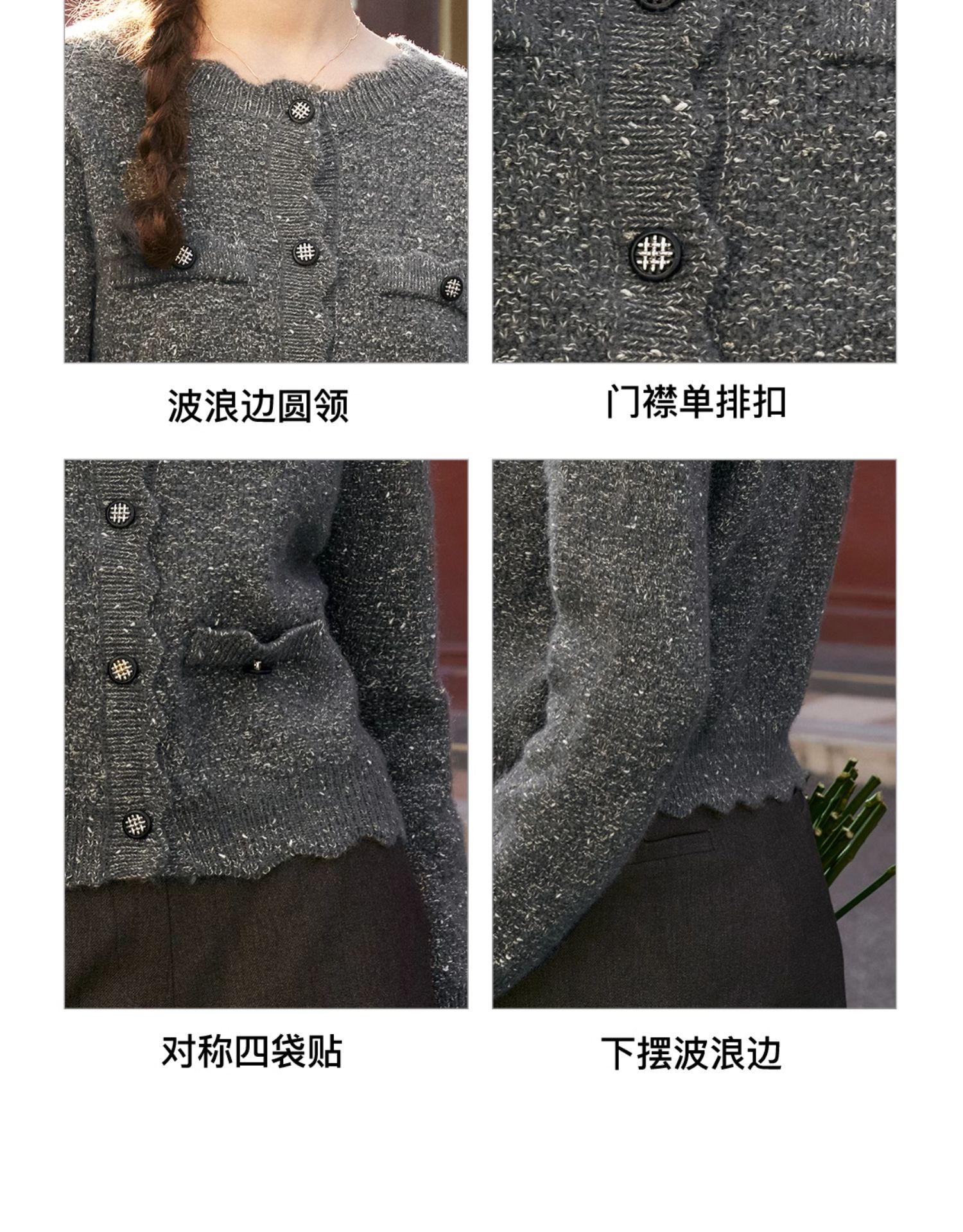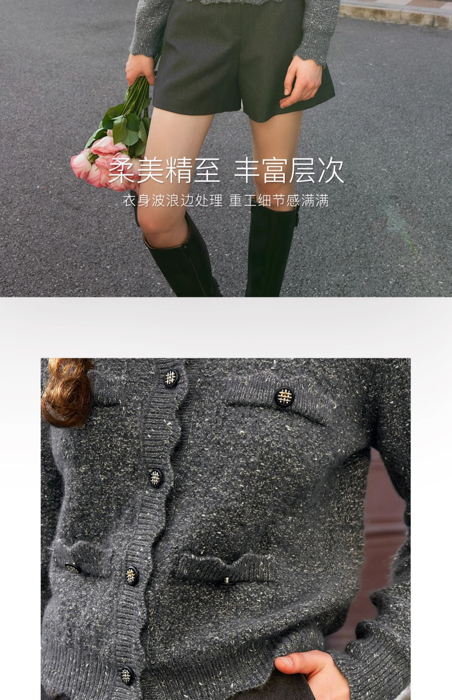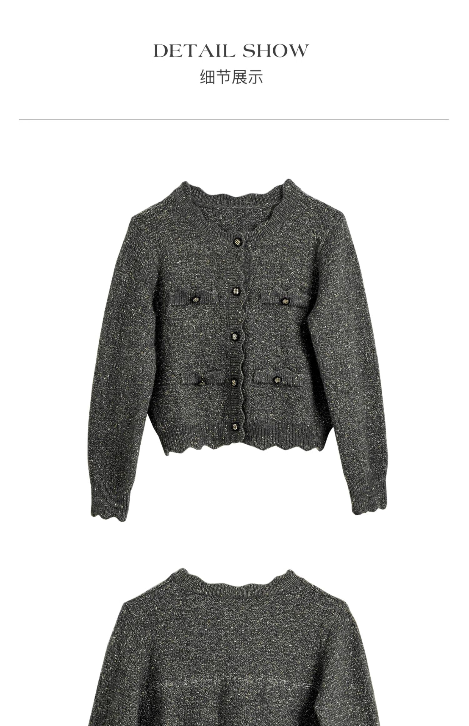 OLrain欧芮儿深灰色毛衣女秋季2024年新款优雅显瘦小香风针织外套