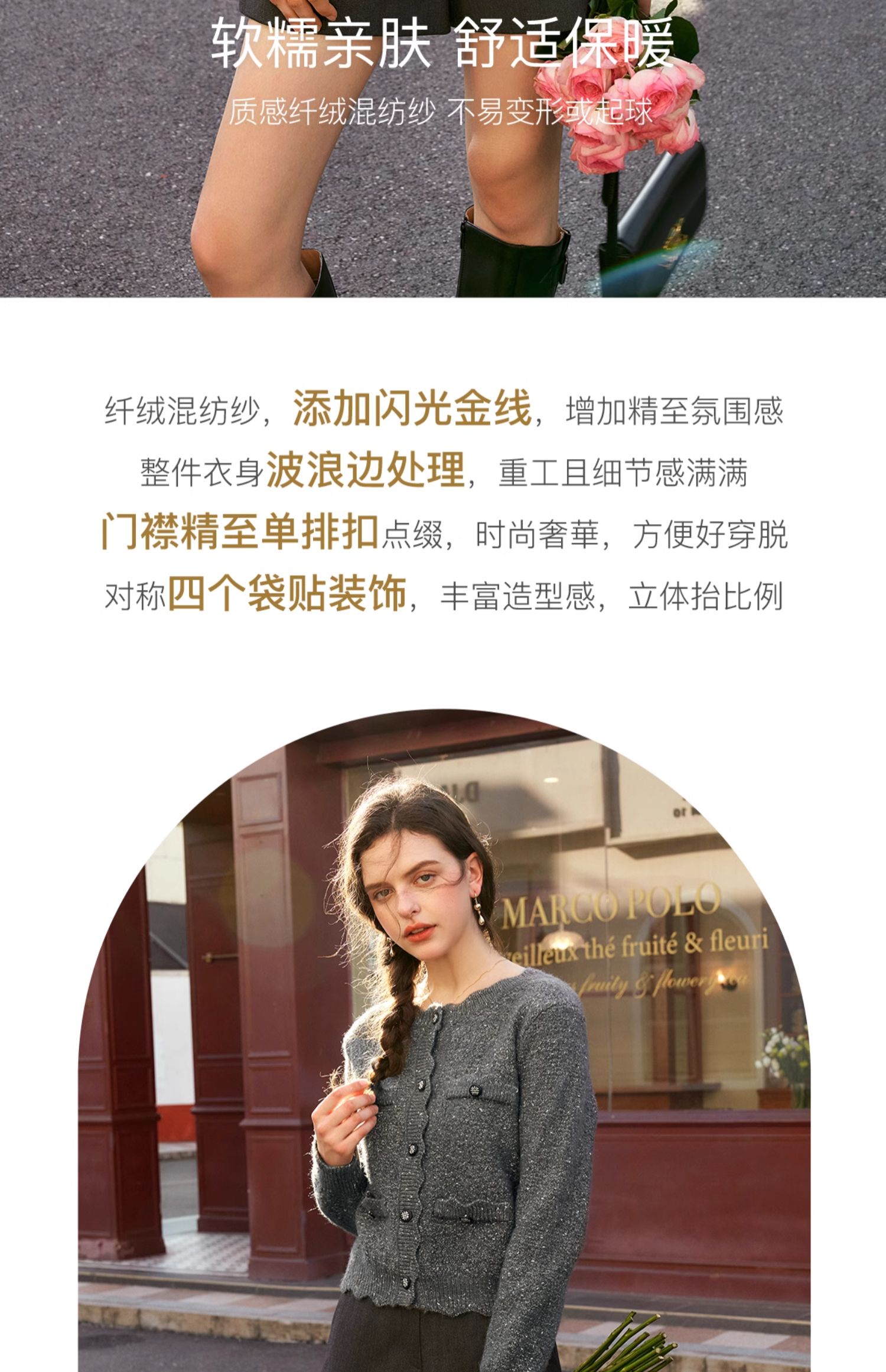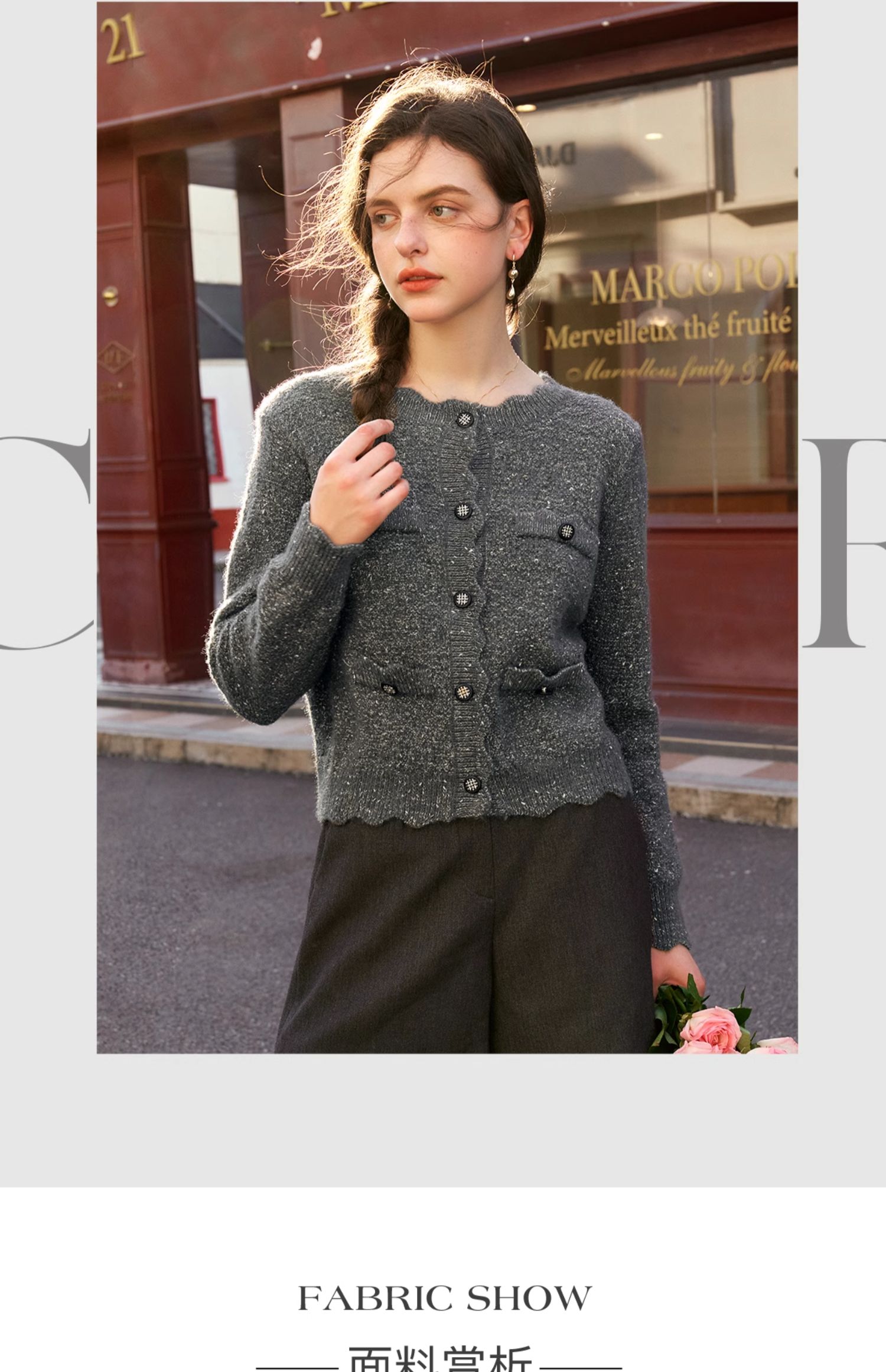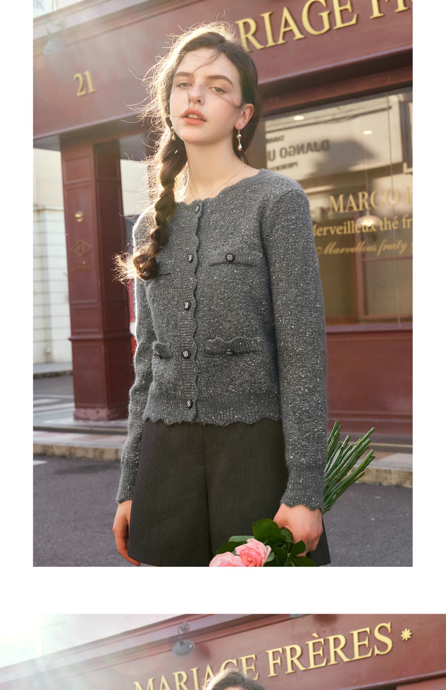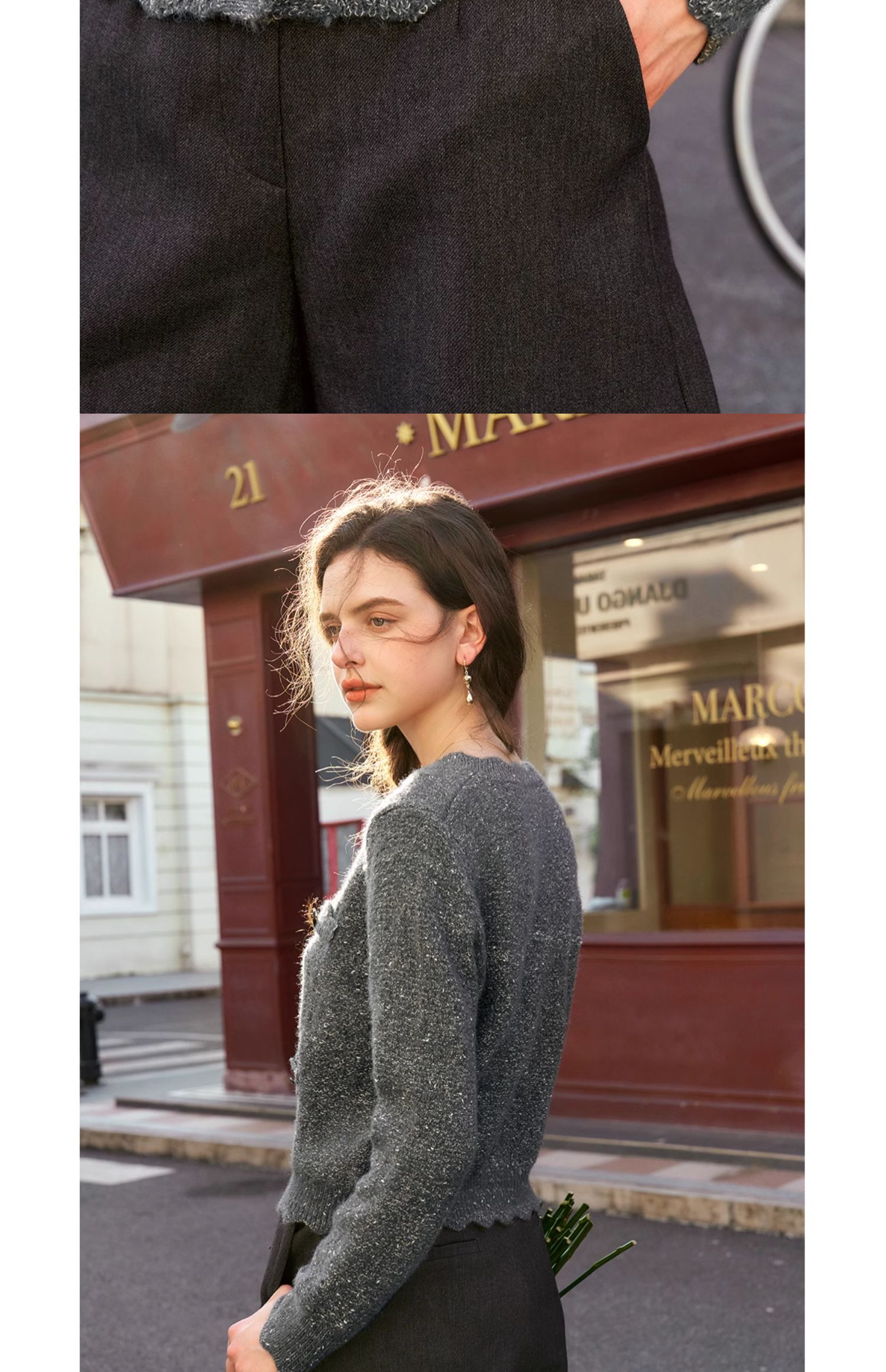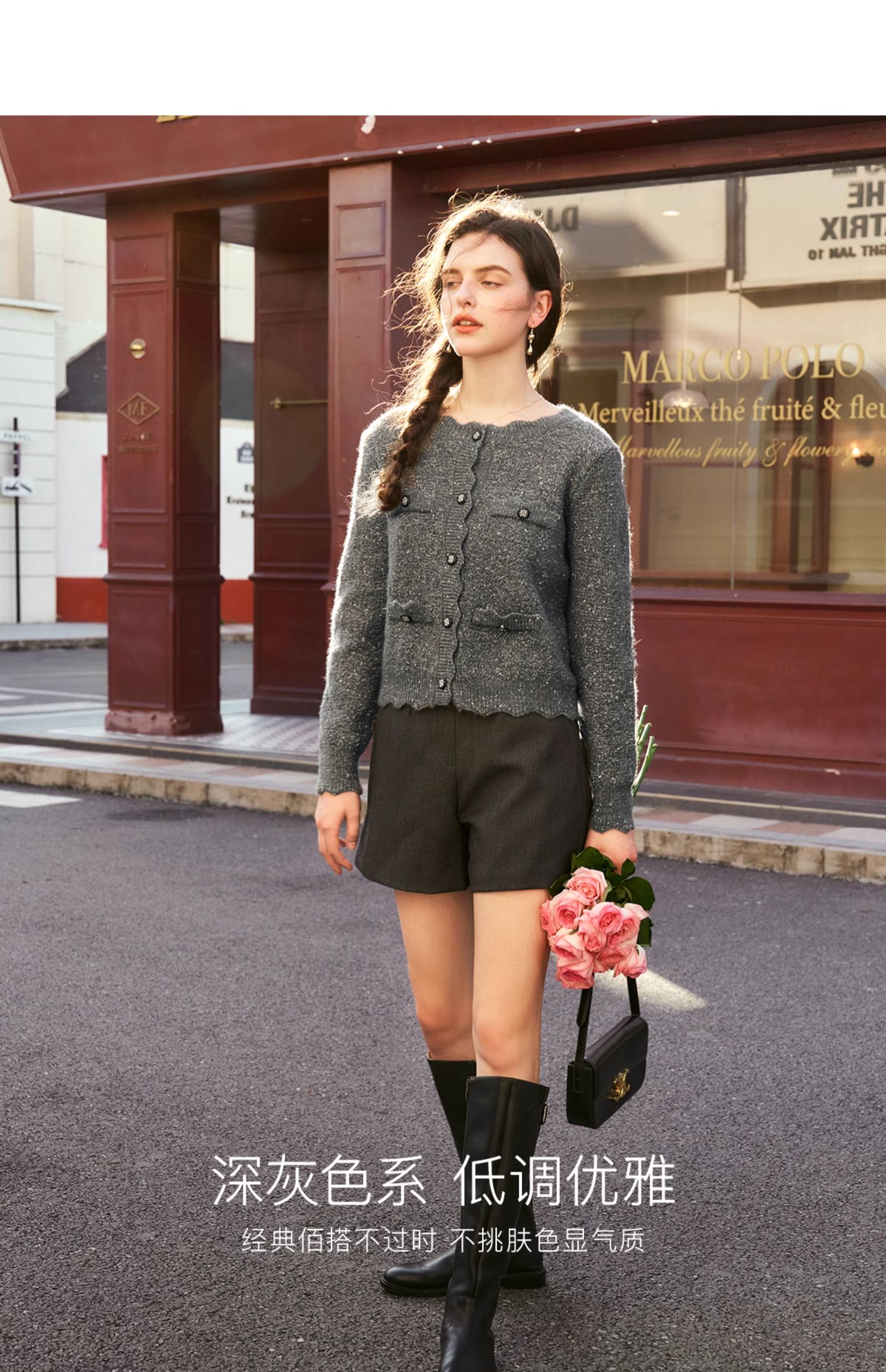 OLrain欧芮儿深灰色毛衣女秋季2024年新款优雅显瘦小香风针织外套
