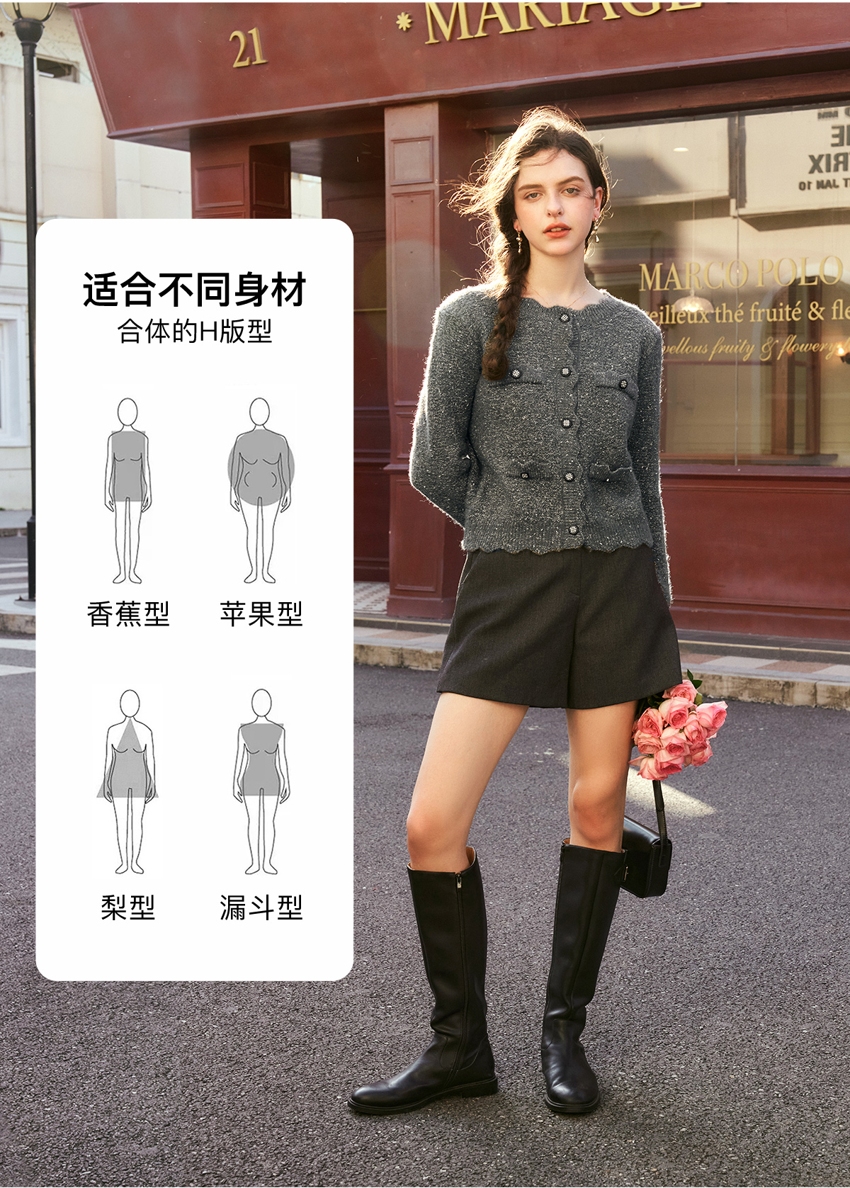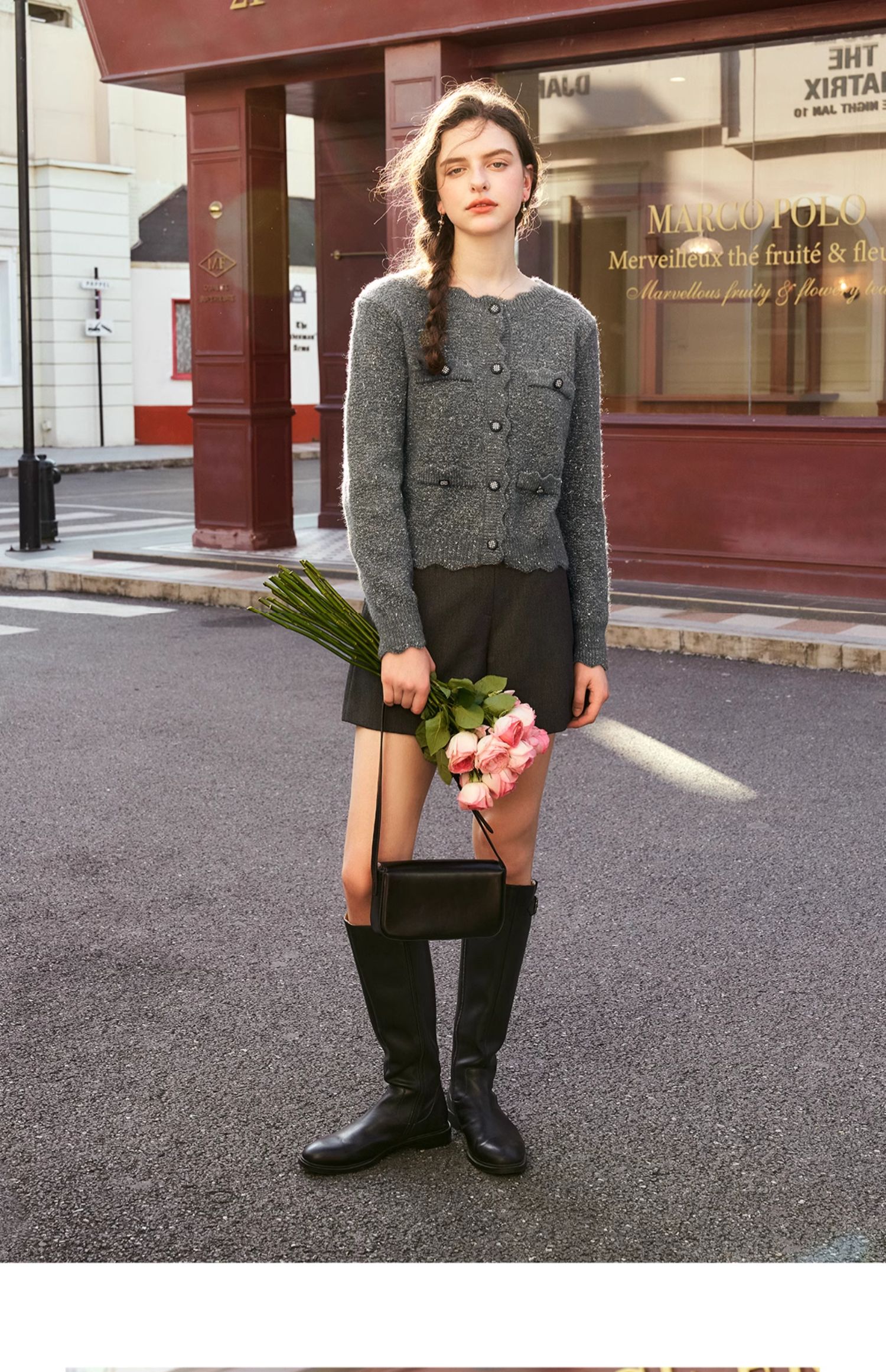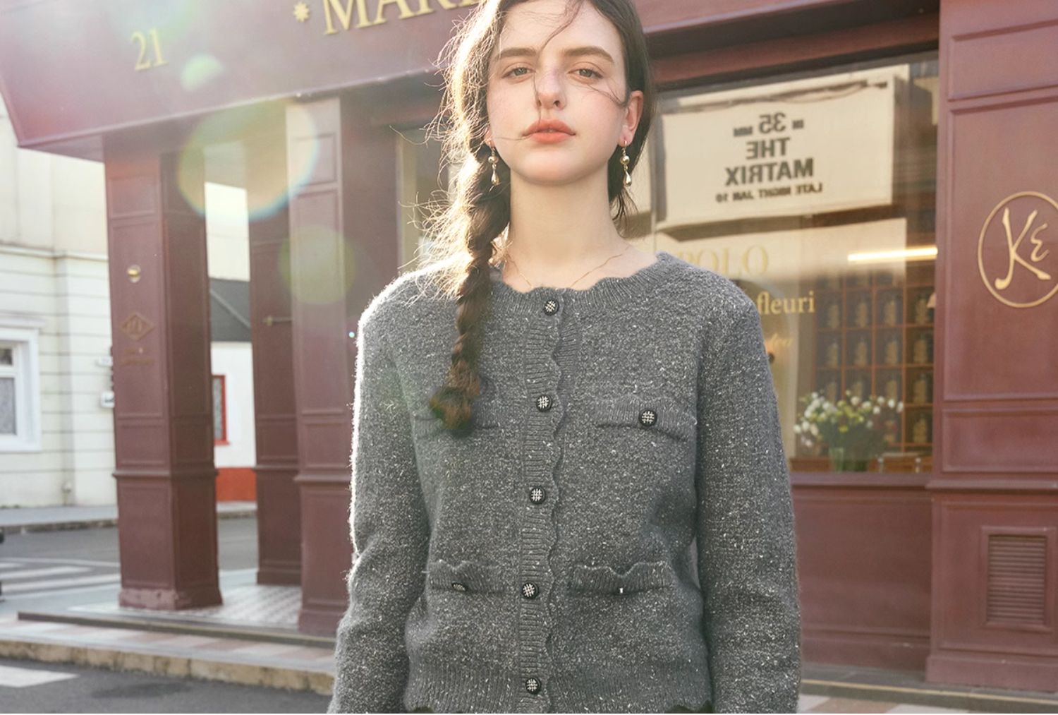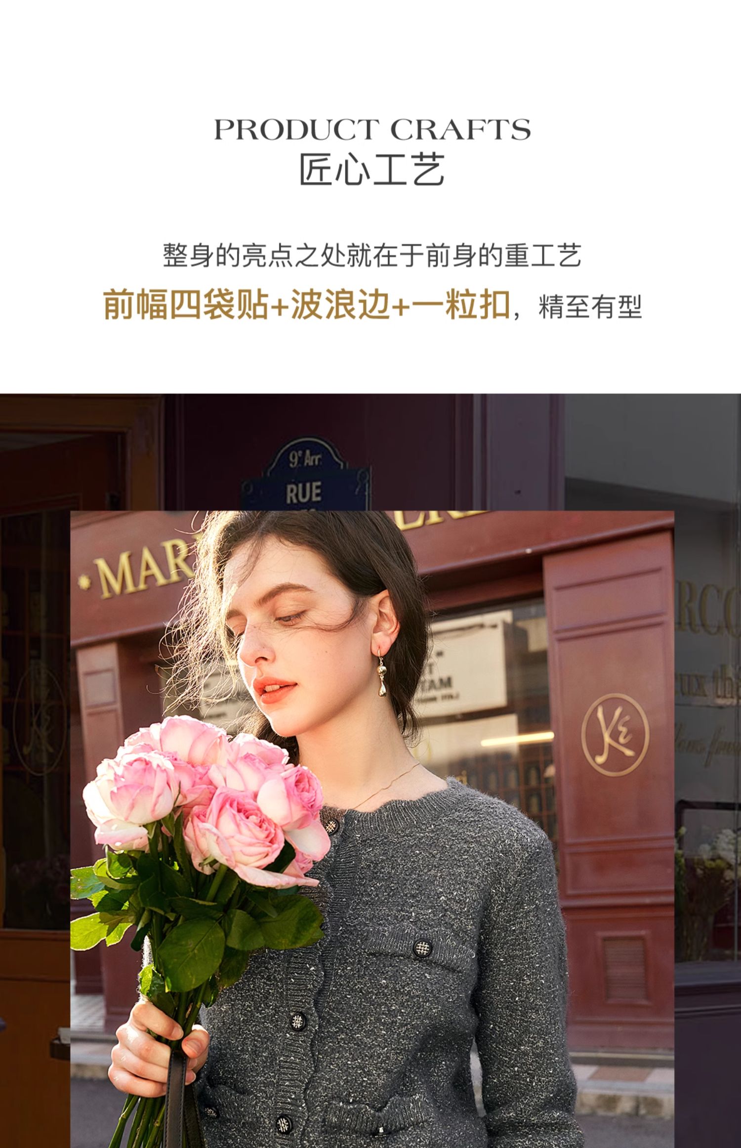 OLrain欧芮儿深灰色毛衣女秋季2024年新款优雅显瘦小香风针织外套