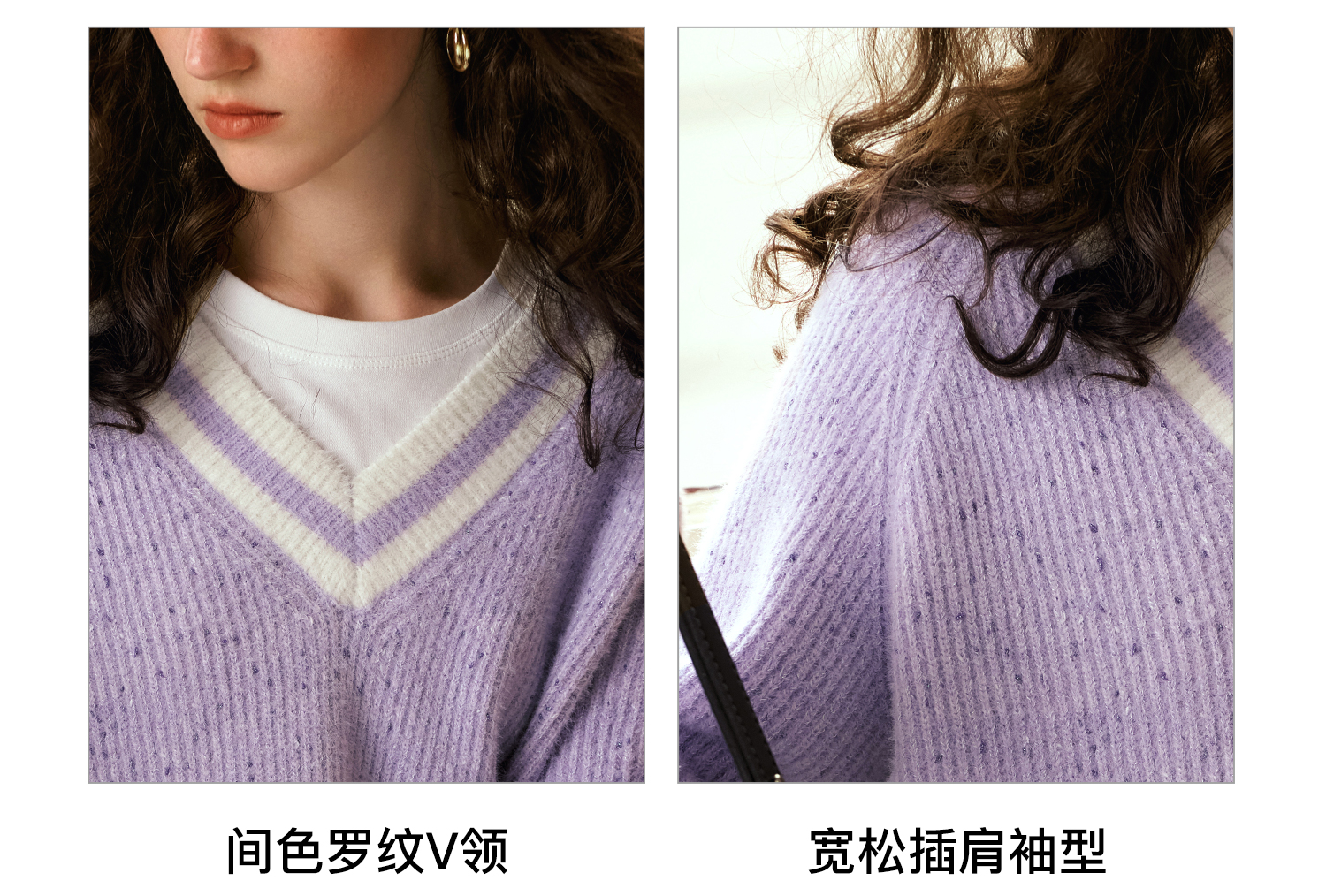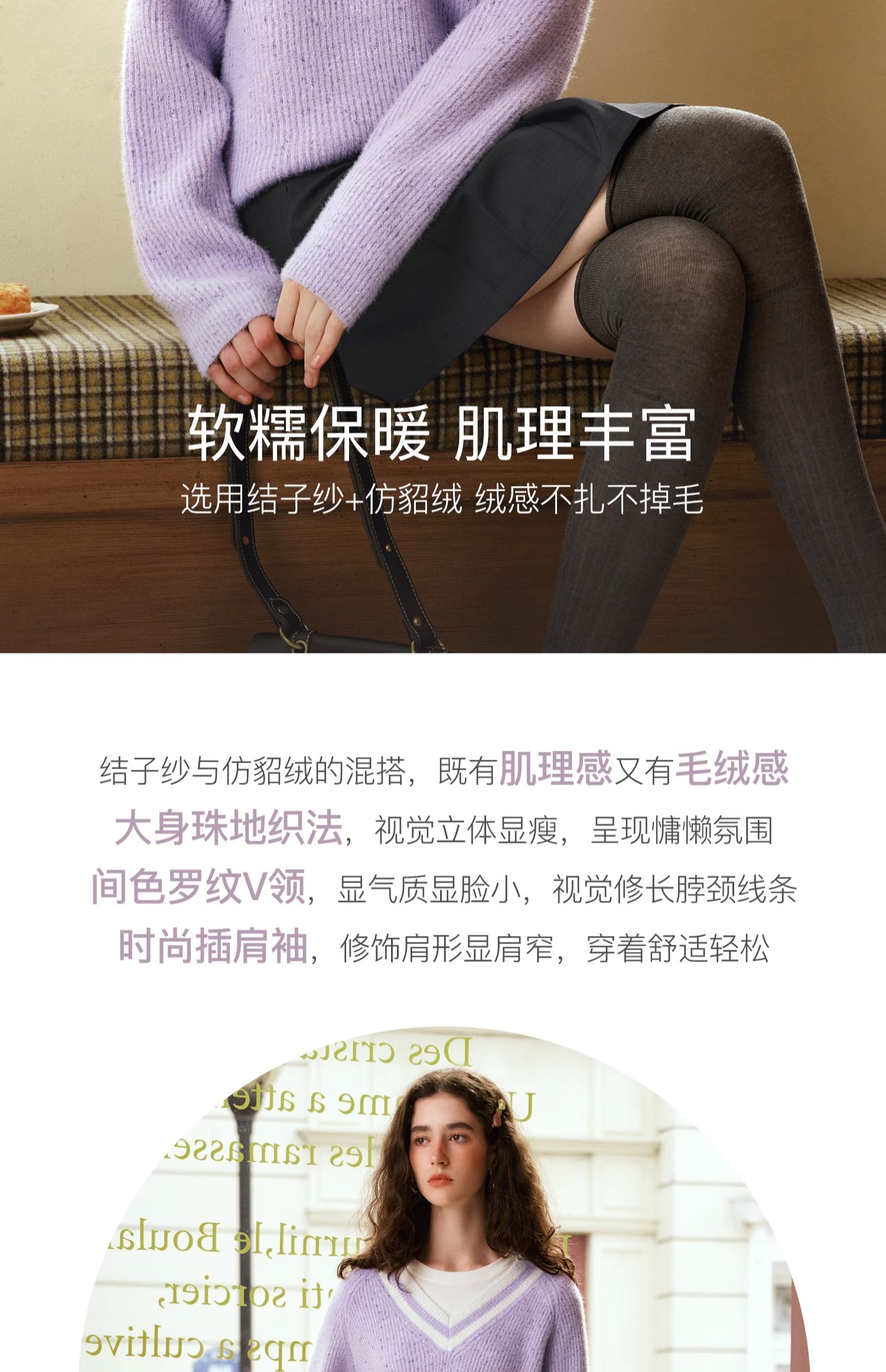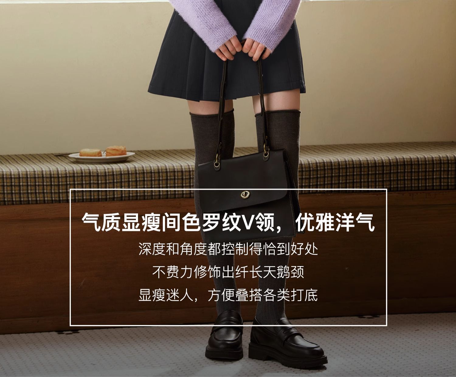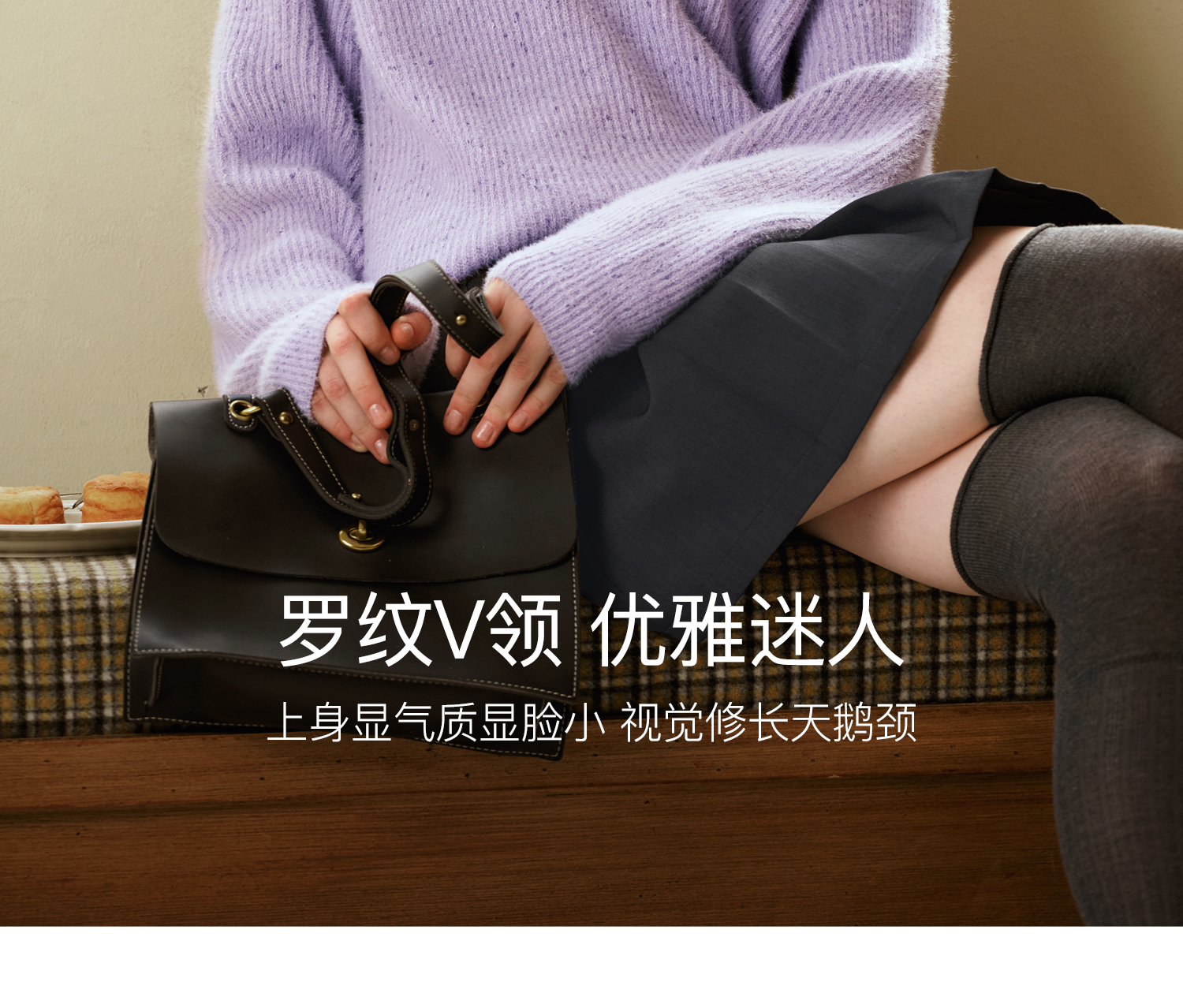 OLrain欧芮儿法式V领毛衣女冬季2024年新款慵懒风宽松针织套头衫