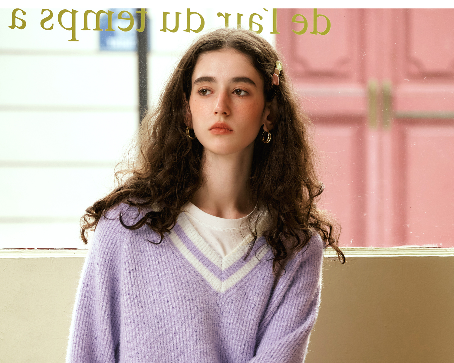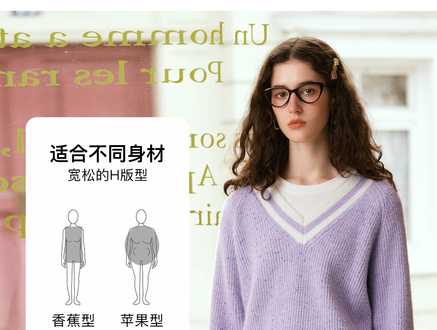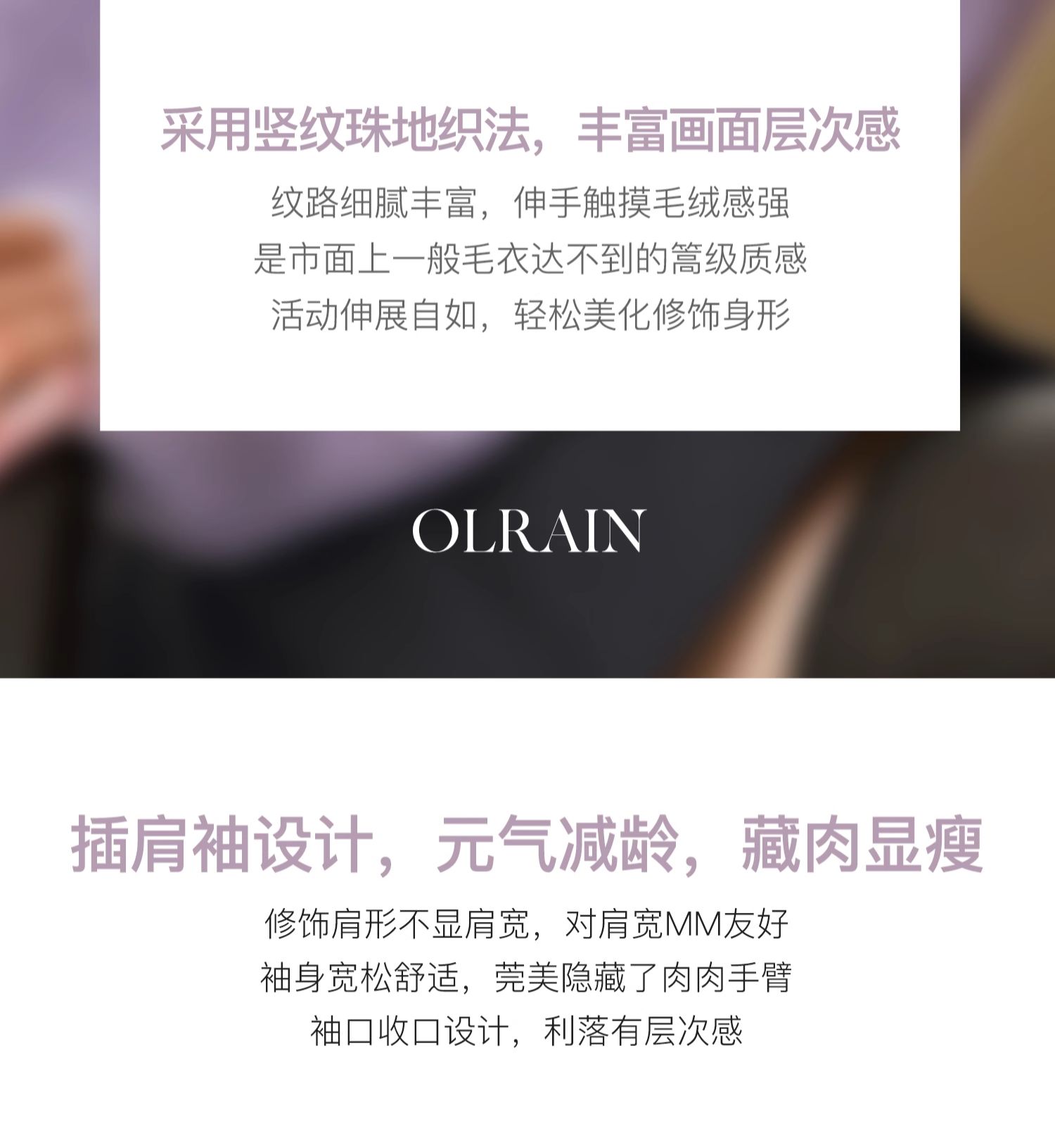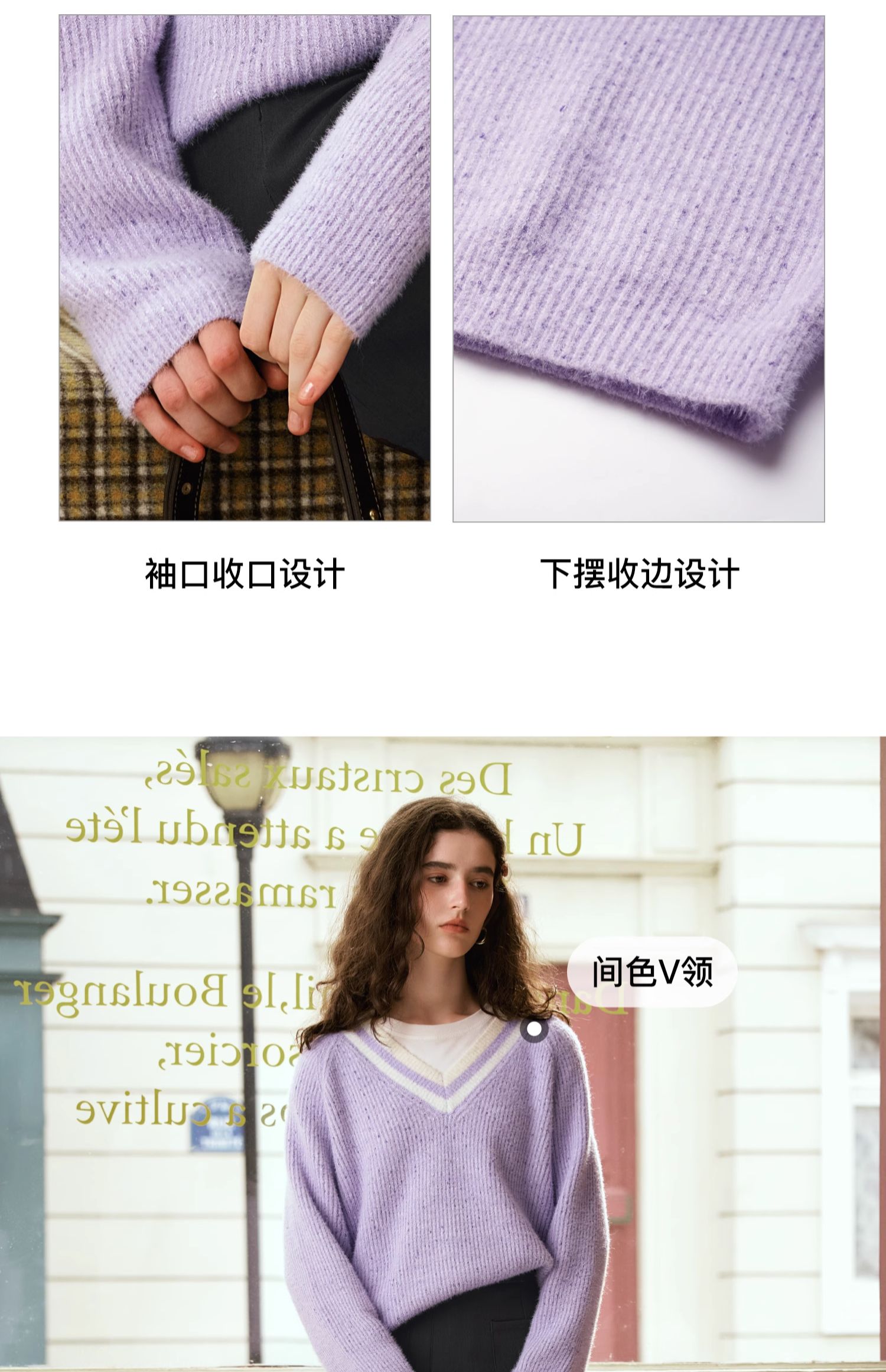 OLrain欧芮儿法式V领毛衣女冬季2024年新款慵懒风宽松针织套头衫