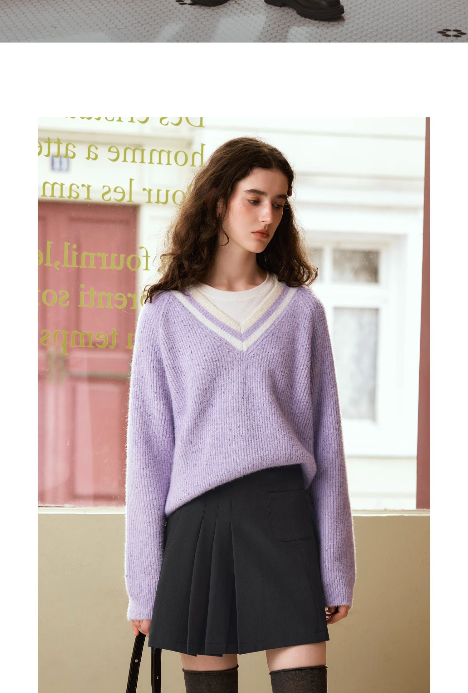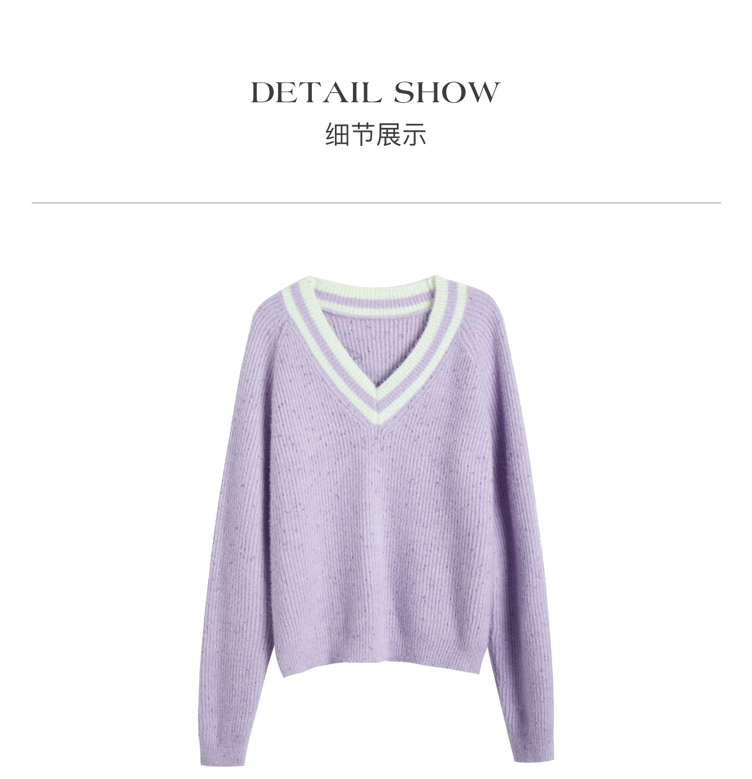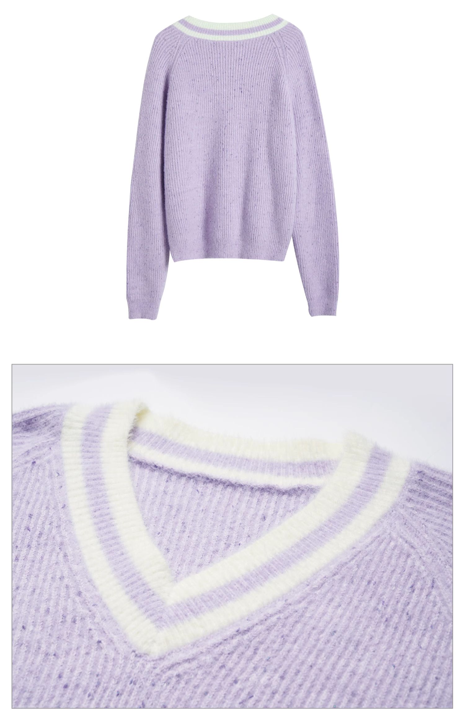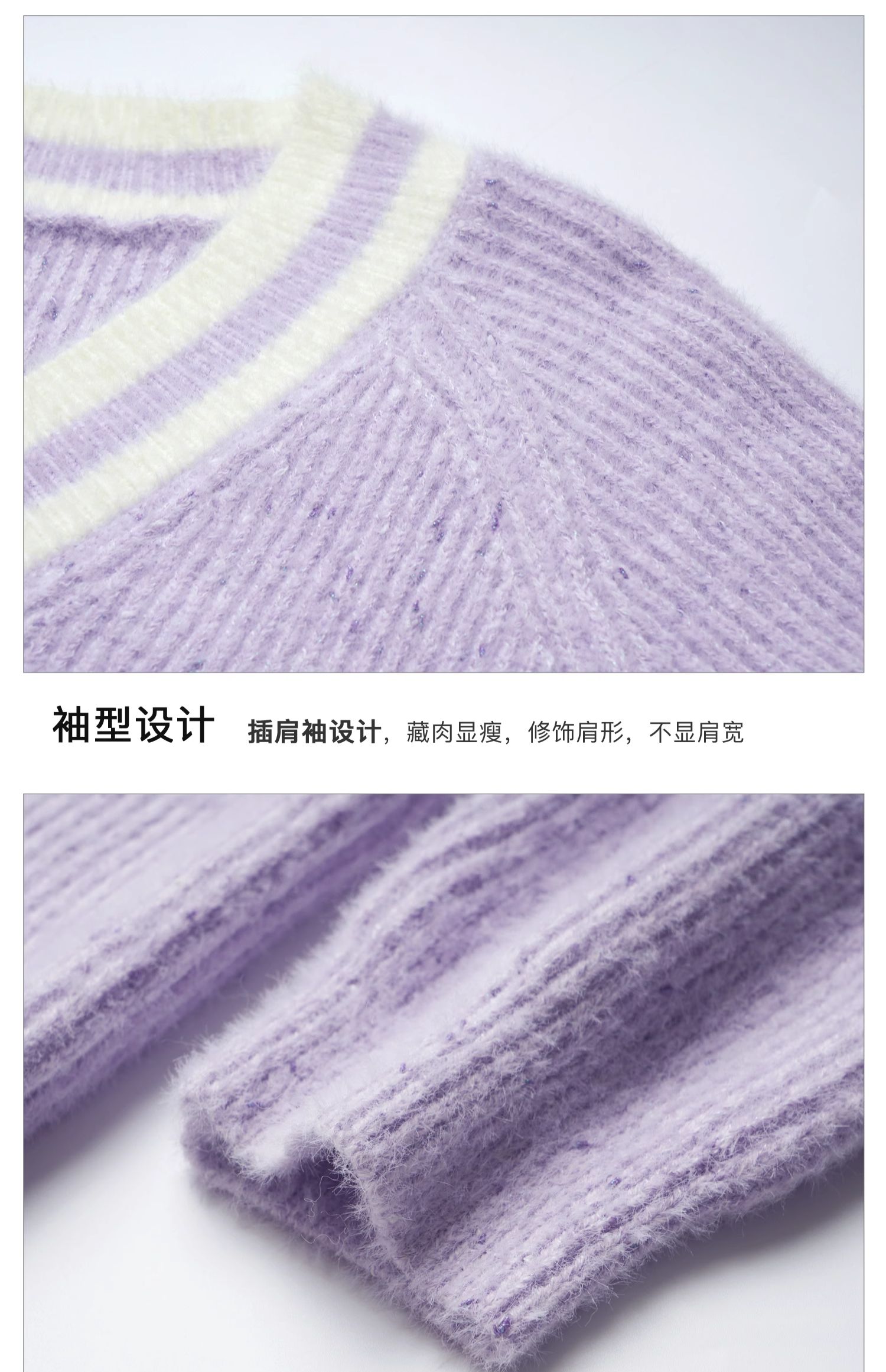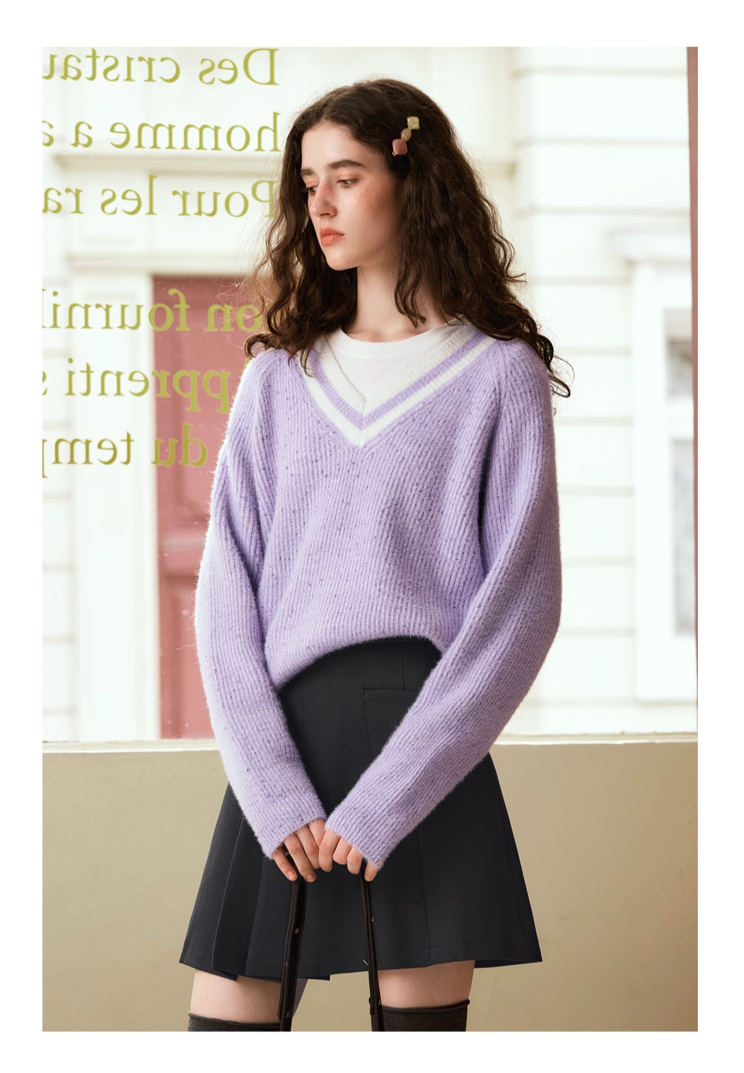 OLrain欧芮儿法式V领毛衣女冬季2024年新款慵懒风宽松针织套头衫