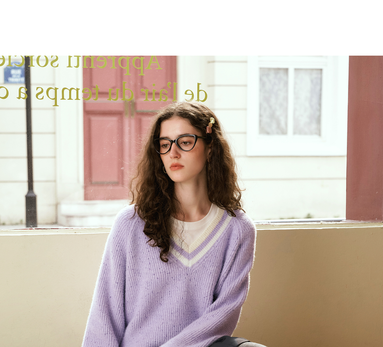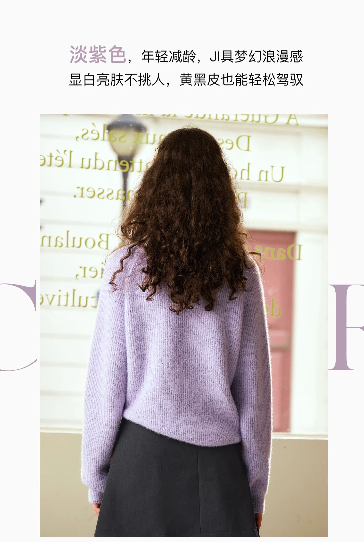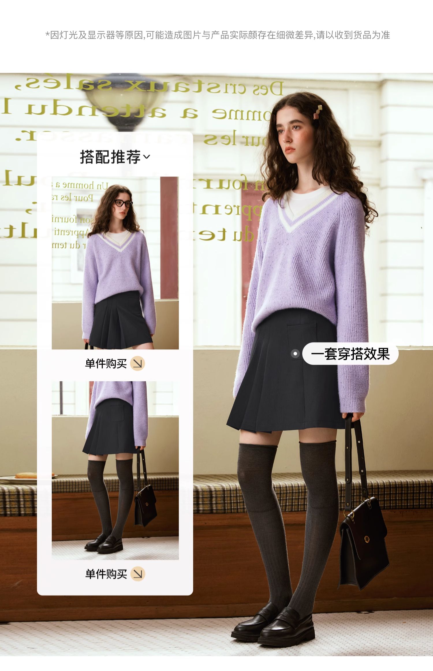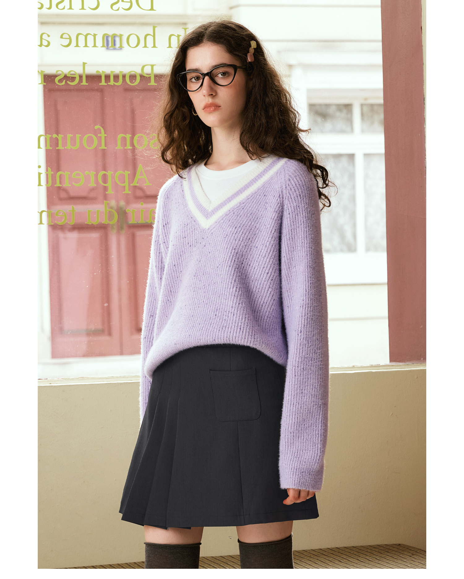 OLrain欧芮儿法式V领毛衣女冬季2024年新款慵懒风宽松针织套头衫