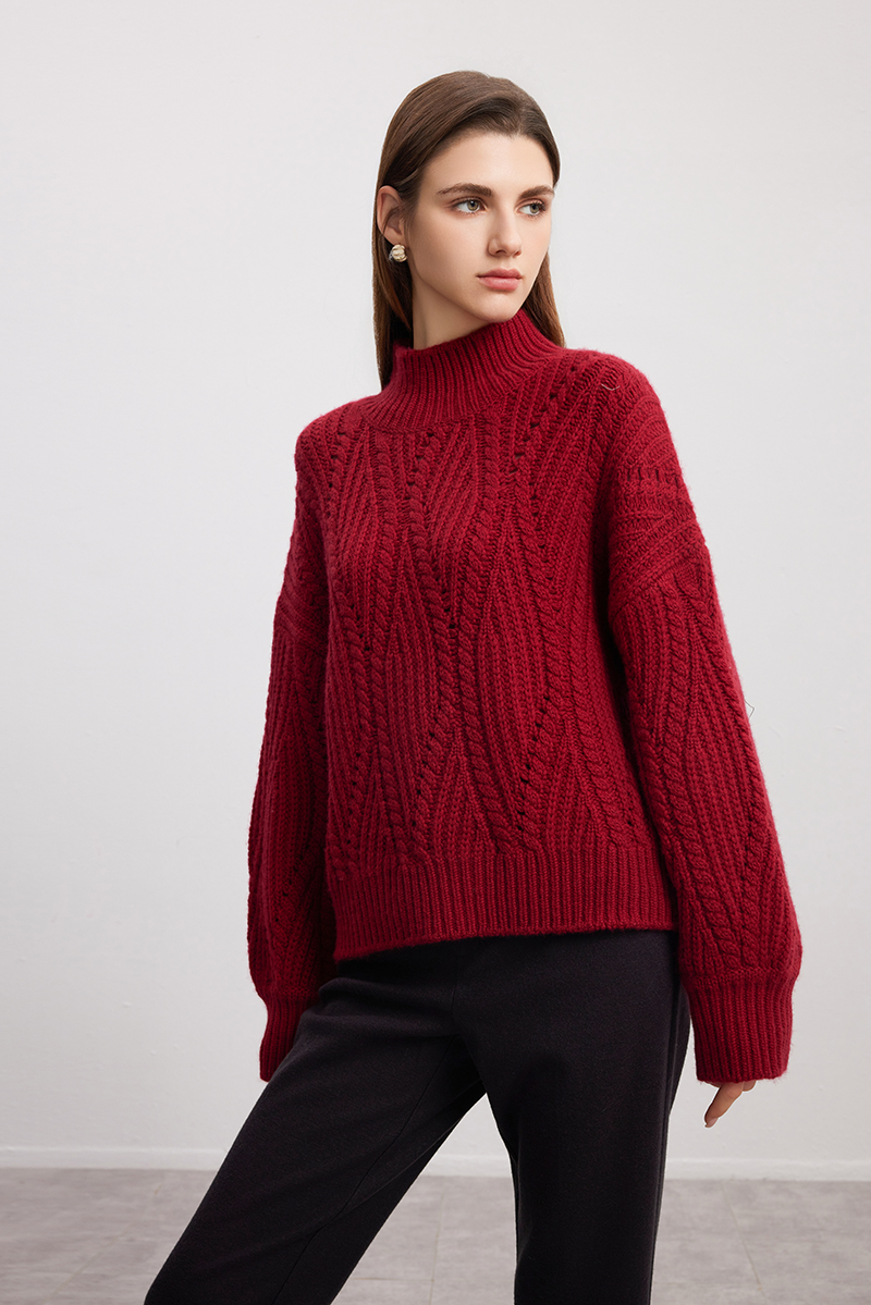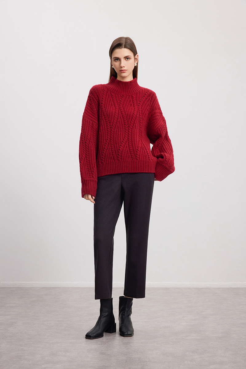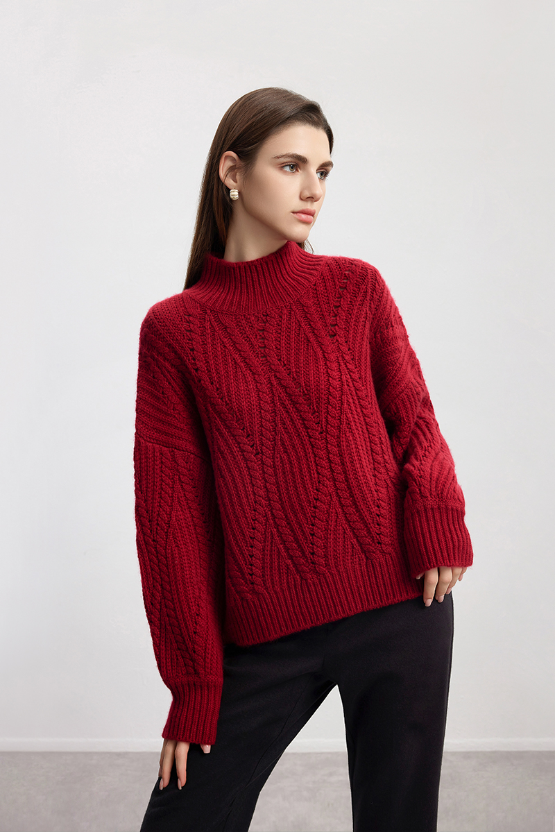 【半高领粗棒针羊绒衫】24年秋冬新品女士100%山羊绒内搭保暖毛衣
