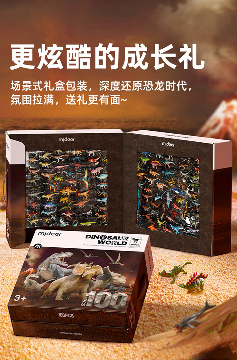 mideer弥鹿恐龙玩具男孩100只套装仿真霸王龙世界礼盒模型手办