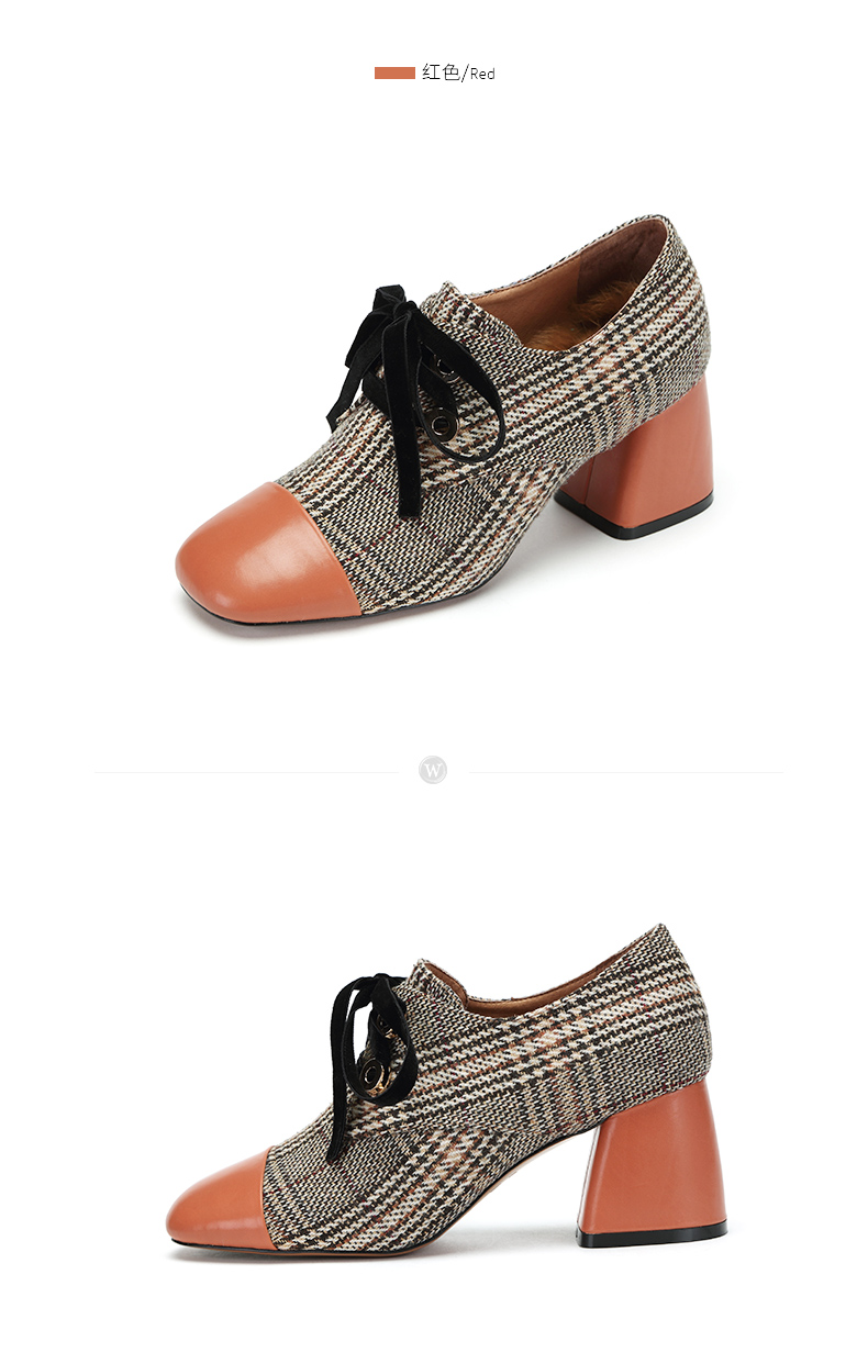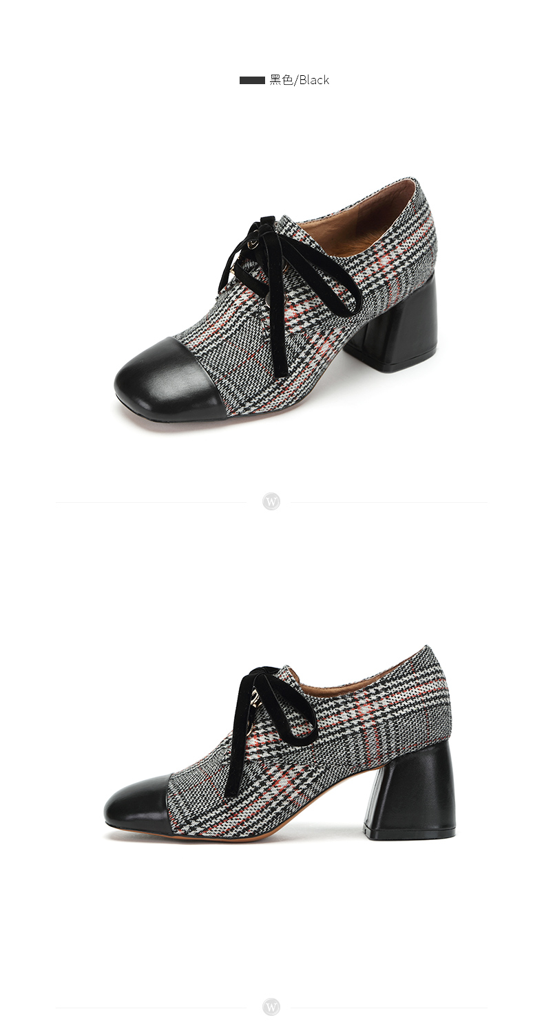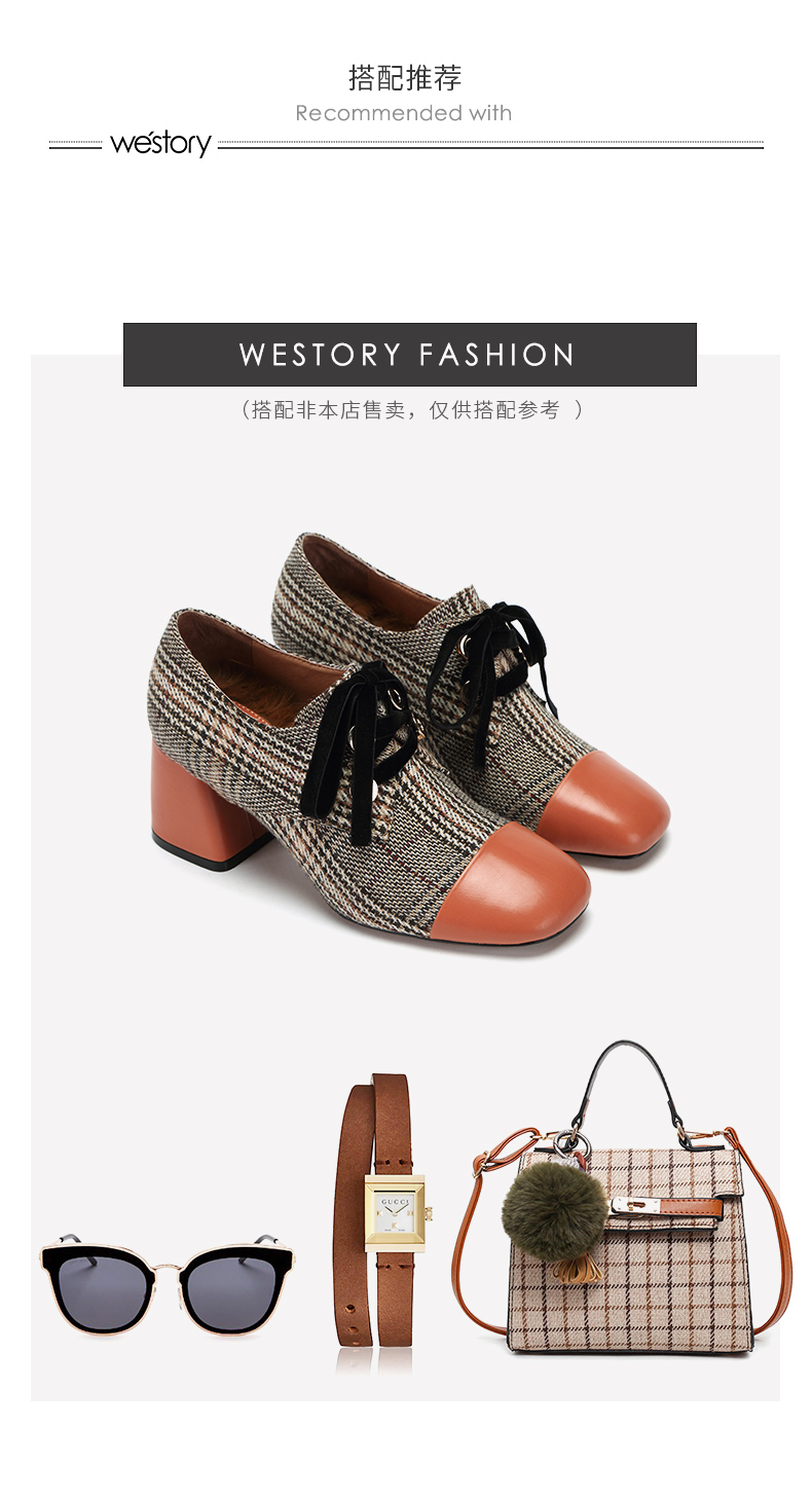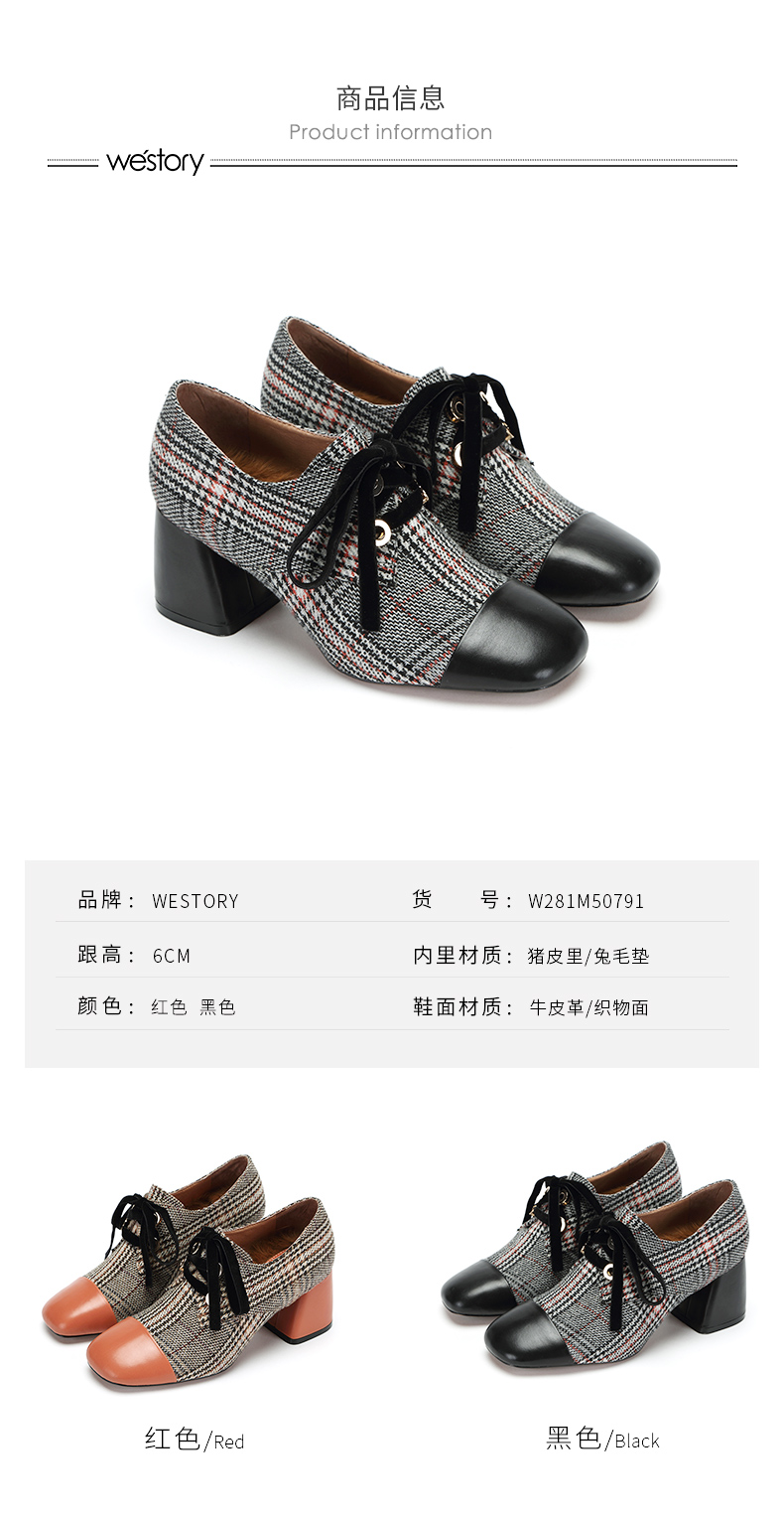 westory商场同款春季新款单鞋女方根女鞋格子布高跟鞋女W281M50791