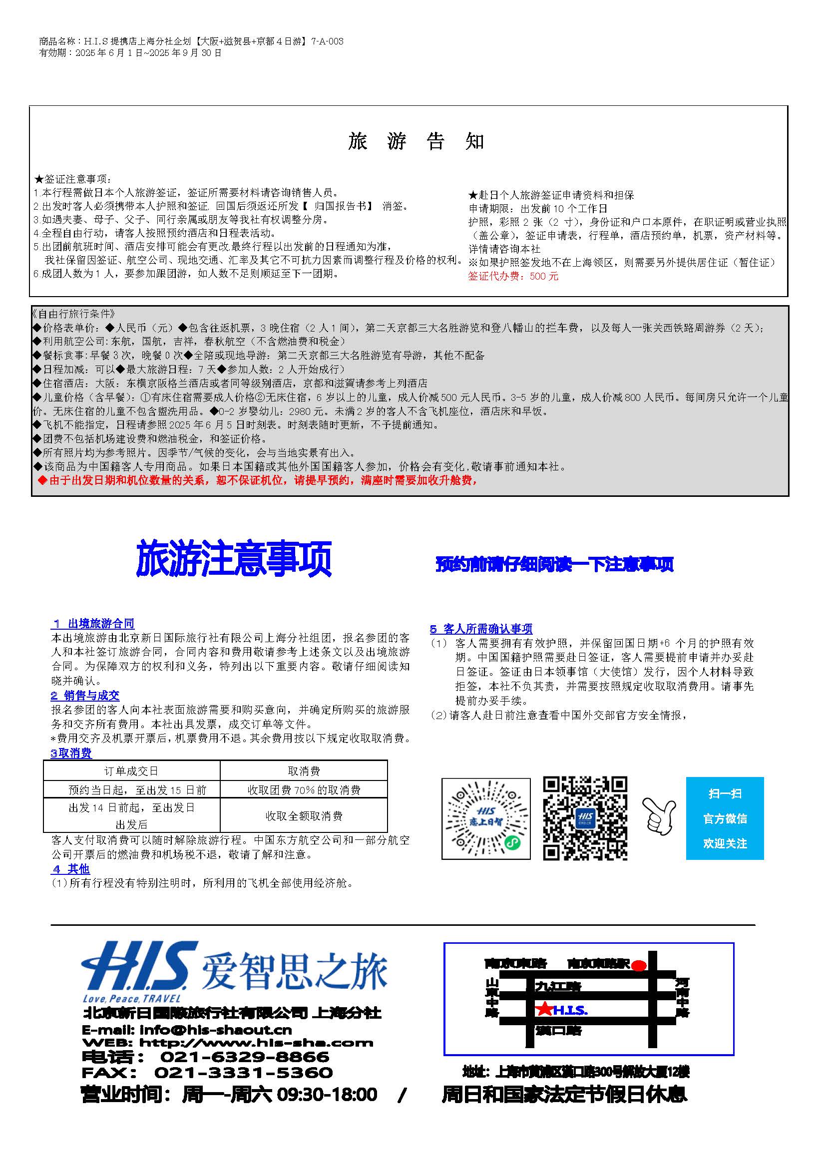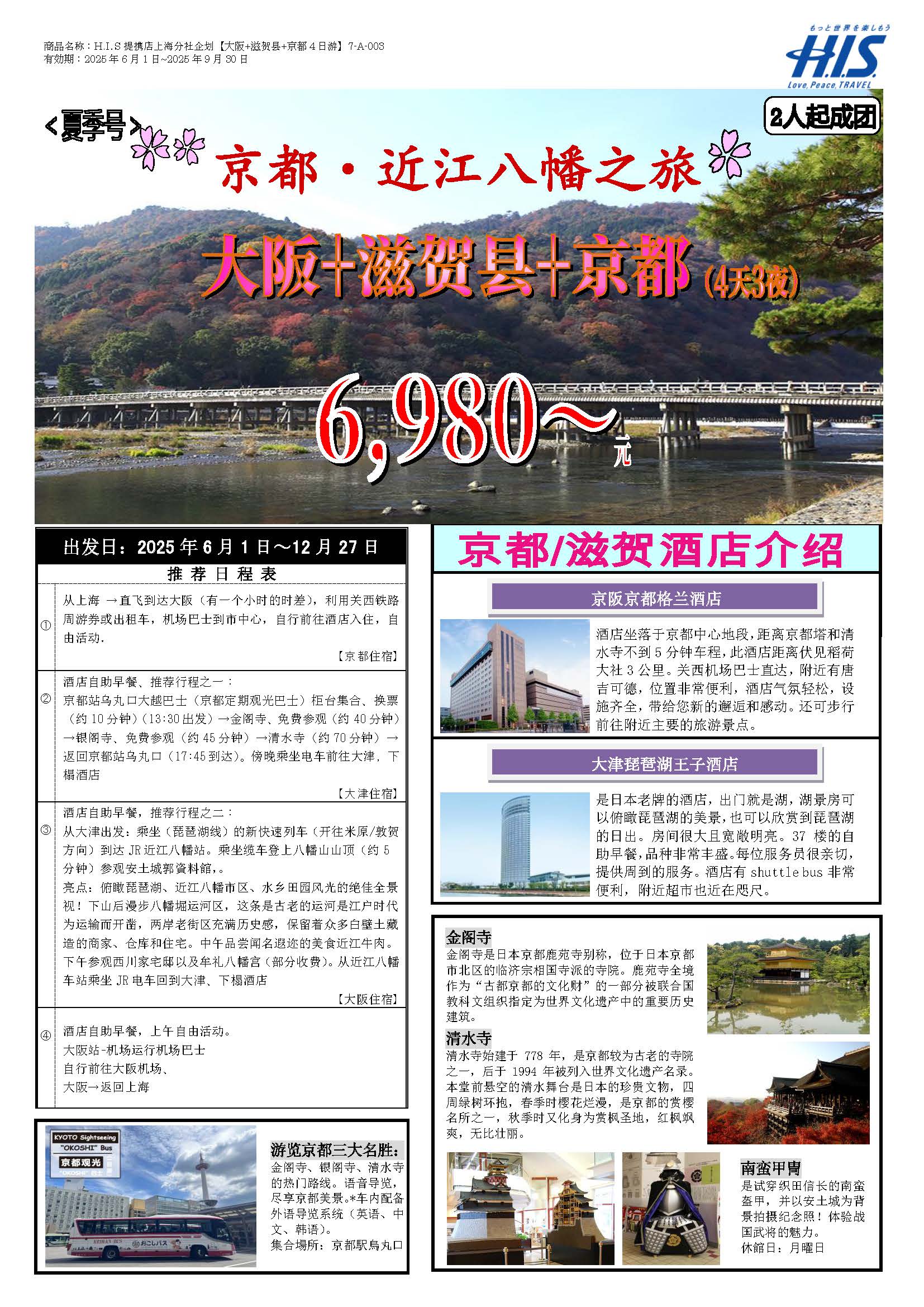 大阪滋贺县京都 自由行3晚4天 2人成团