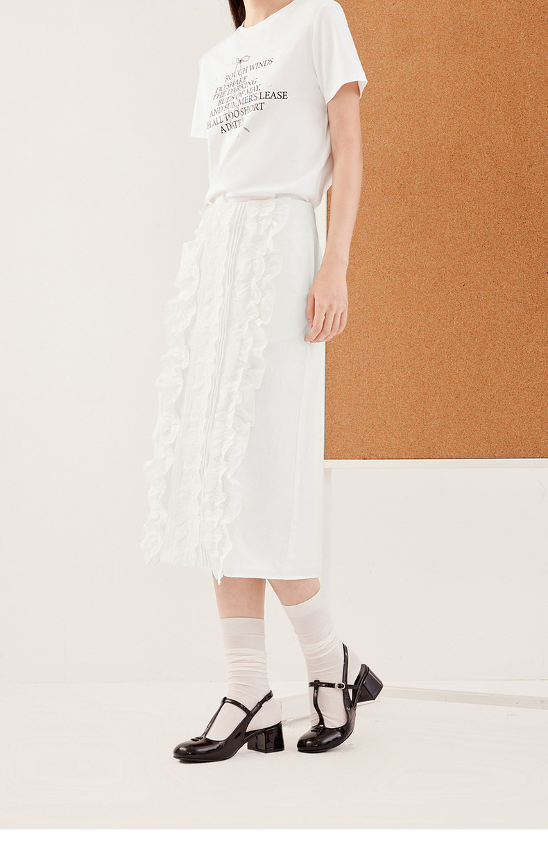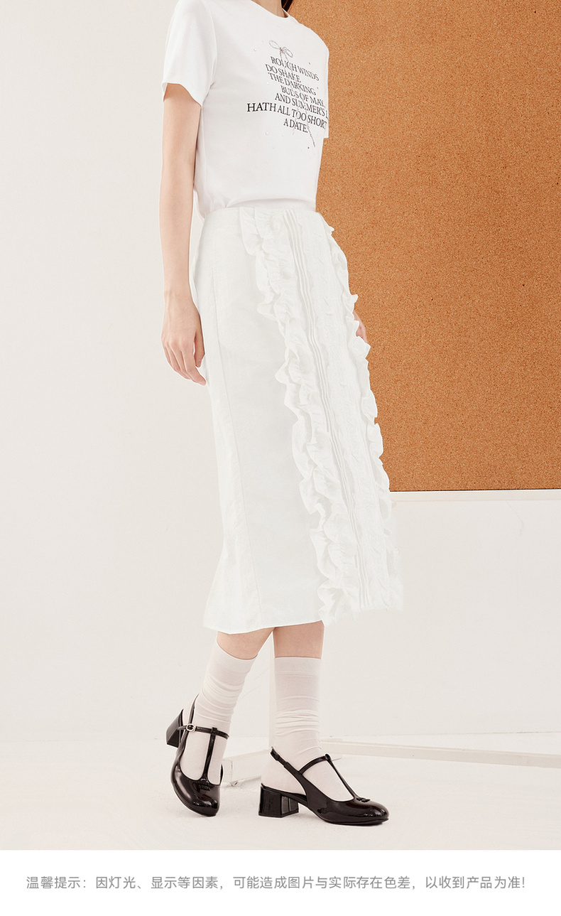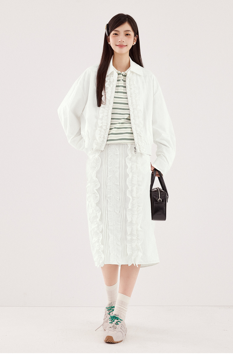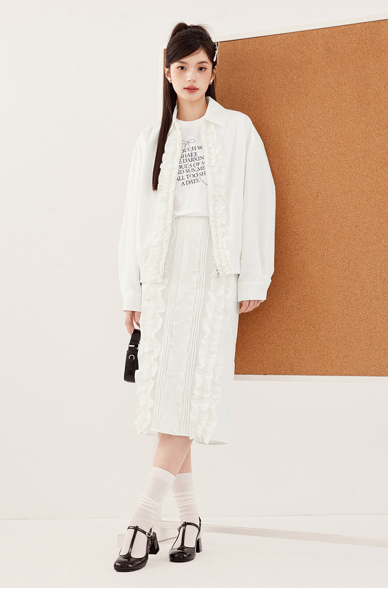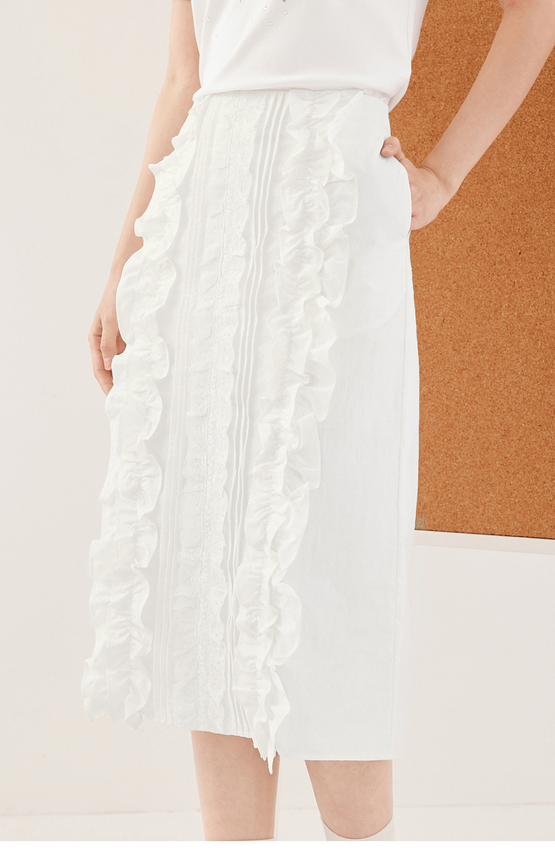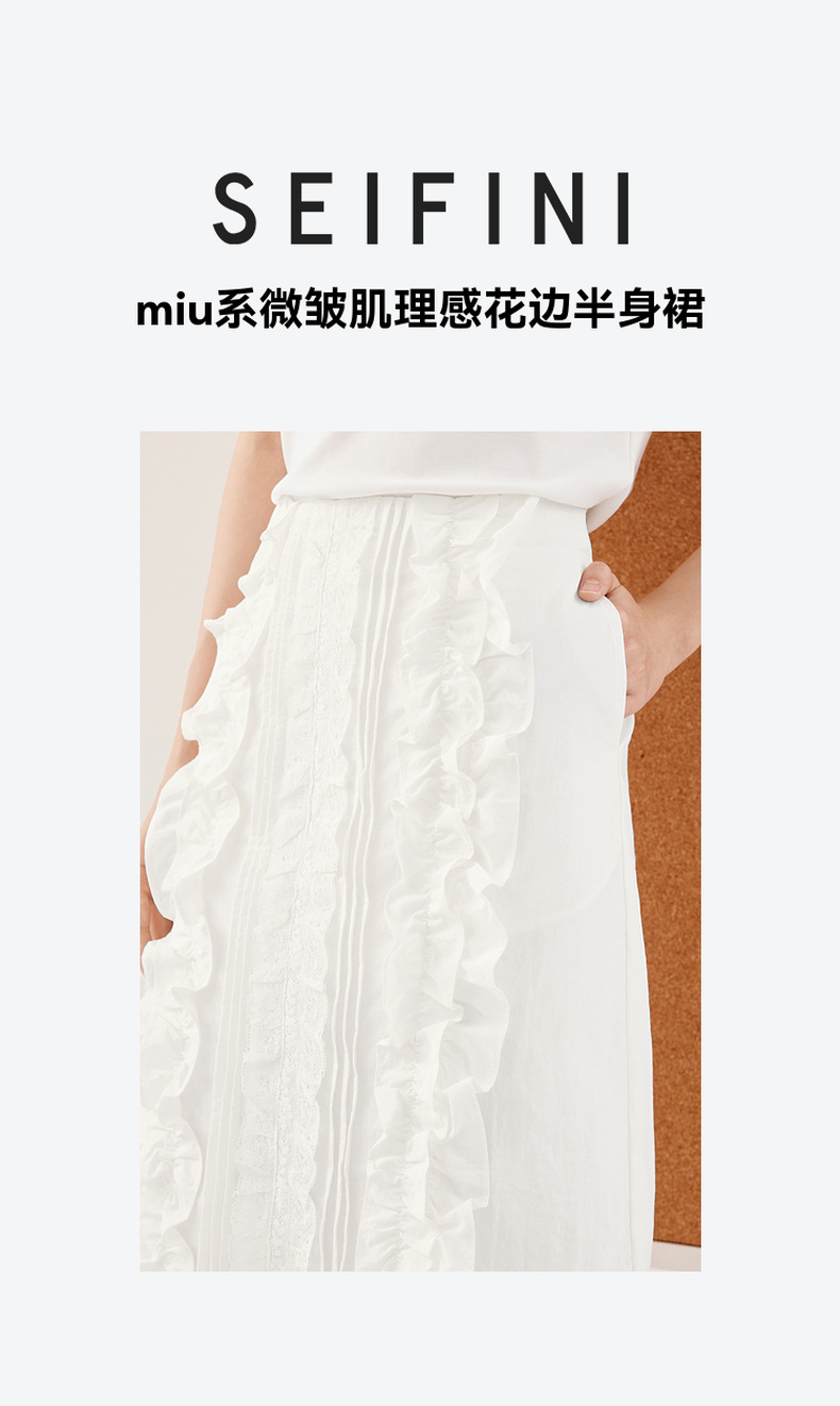 【严选】诗凡黎miu系纯白肌理感花边半身裙2024秋新款设计感时髦气质半裙7F7340071