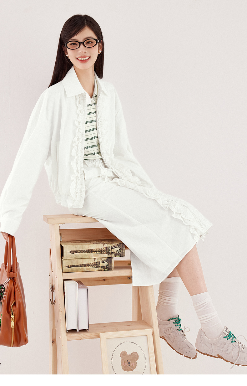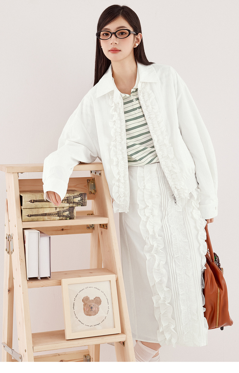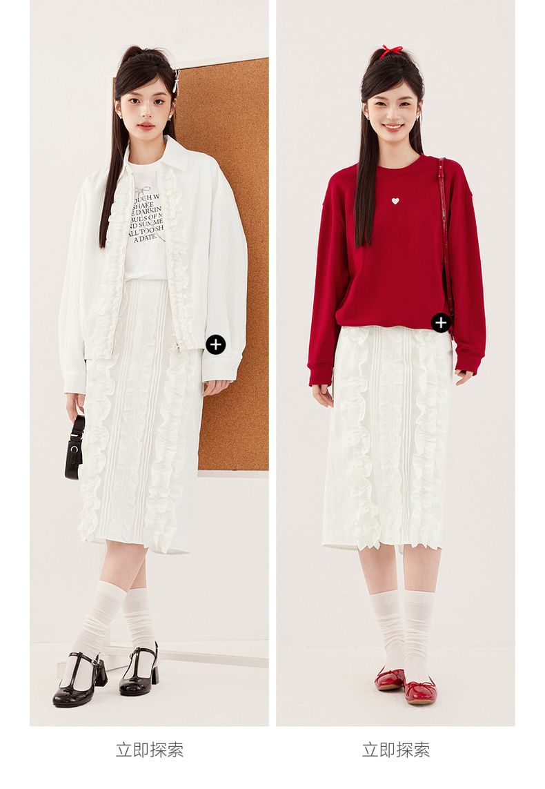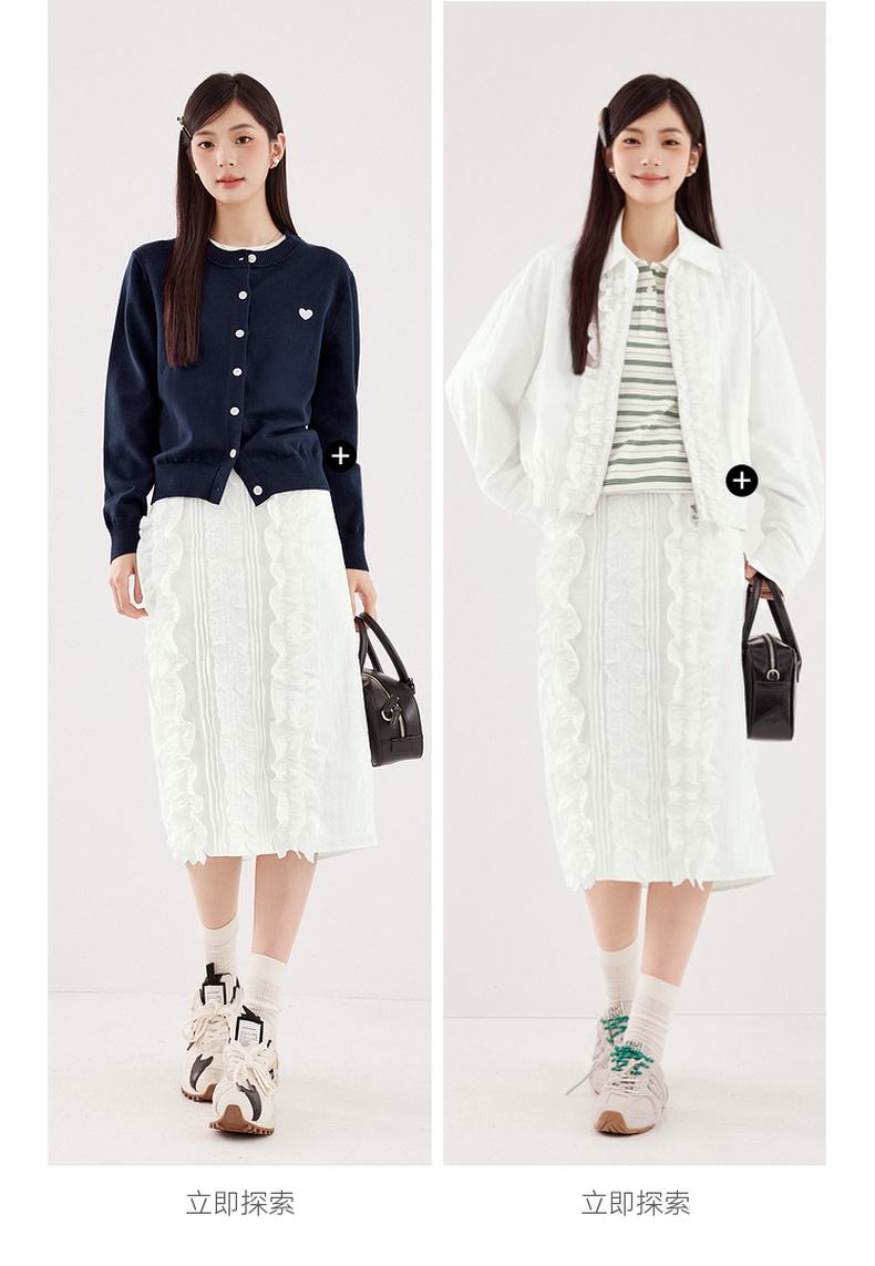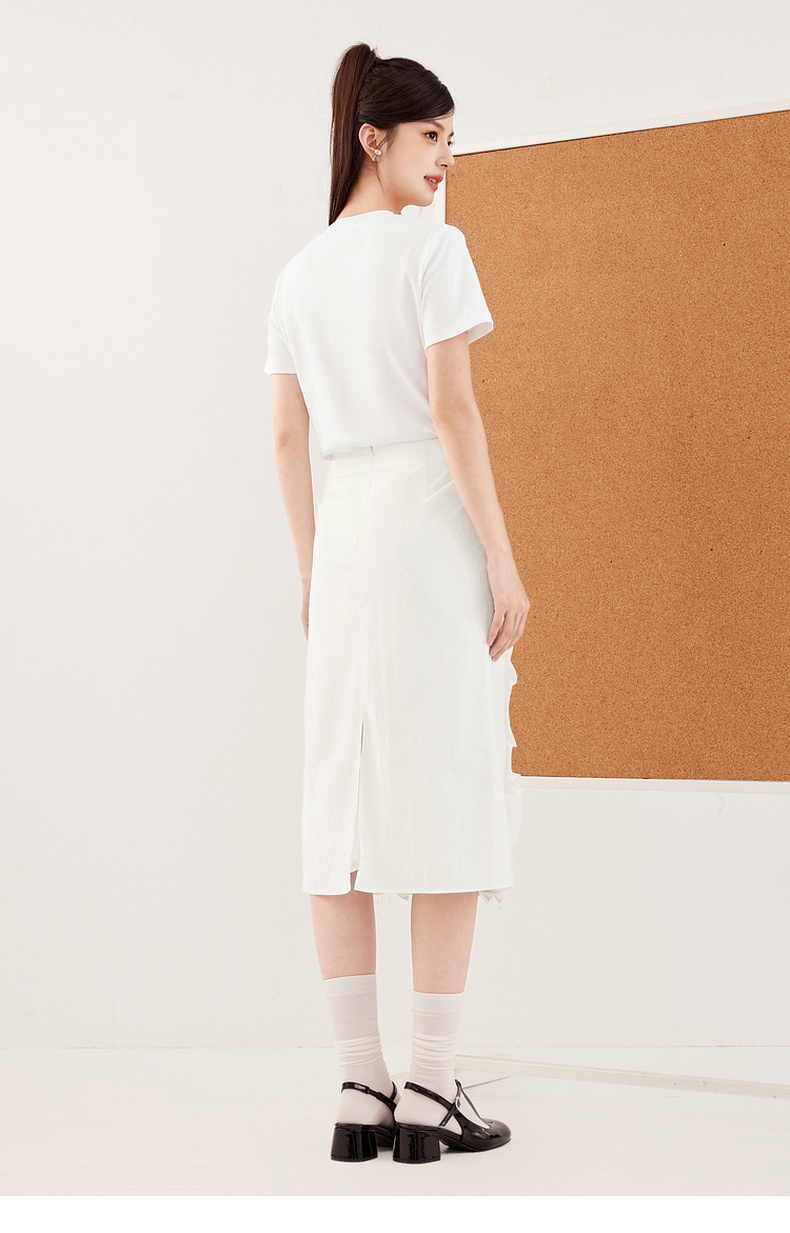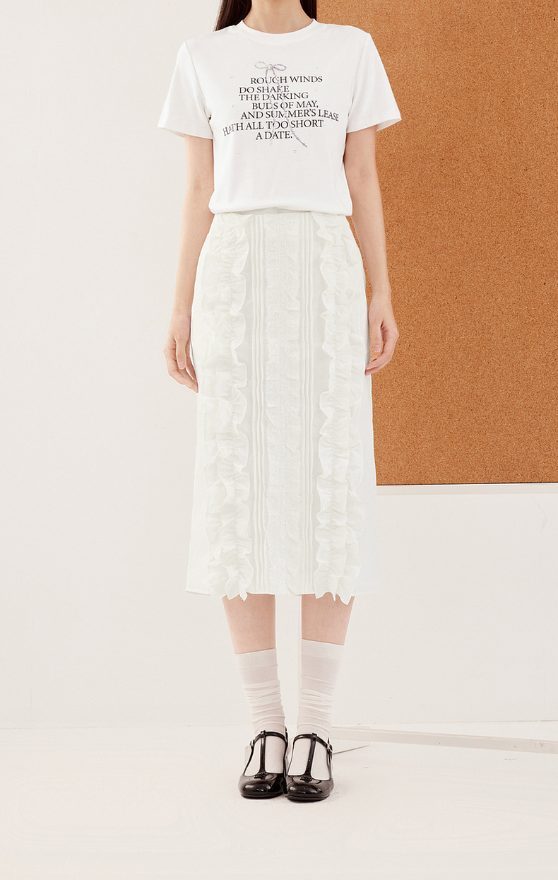 【严选】诗凡黎miu系纯白肌理感花边半身裙2024秋新款设计感时髦气质半裙7F7340071