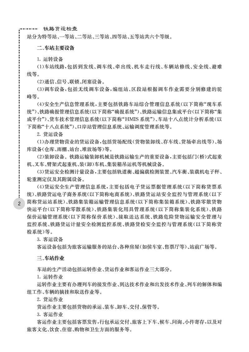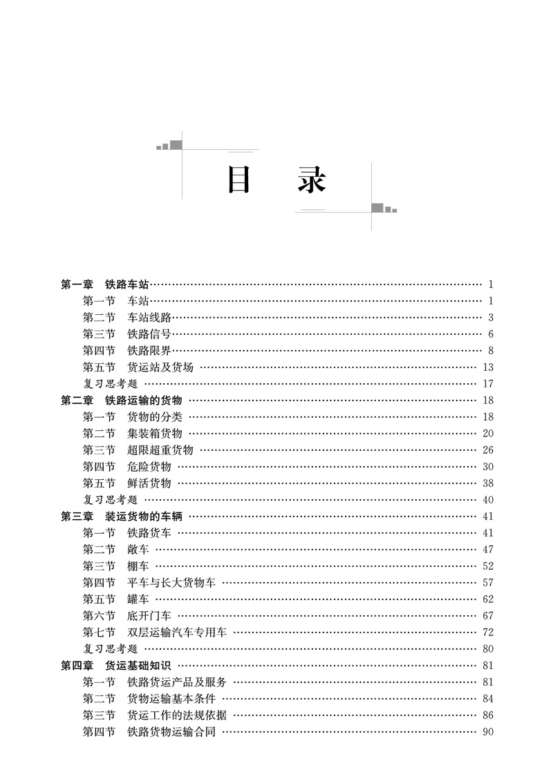 本书主要内容包括:铁路车站、铁路运输的货物、装运货物的车辆、货运基础知识、货物装载加固、货运检查站、货运交接检查、货检安全工作、货物(车)交接检查、应急处置等。