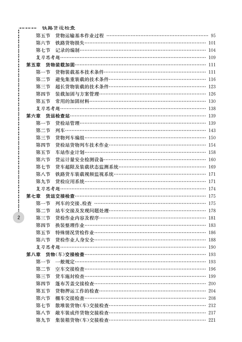 本书是高等职业教育铁道交通运营管理专业教材,依据高等职业学校铁道运输专业人才培养方案和“铁路货运检查”课程标准编写。按照货运员中/高级工/技师标准构建,以岗位技能为核心,遵循“知识够用、技能服务”的原则,在反映铁路运输行业的新设备、新技术、新工艺及新规章的同时,重点突出货检实作技能和应急处置工作,具有很强的实用性。
