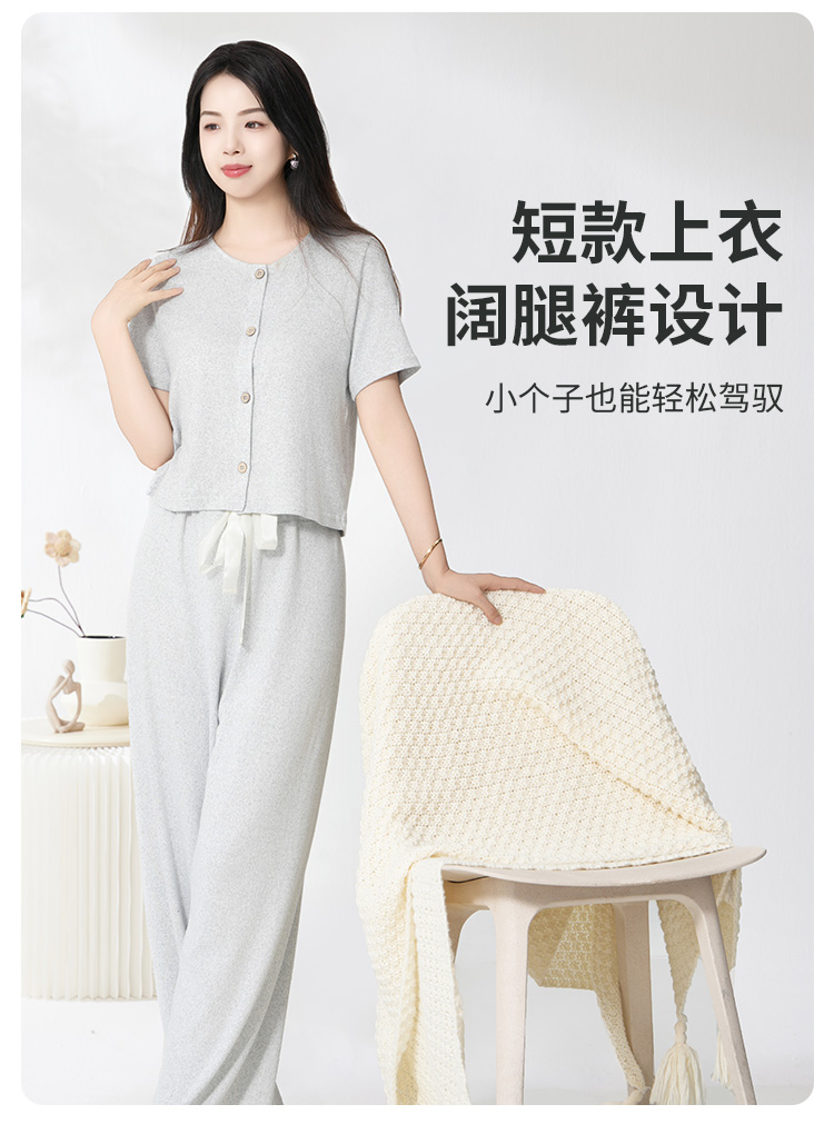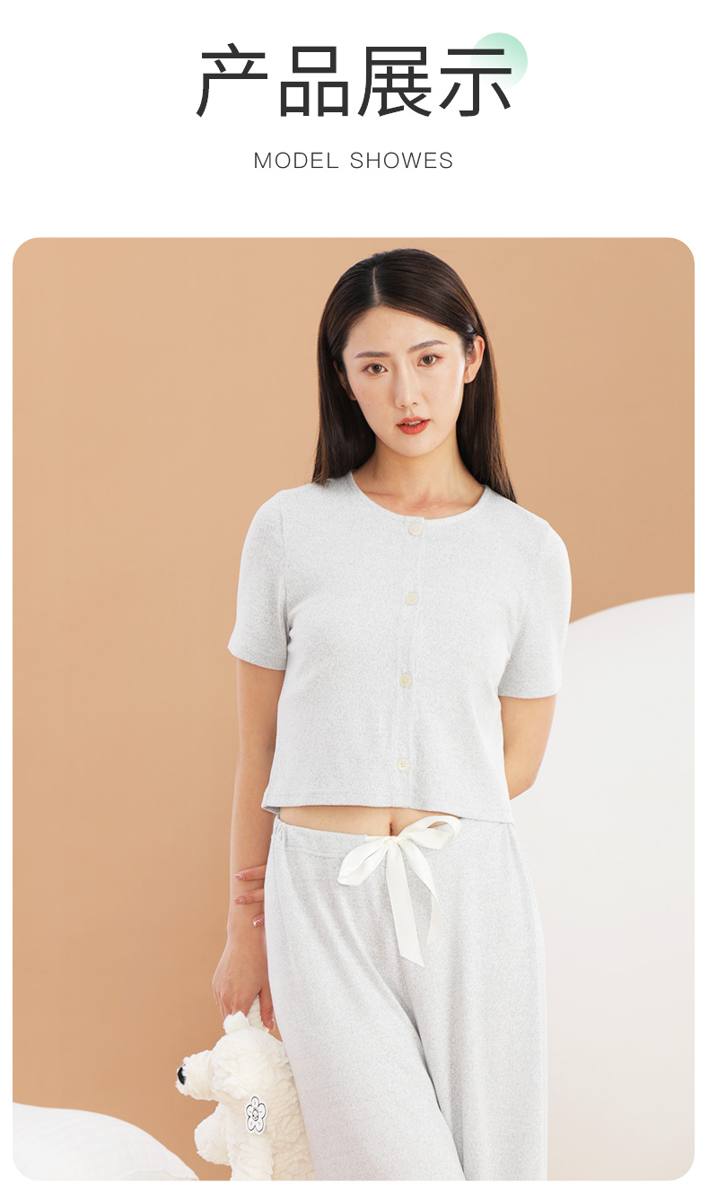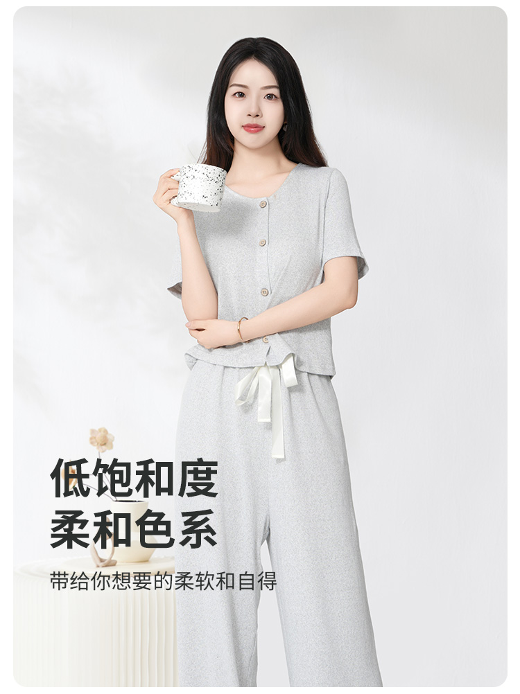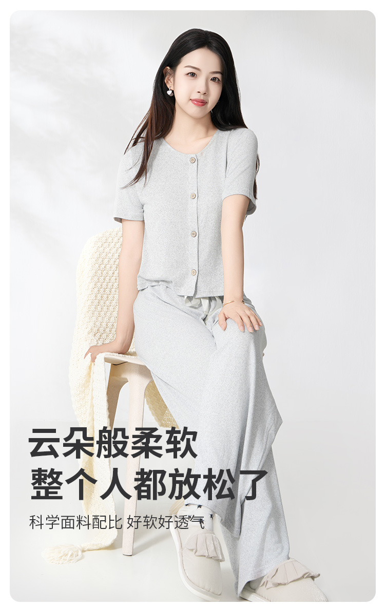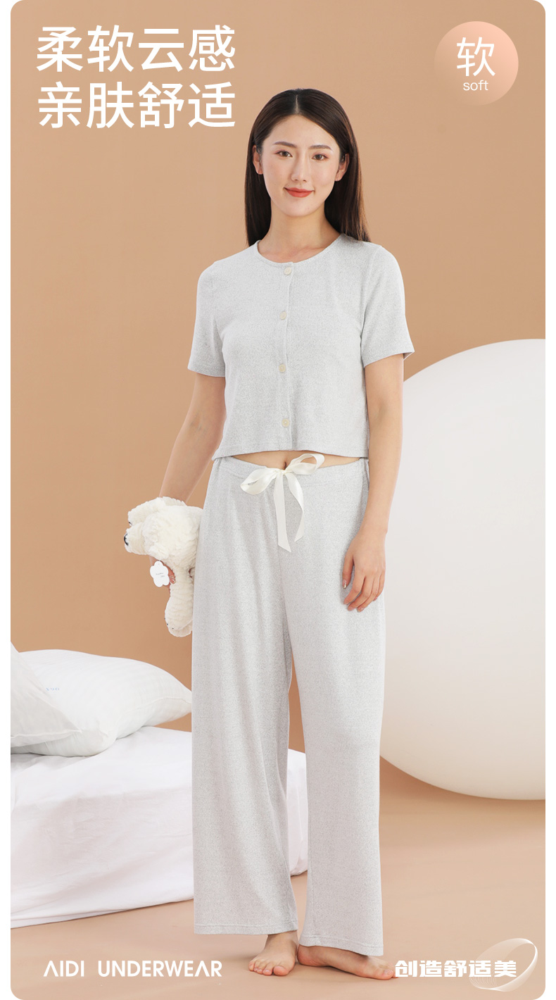 爱帝云感软糯亲肤文艺花纱短袖长裤套装