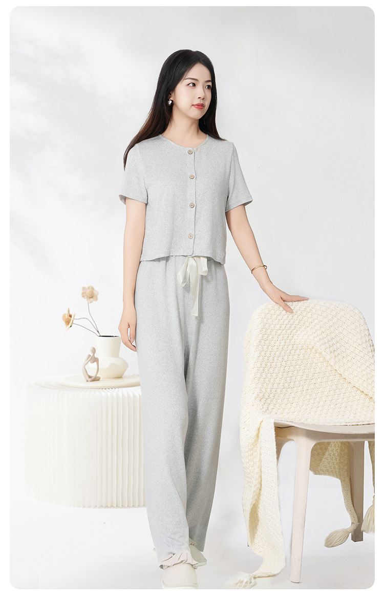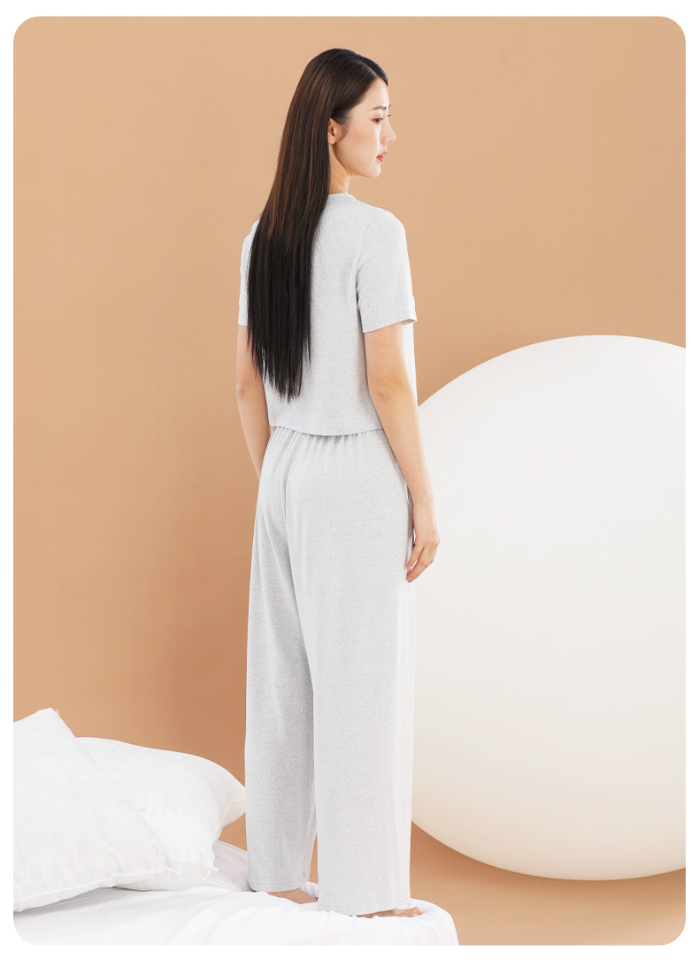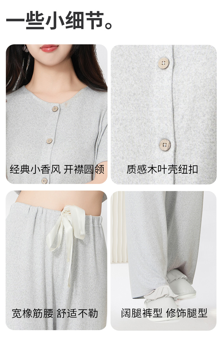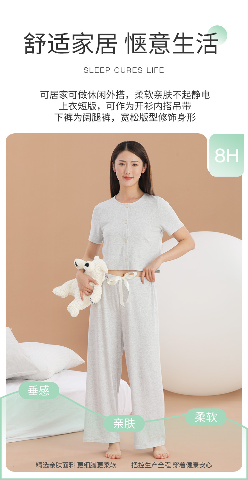 爱帝云感软糯亲肤文艺花纱短袖长裤套装