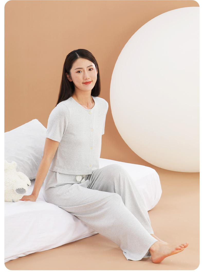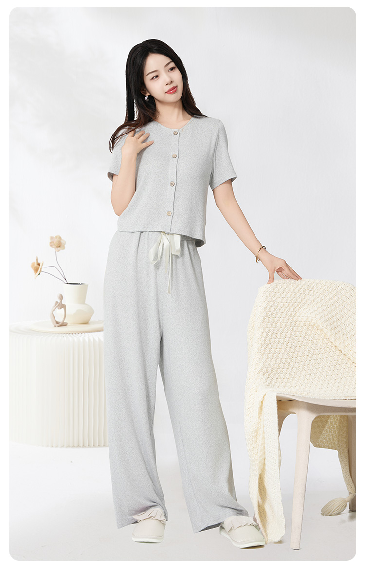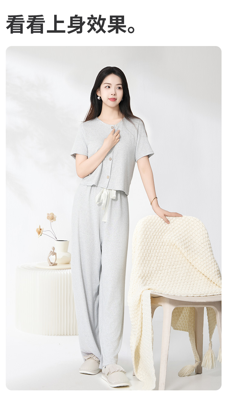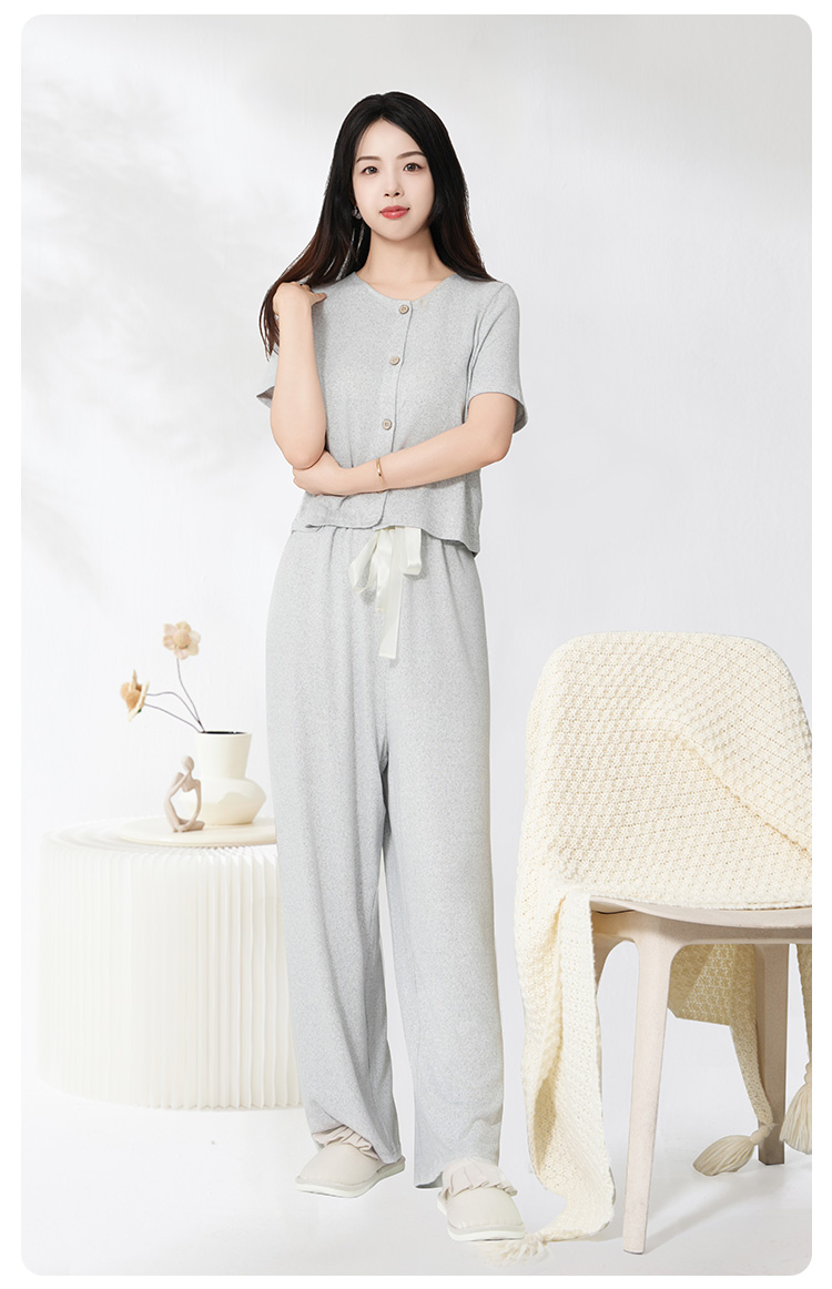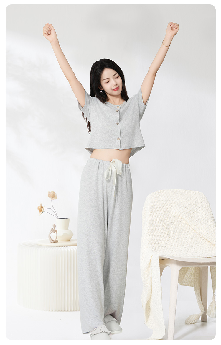 爱帝云感软糯亲肤文艺花纱短袖长裤套装