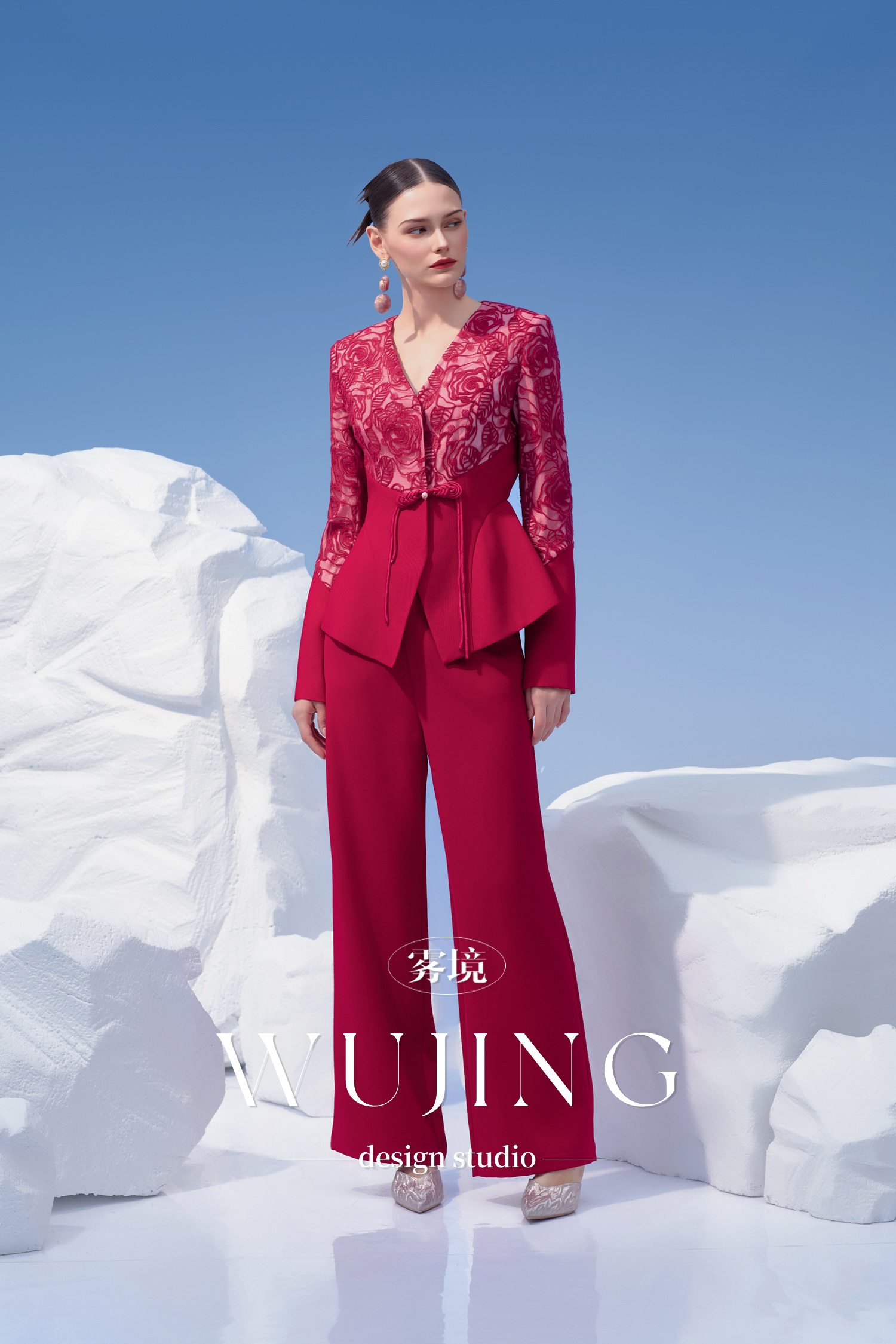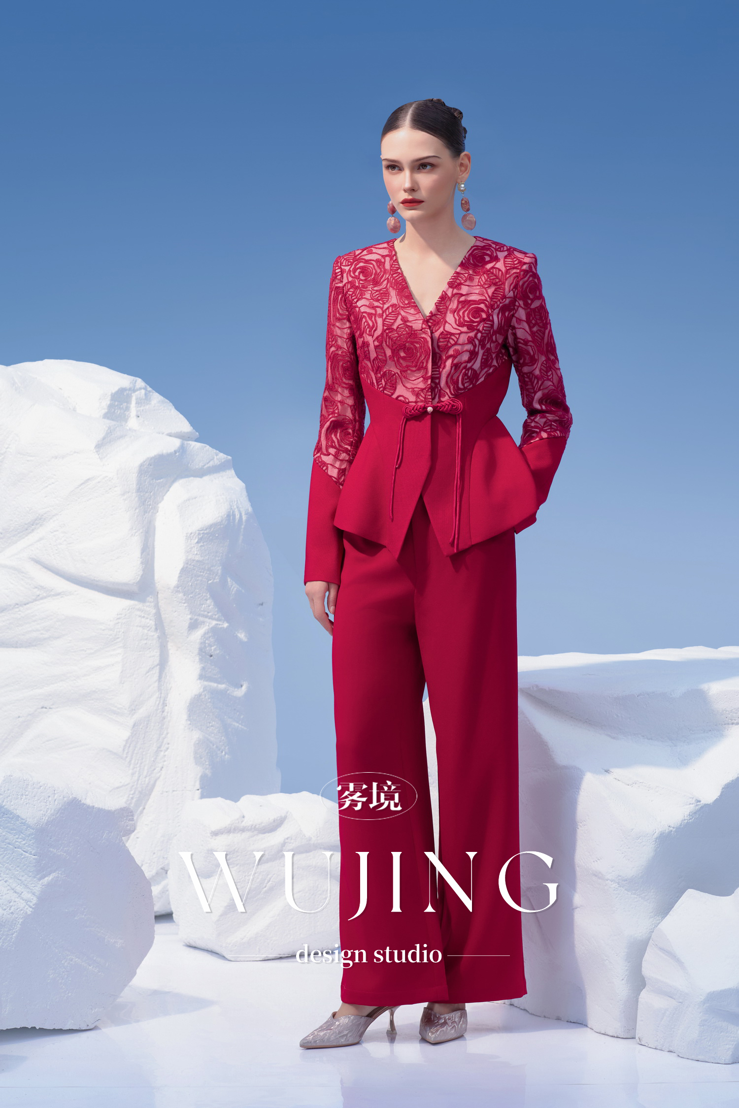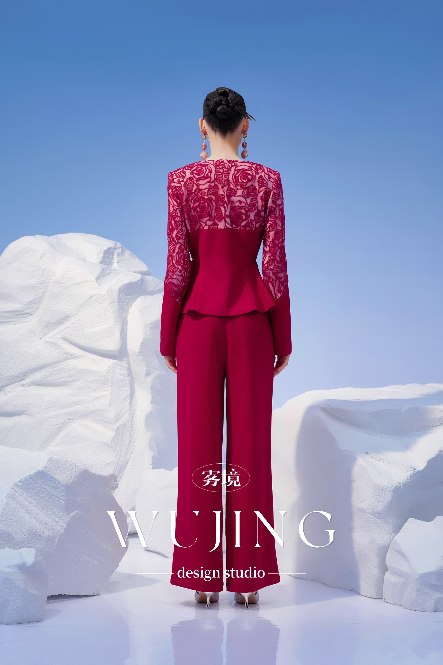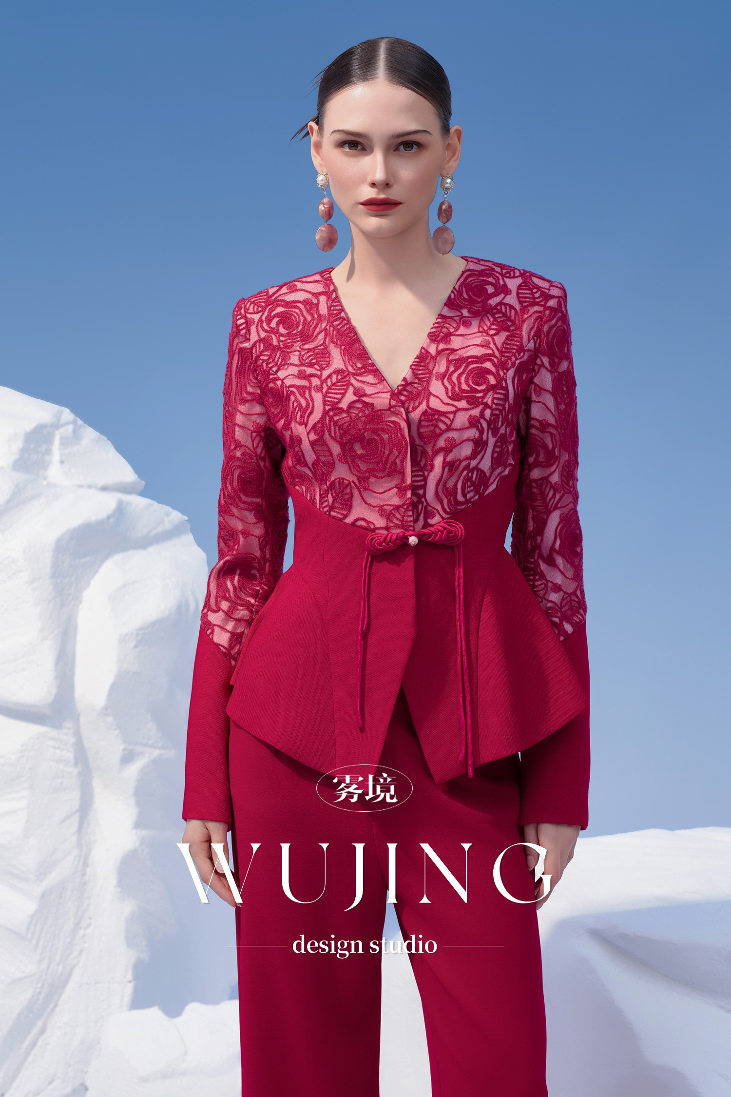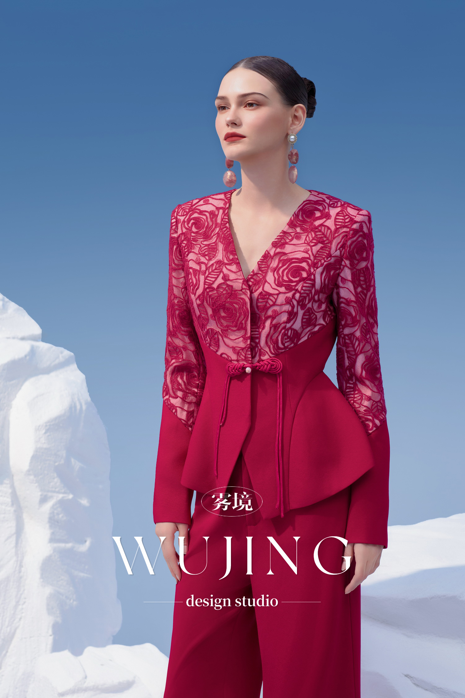 4202010 馥郁芳盈 进口醋酸乱麻 立体绣花料外套 雾境