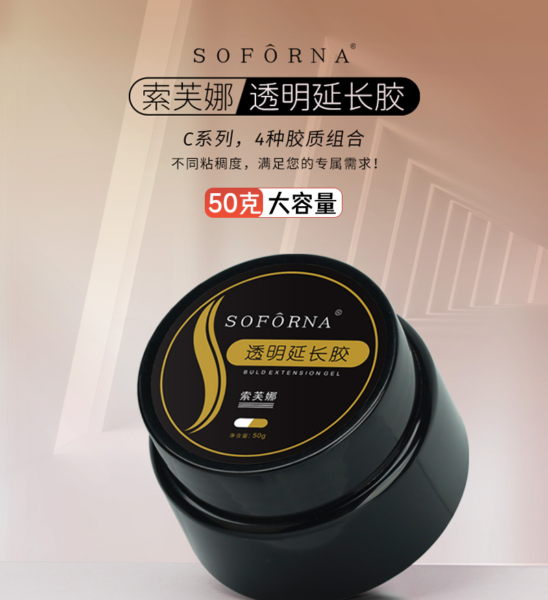 索芙娜C2/魅思冰透玻璃光疗延长胶 50克装(硬度指数高。流畅性好)9月起发黑色包装