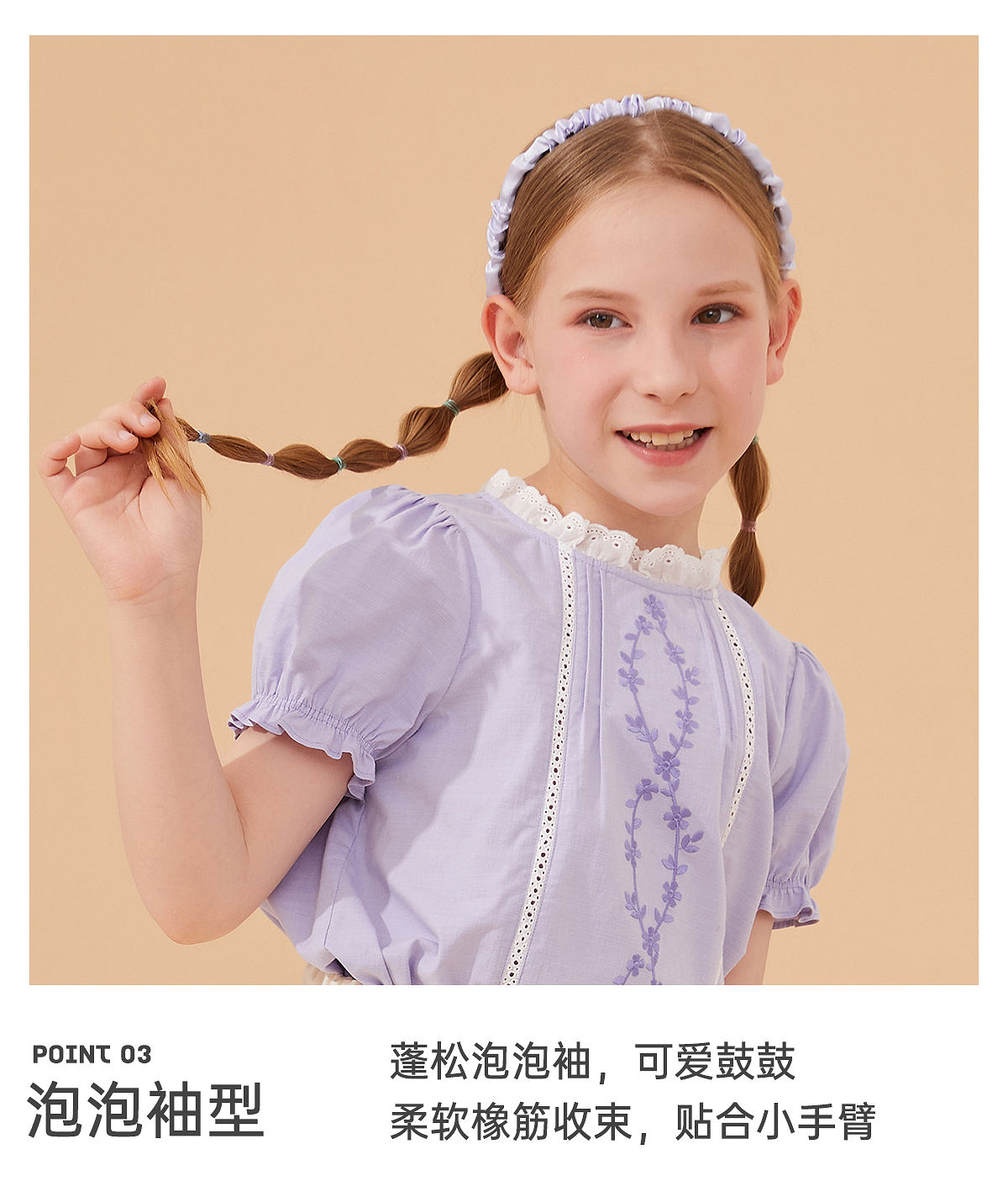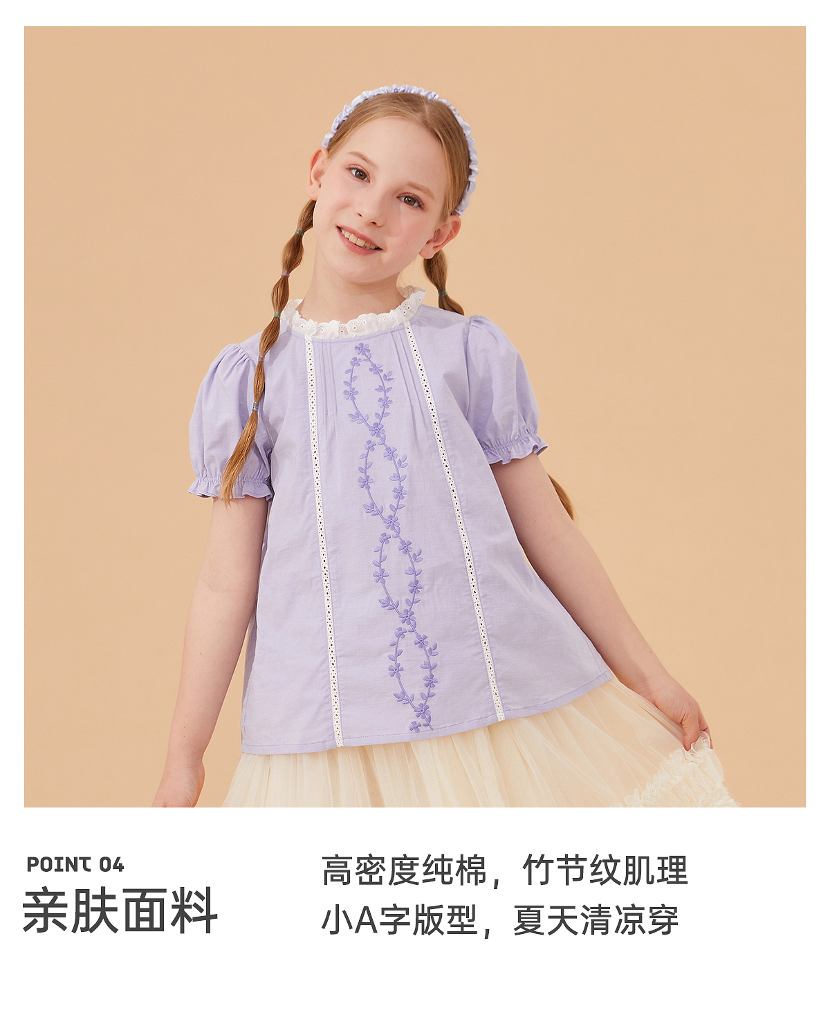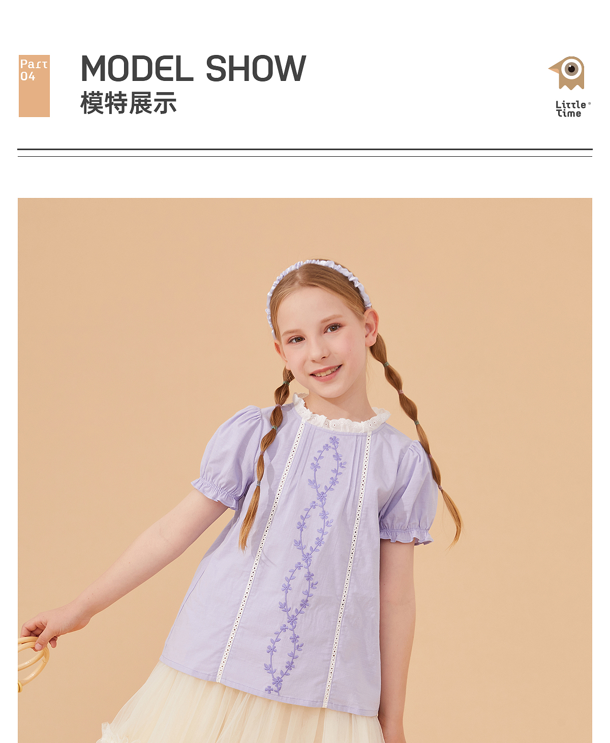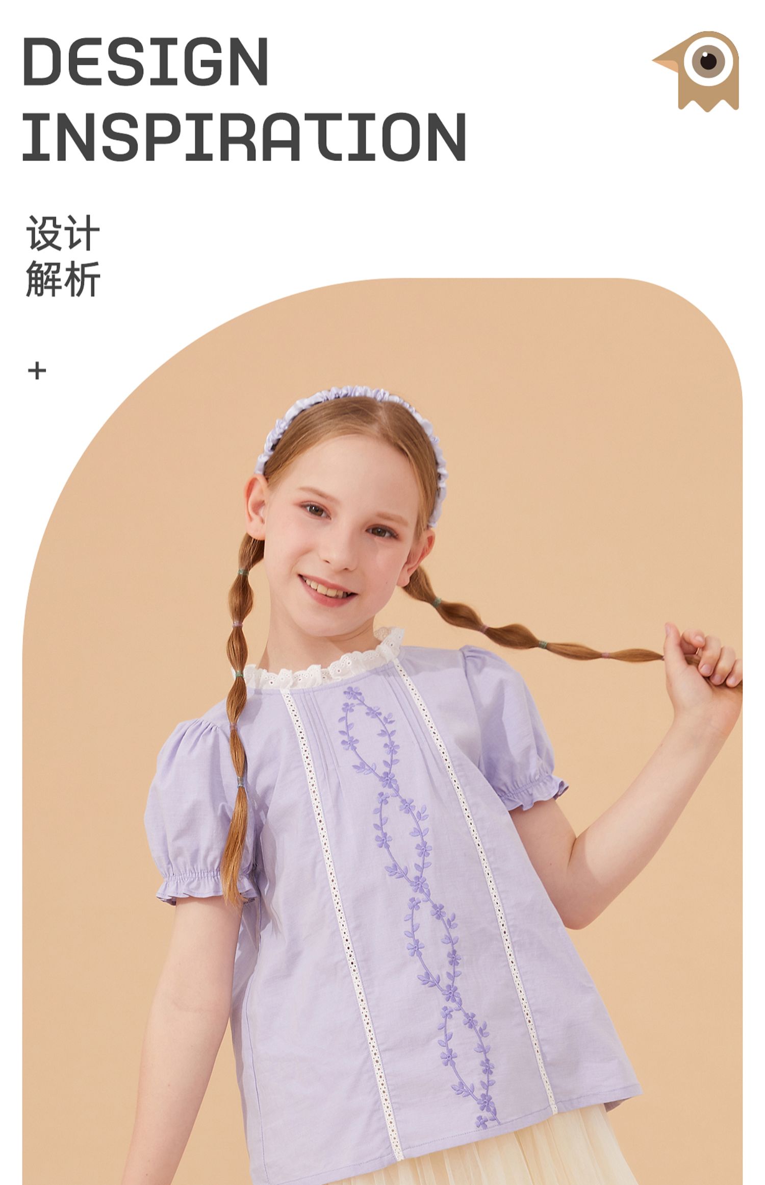 littletime女童纯棉绣花衬衫短袖2022夏季新款文艺中国风儿童上衣