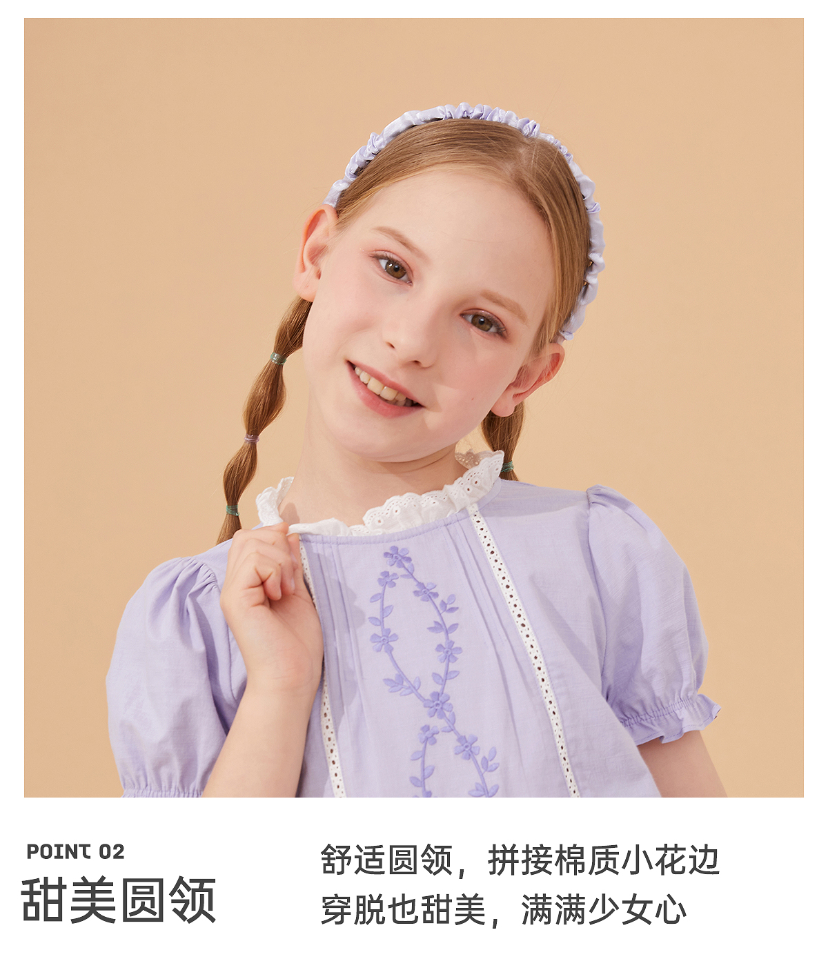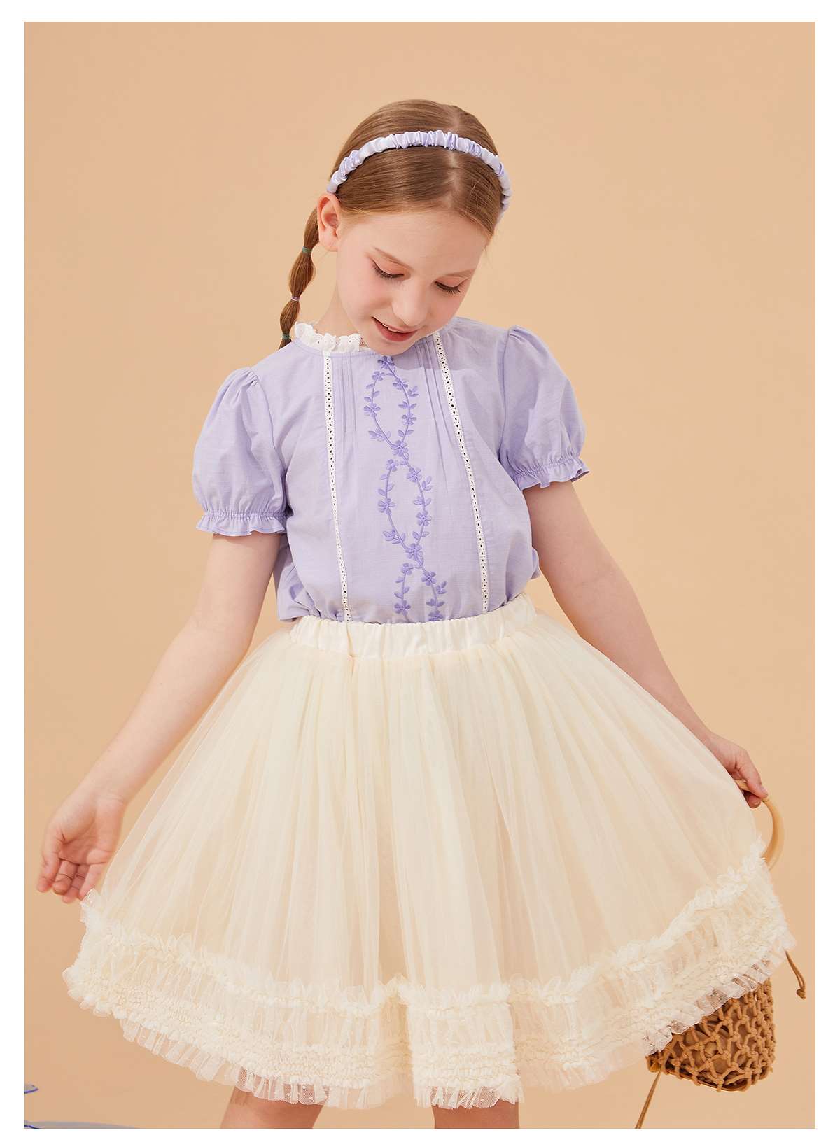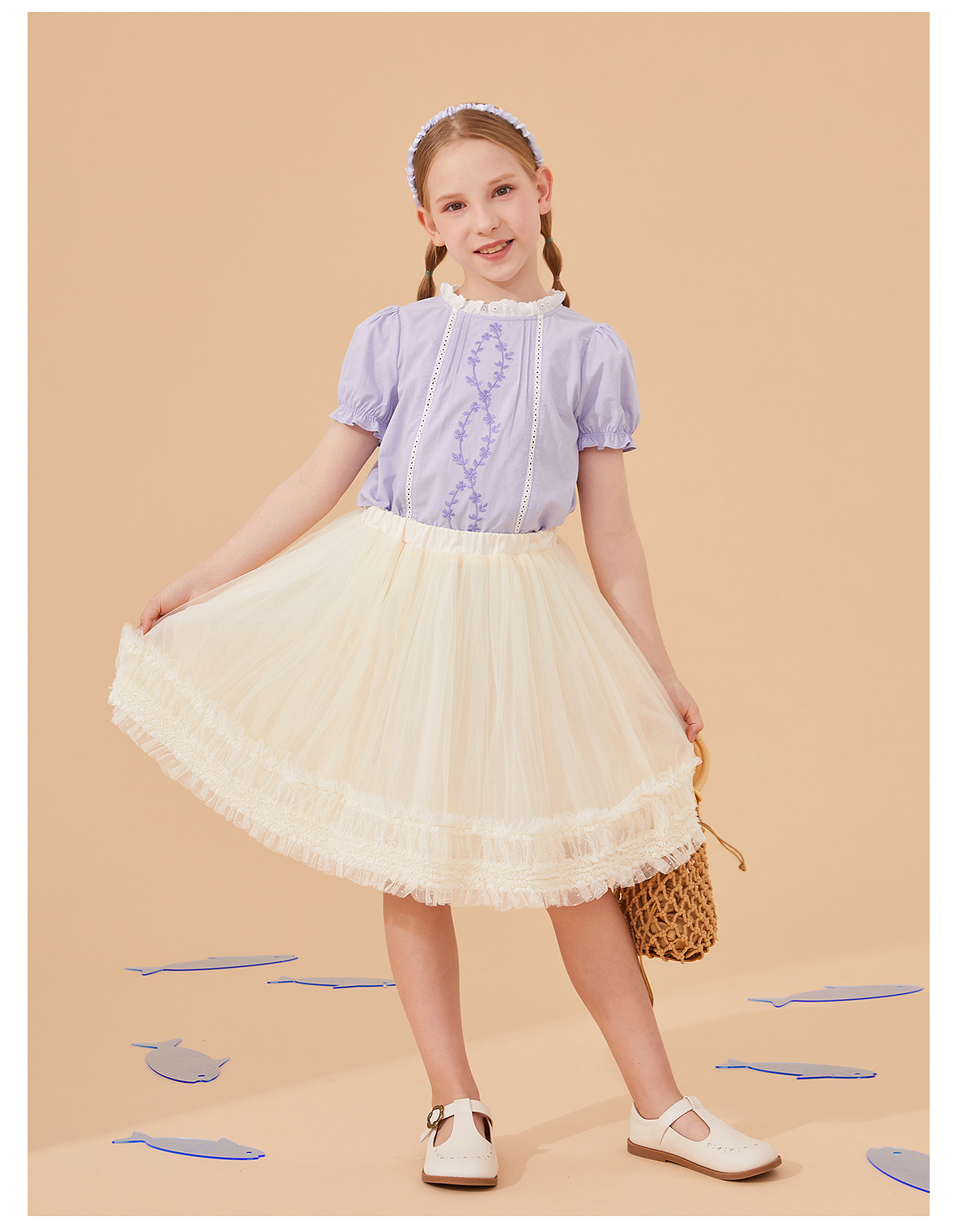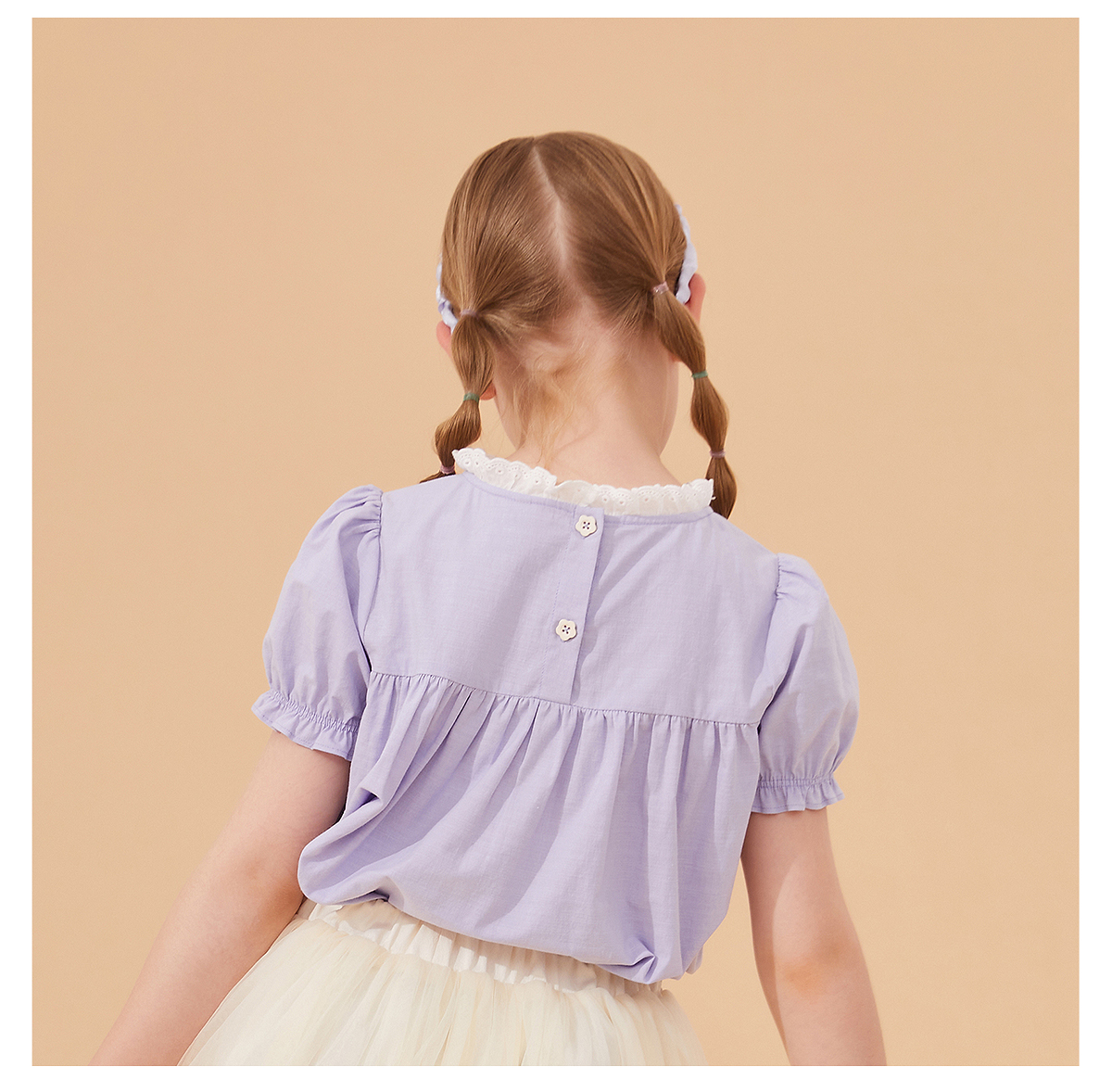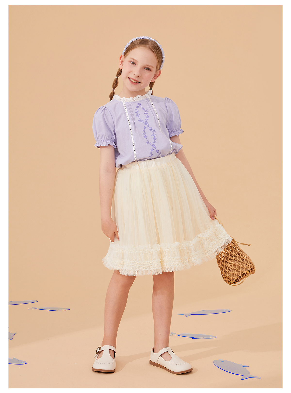 littletime女童纯棉绣花衬衫短袖2022夏季新款文艺中国风儿童上衣