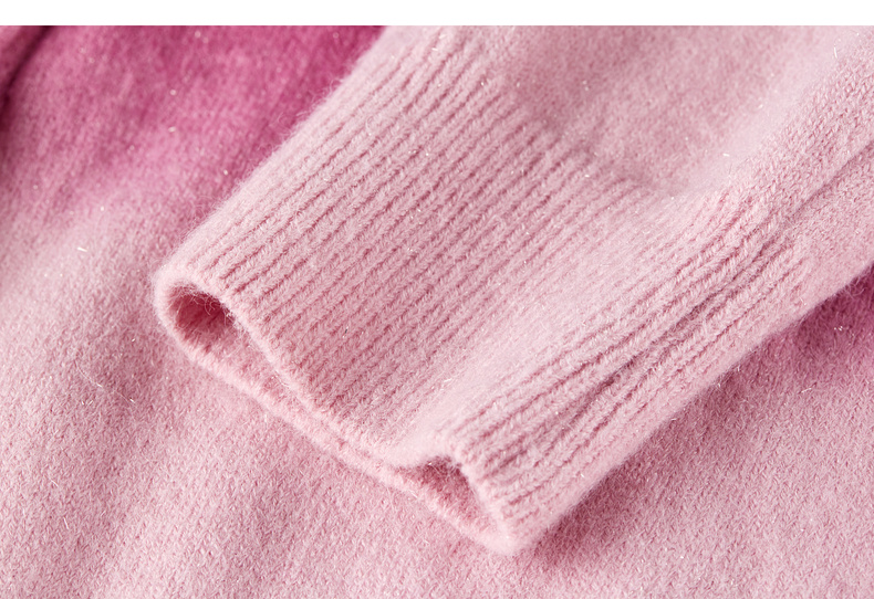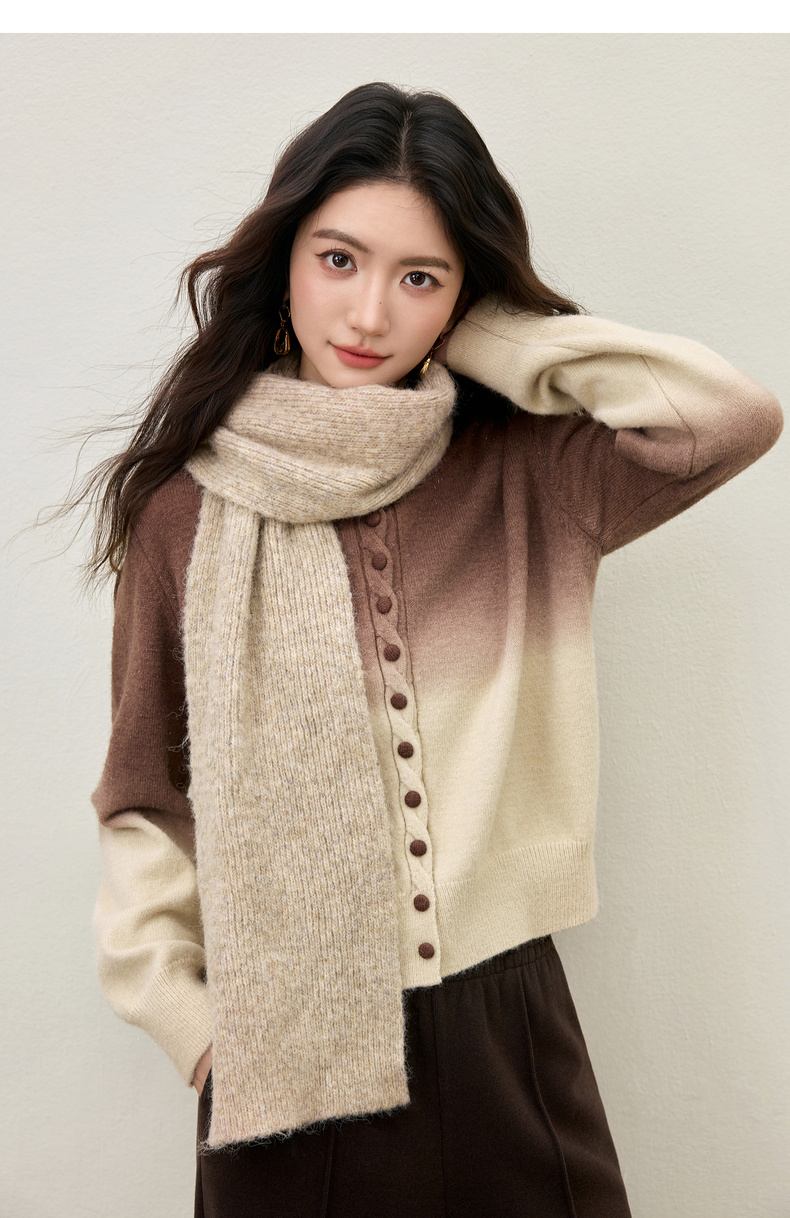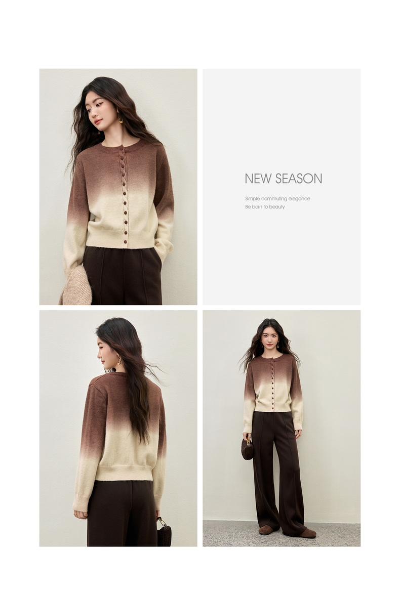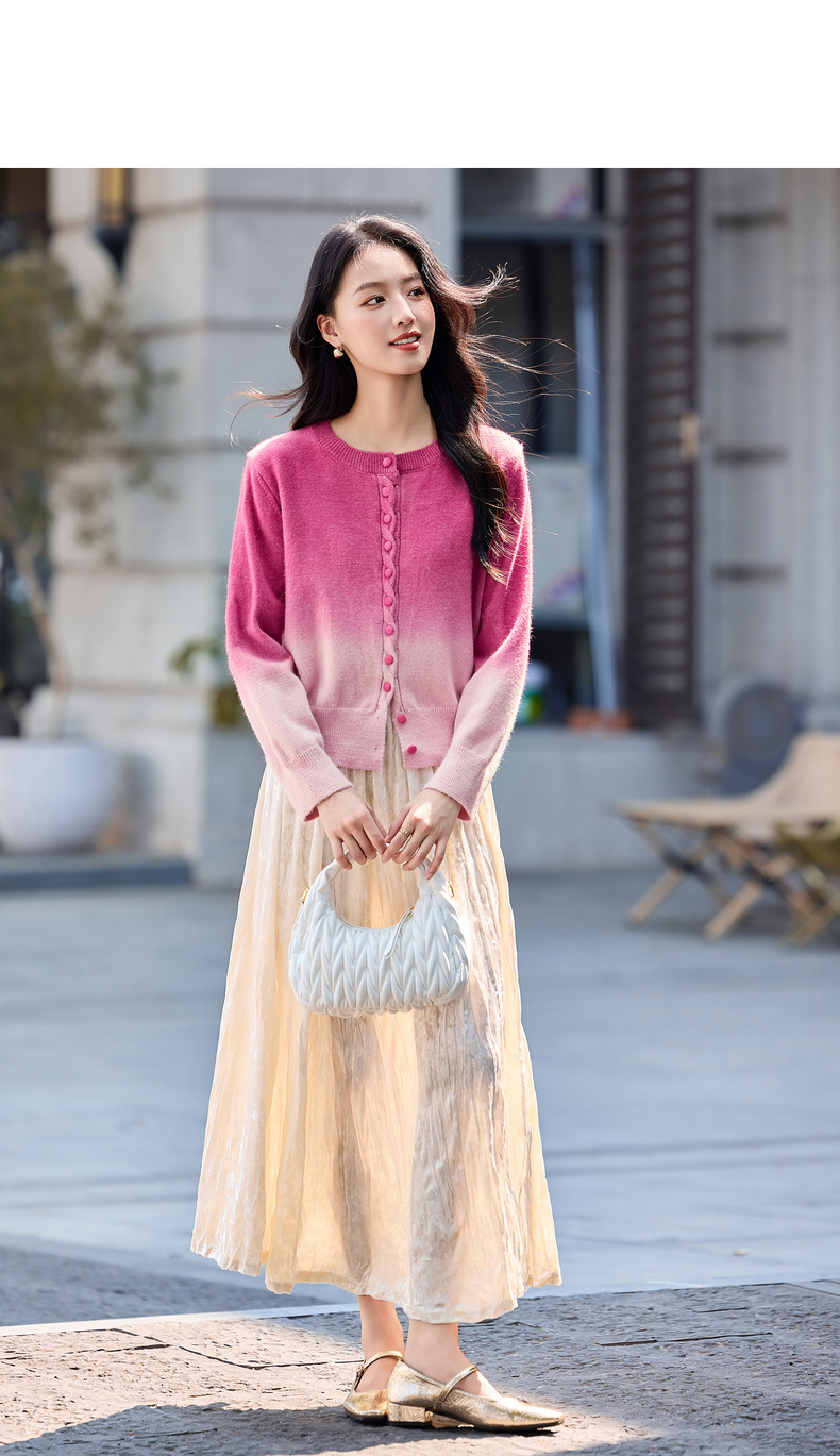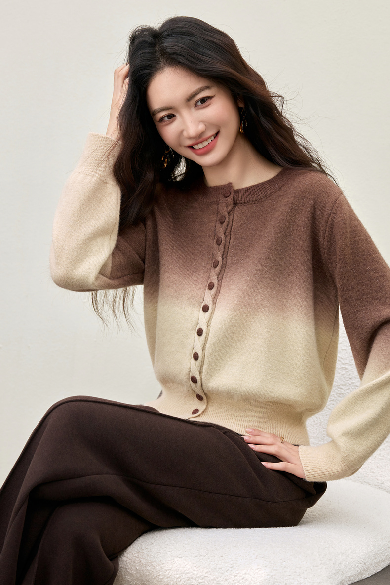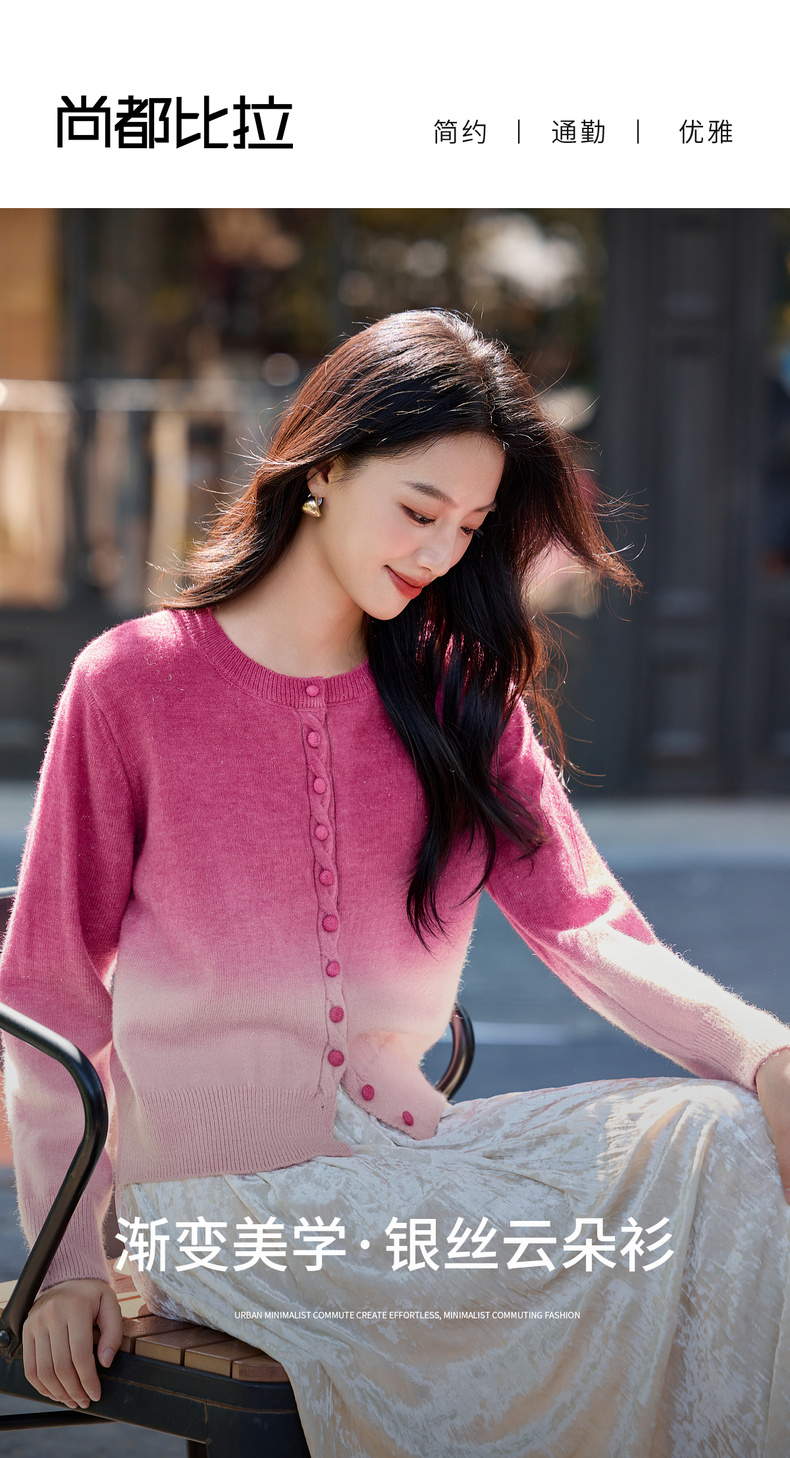 【内购】【梦幻渐变】时尚洋气圆领扭花门襟单排扣落肩短款银丝开衫毛衣-W54EB4833