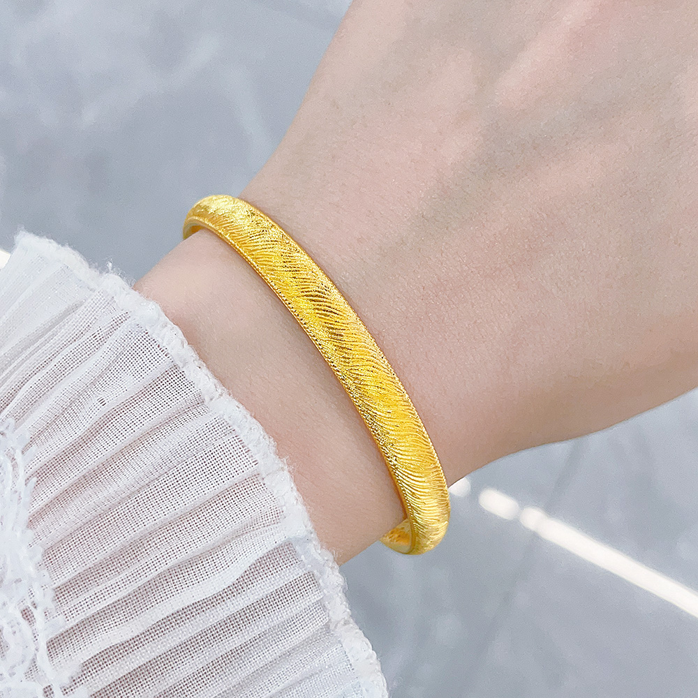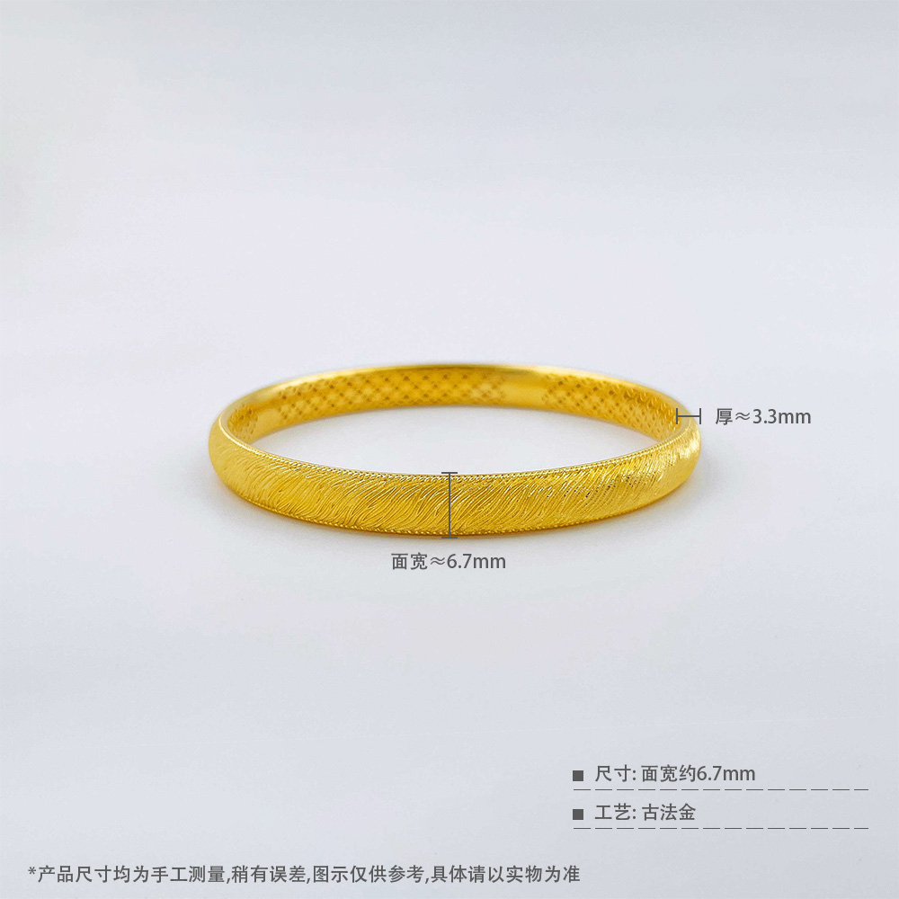 【限时克减150元】足金999.9 古法黄金镂空丝绒细腻拉丝固口手镯(面宽约6.5-6.9mm)(ANWGFSZ00976)预售产品下单后不退款不退货不换货不补差价