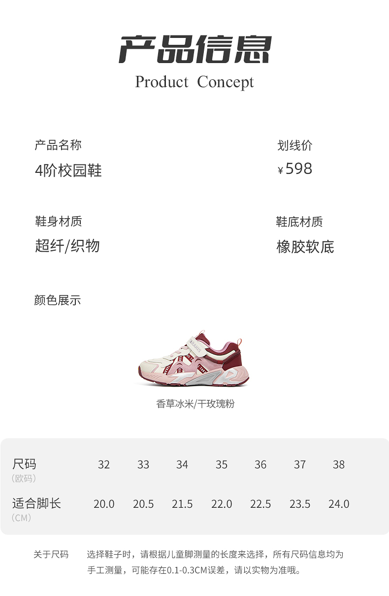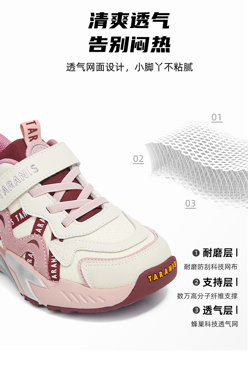 泰兰尼斯kids运动鞋女童老爹鞋秋季新款校园时尚户外防滑跑步鞋 T01D5C6740