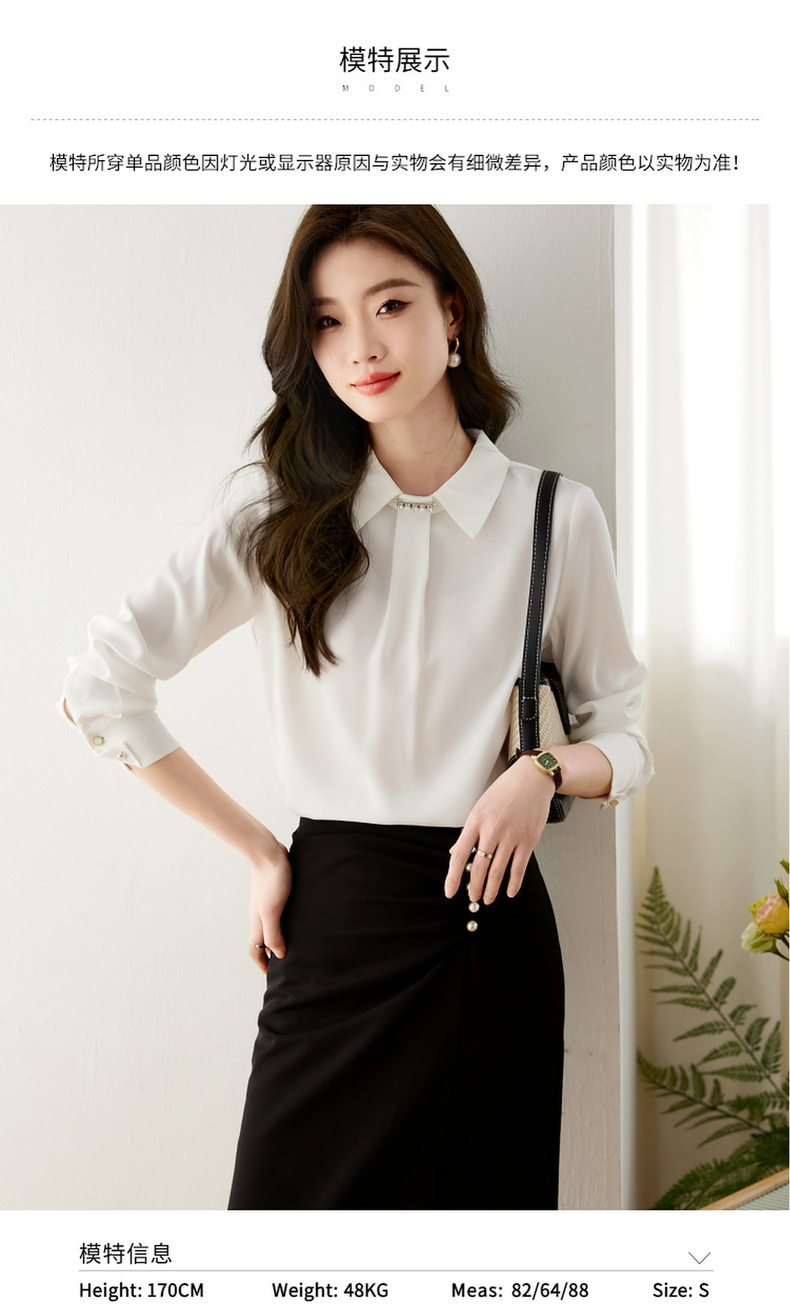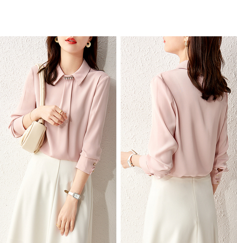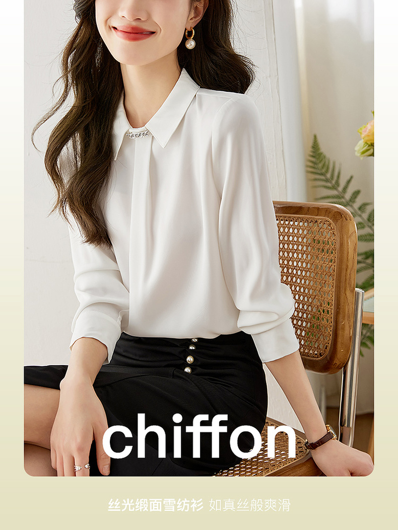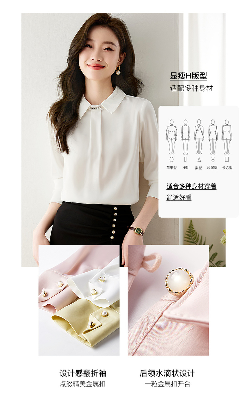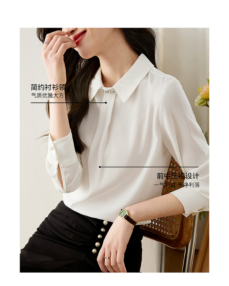【内购】简约衬衫领金属扣缎面雪纺衫衬衫-153VA3903X