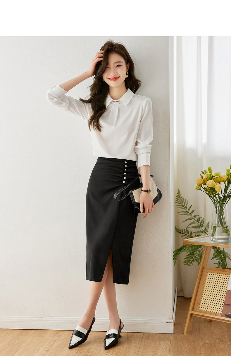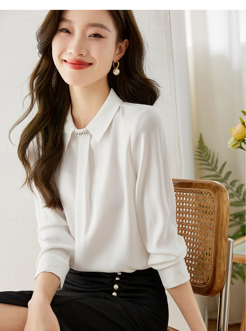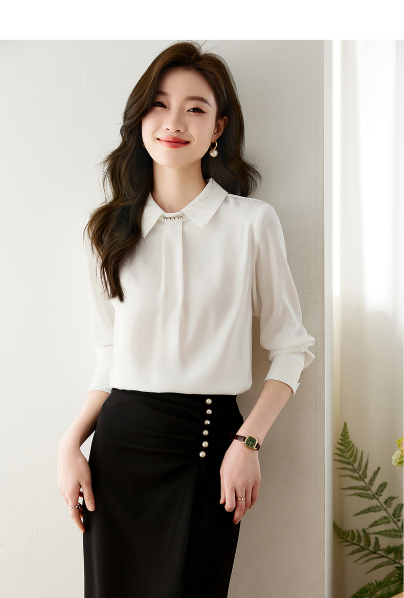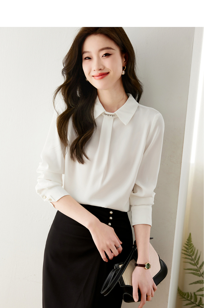 【内购】简约衬衫领金属扣缎面雪纺衫衬衫-153VA3903X