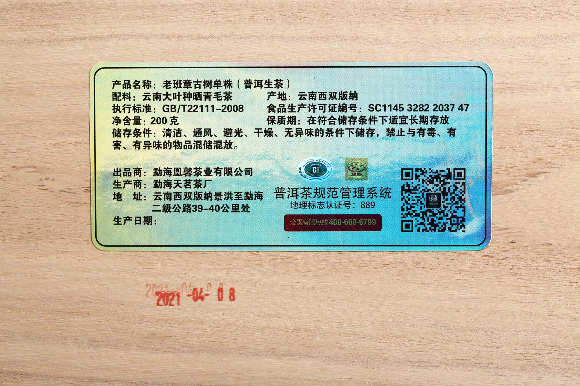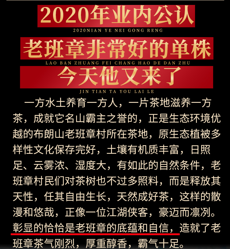 单株凰馨古茶【老班章-单株】普洱茶生茶单株古树纯料200g